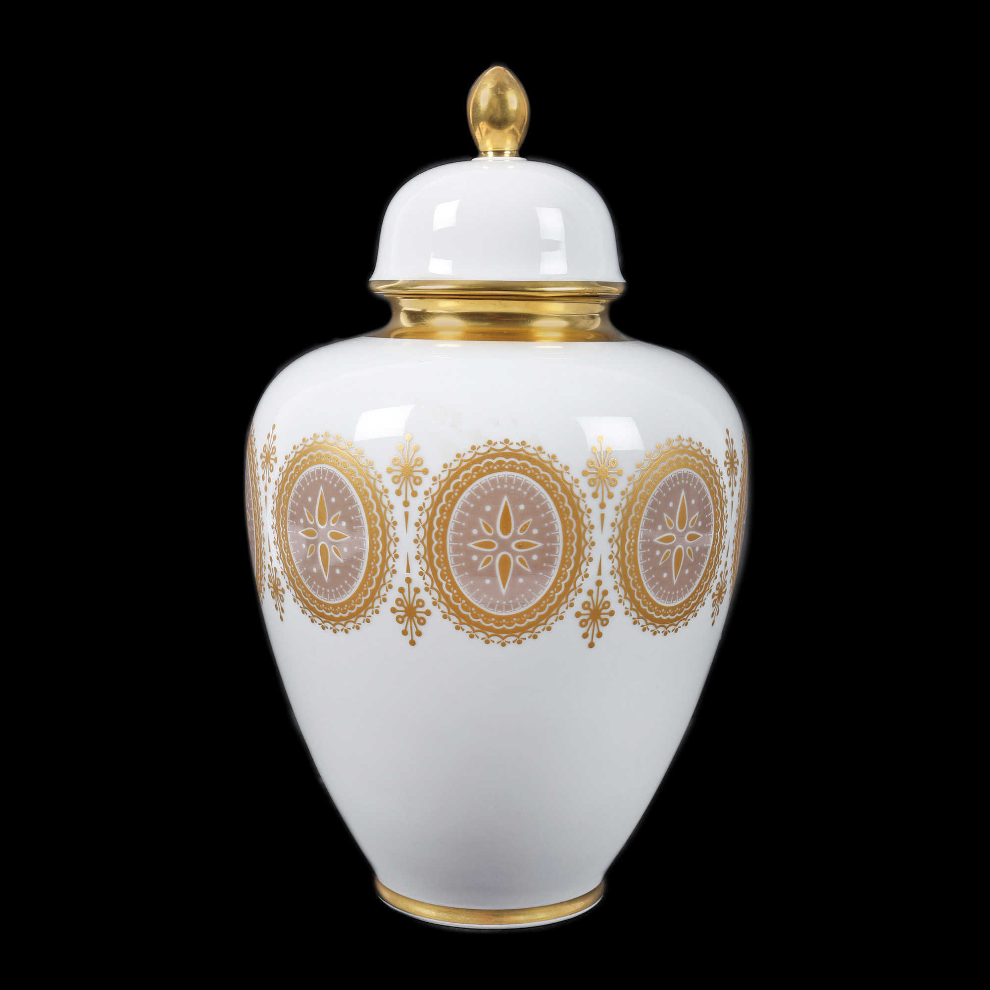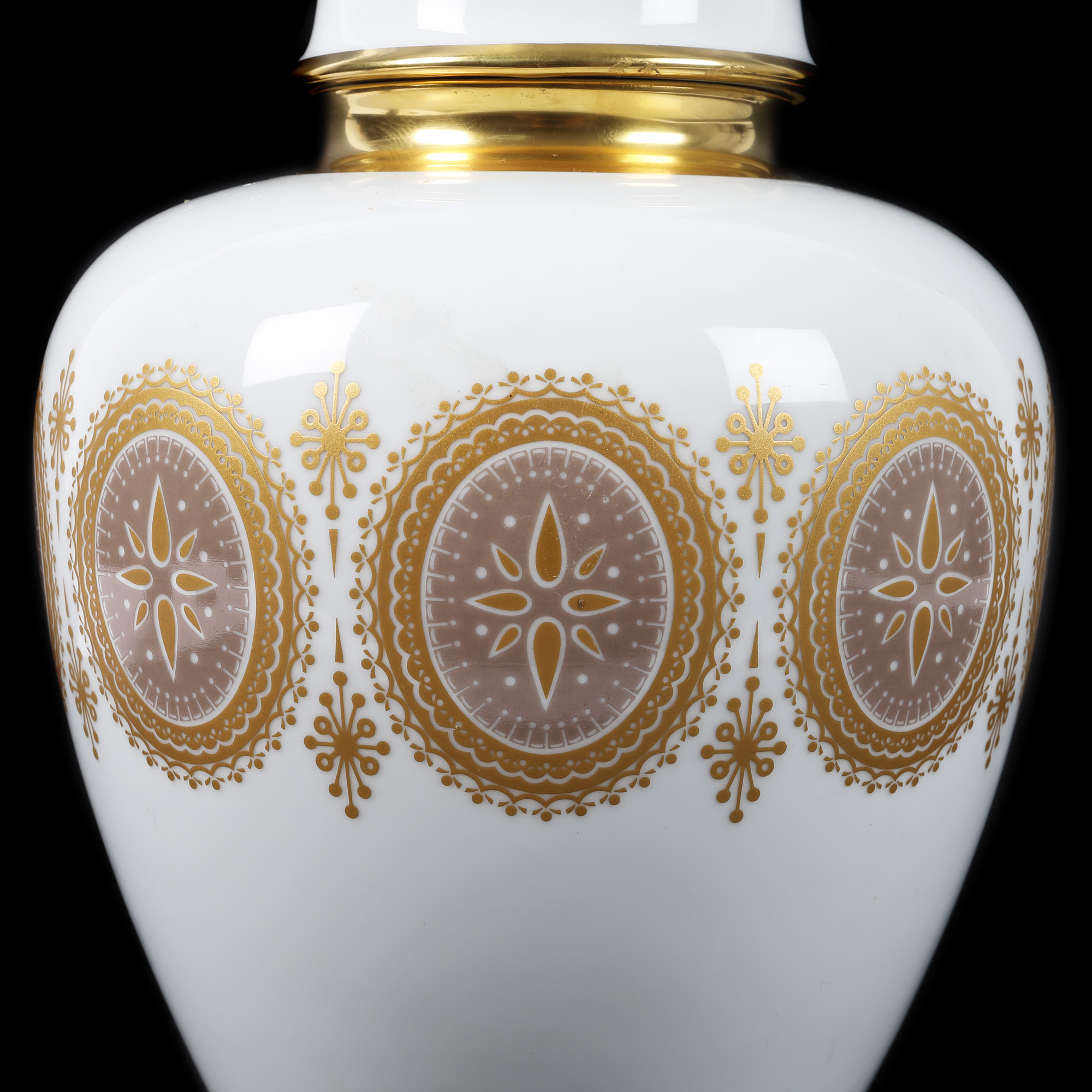 104. Vas din porțelan PMR Bavaria, cu capac, decorat cu medalioane din aur coloidal [Cca. 1949-1979]
