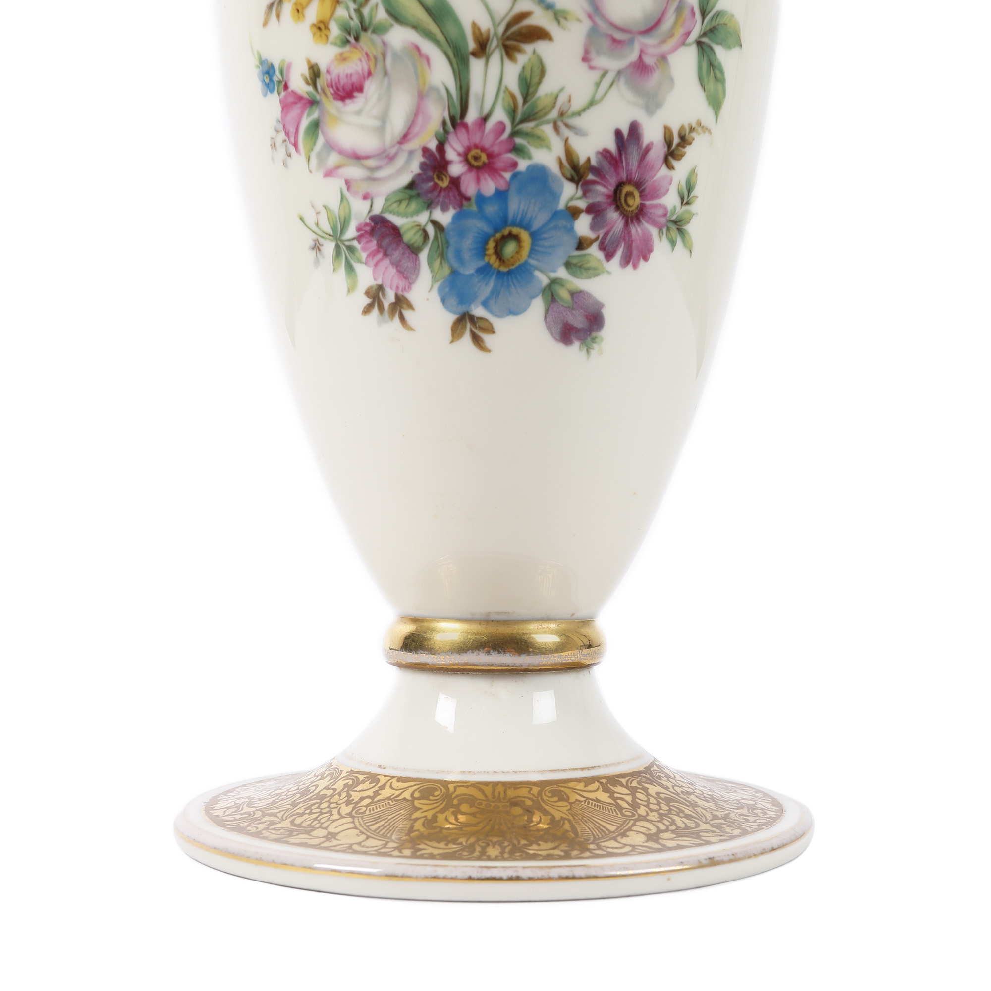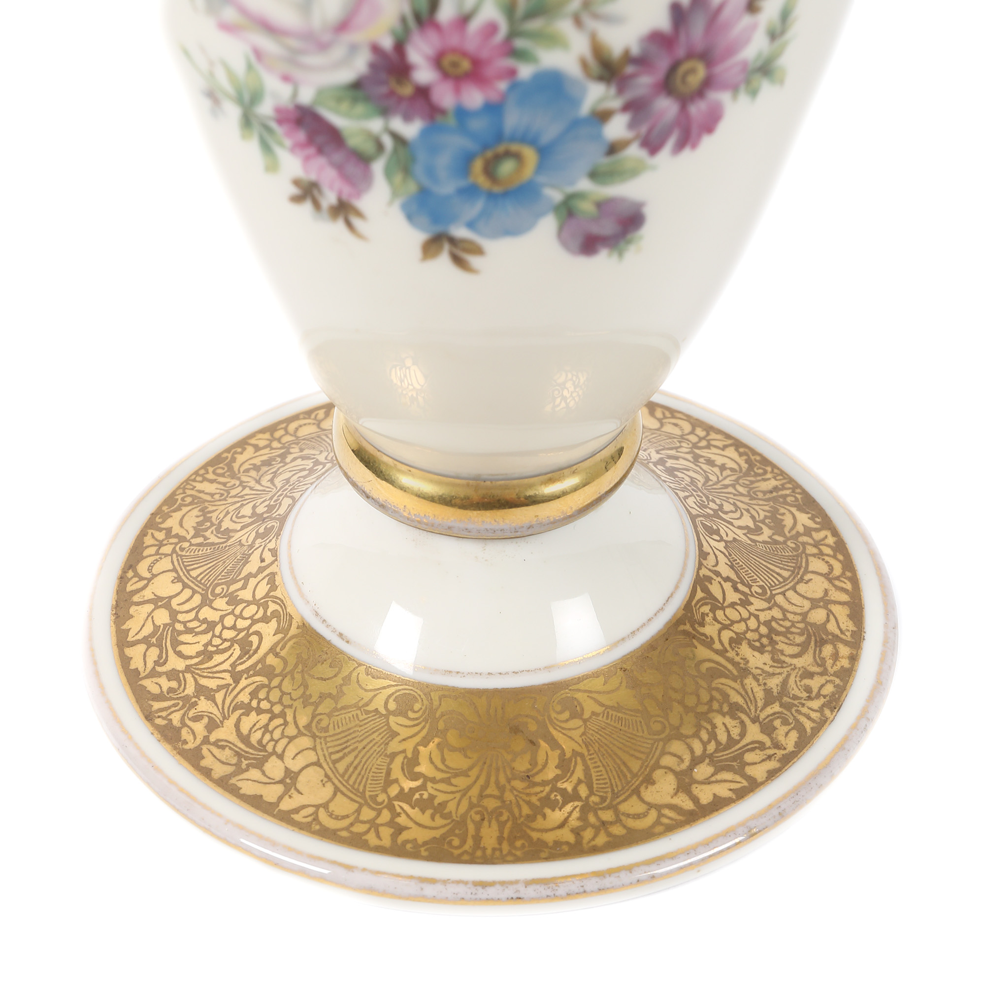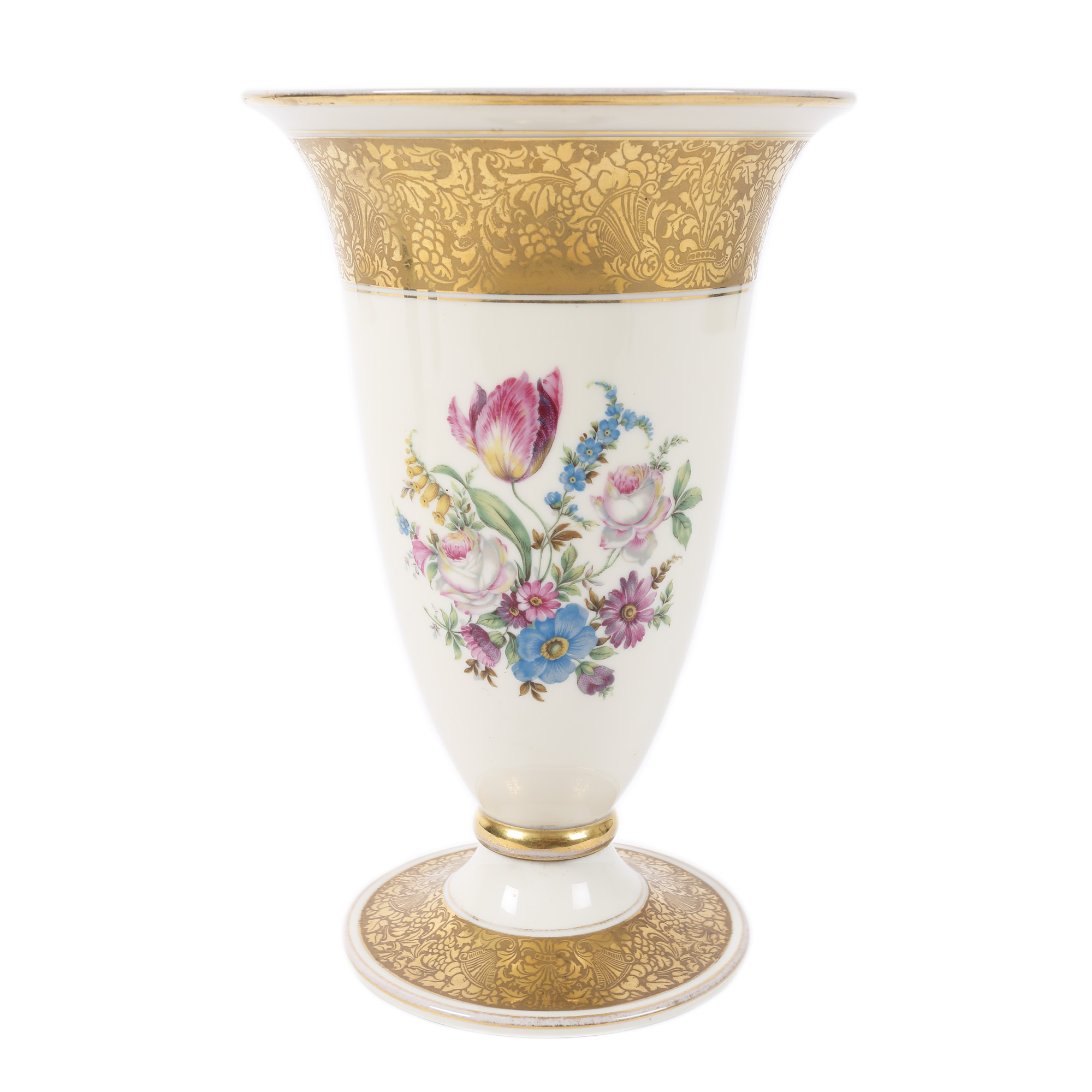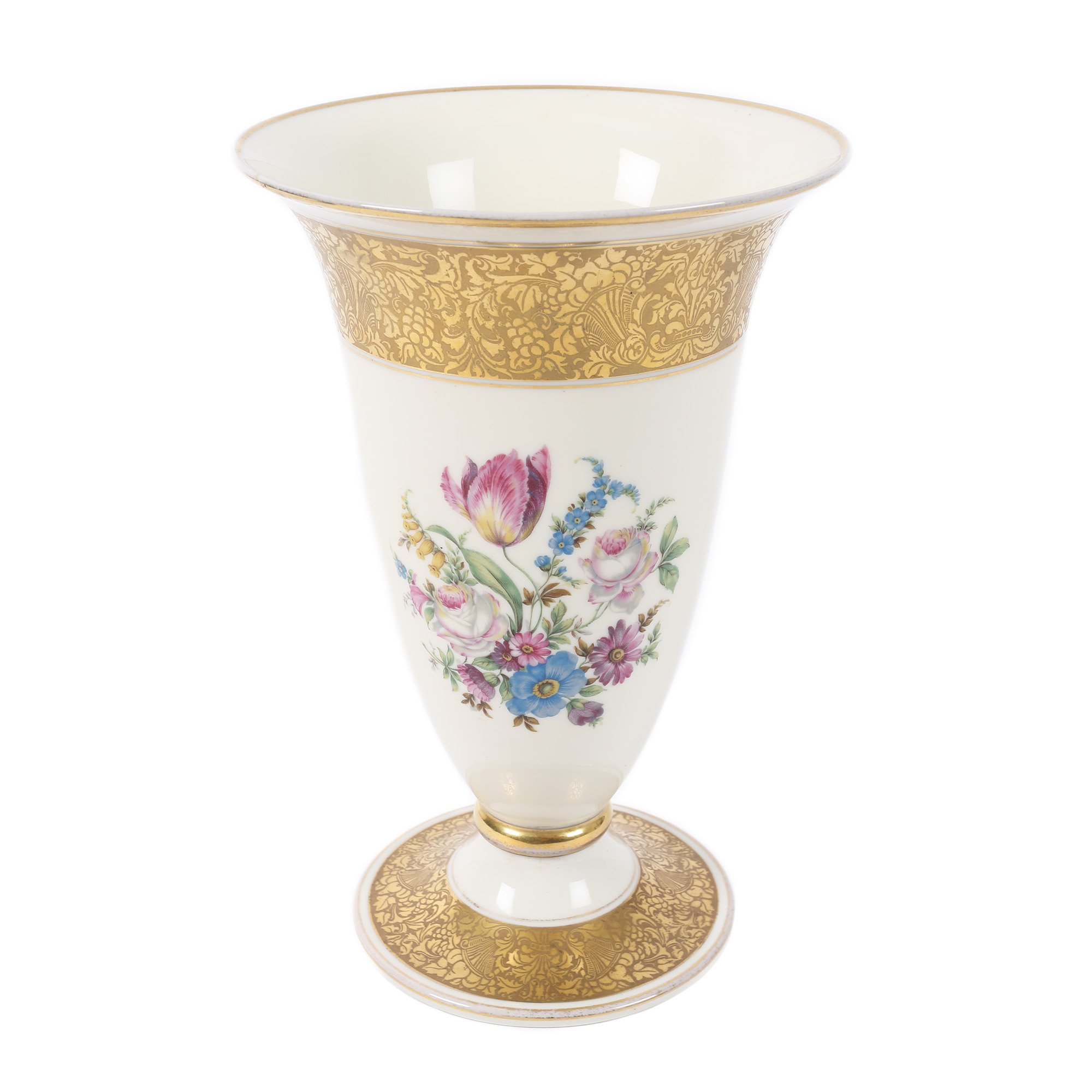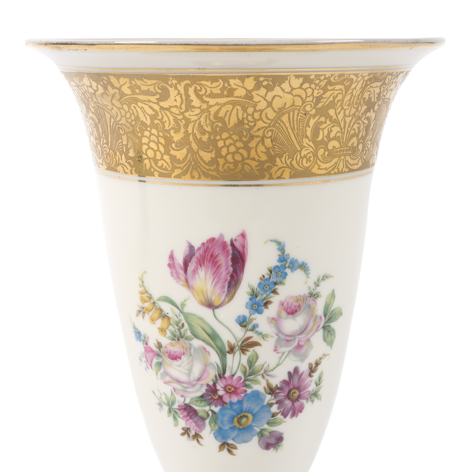 64. Vas Rosenthal din porțelan, pictat manual cu frizee aurii și flori de primăvară [Cca. 1950]