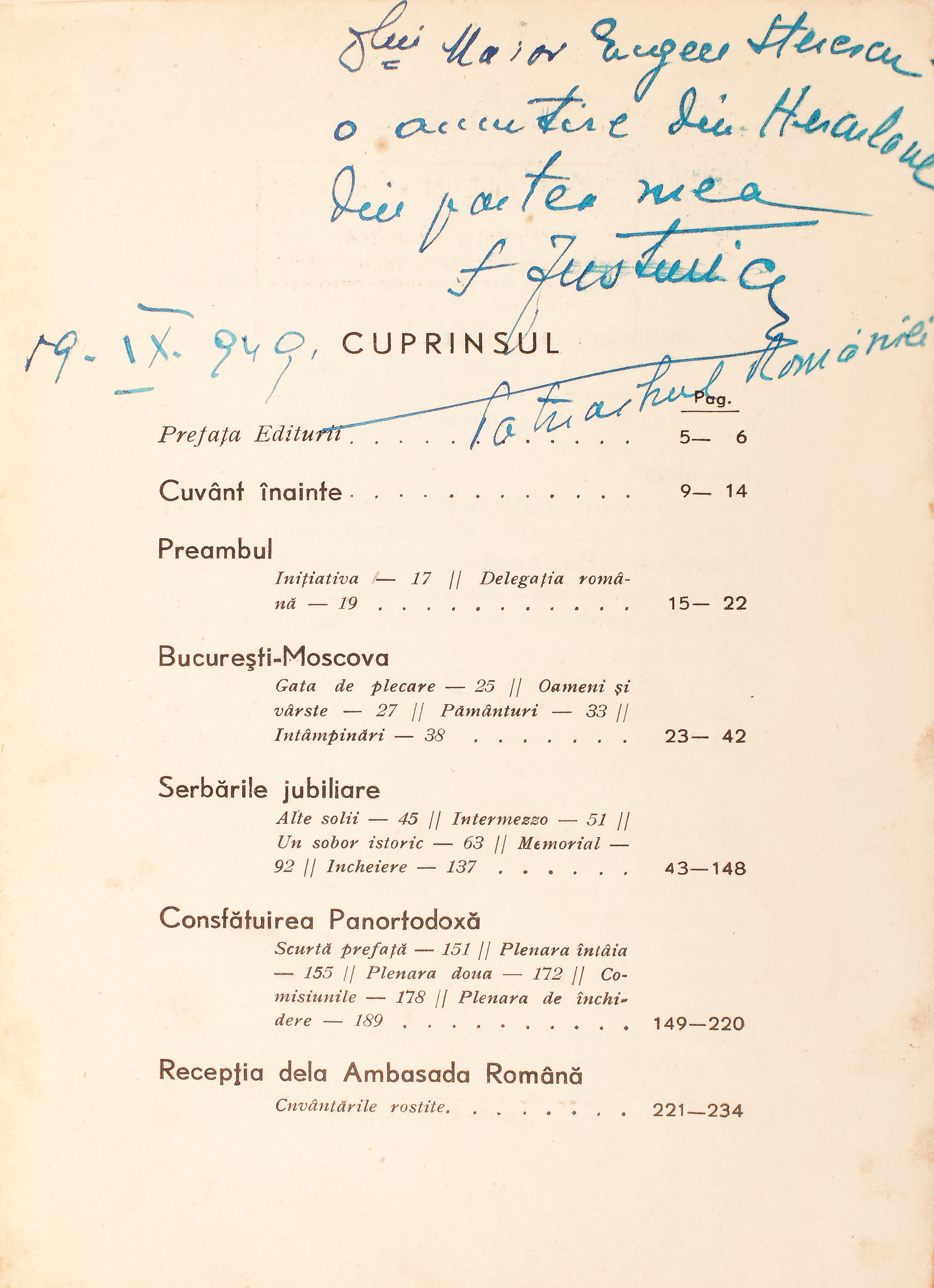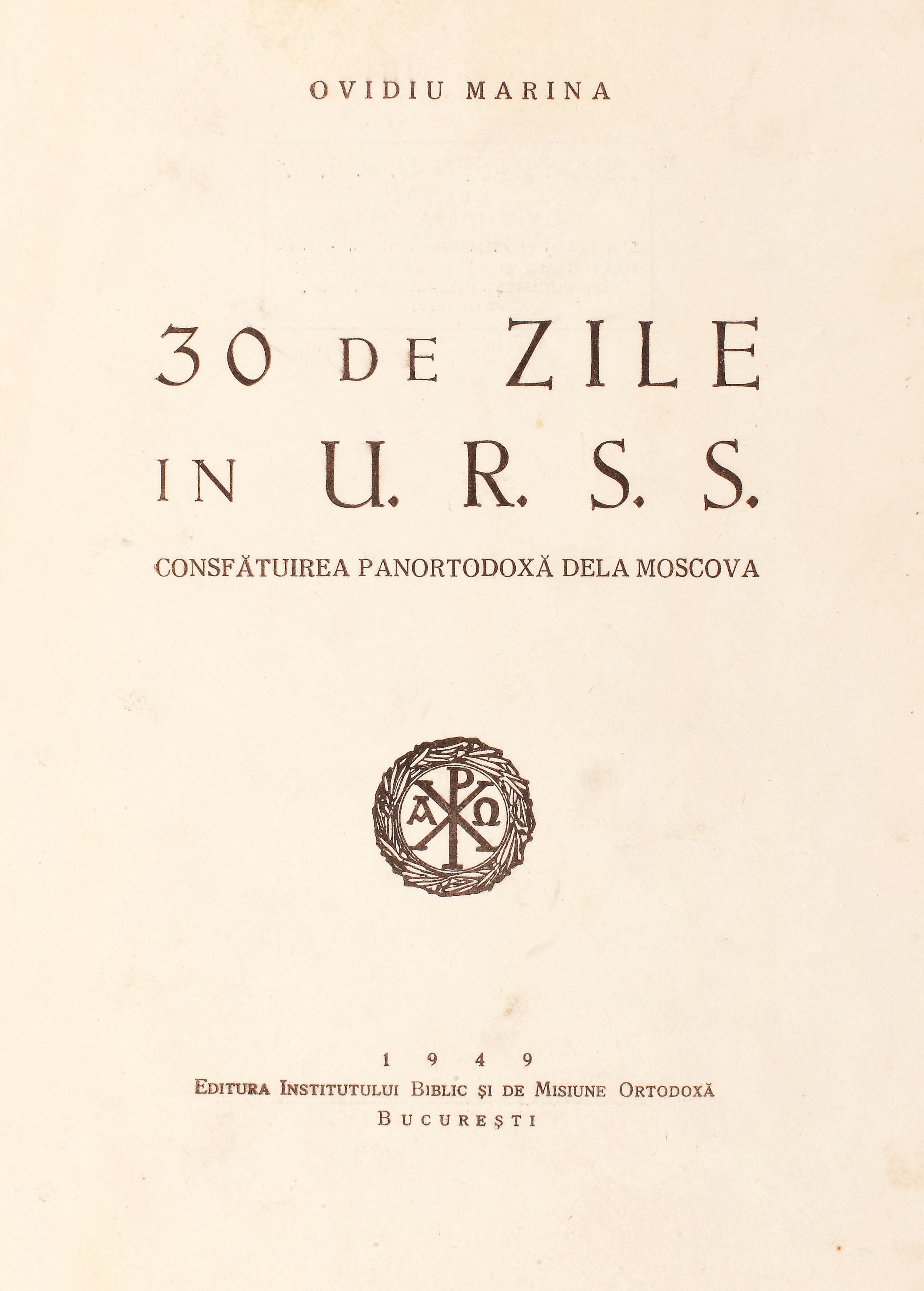 142. 30 de zile in URSS, Ovidiu Marina, 1949, cu dedicația olografă a Patriarhului Justinian Marina
