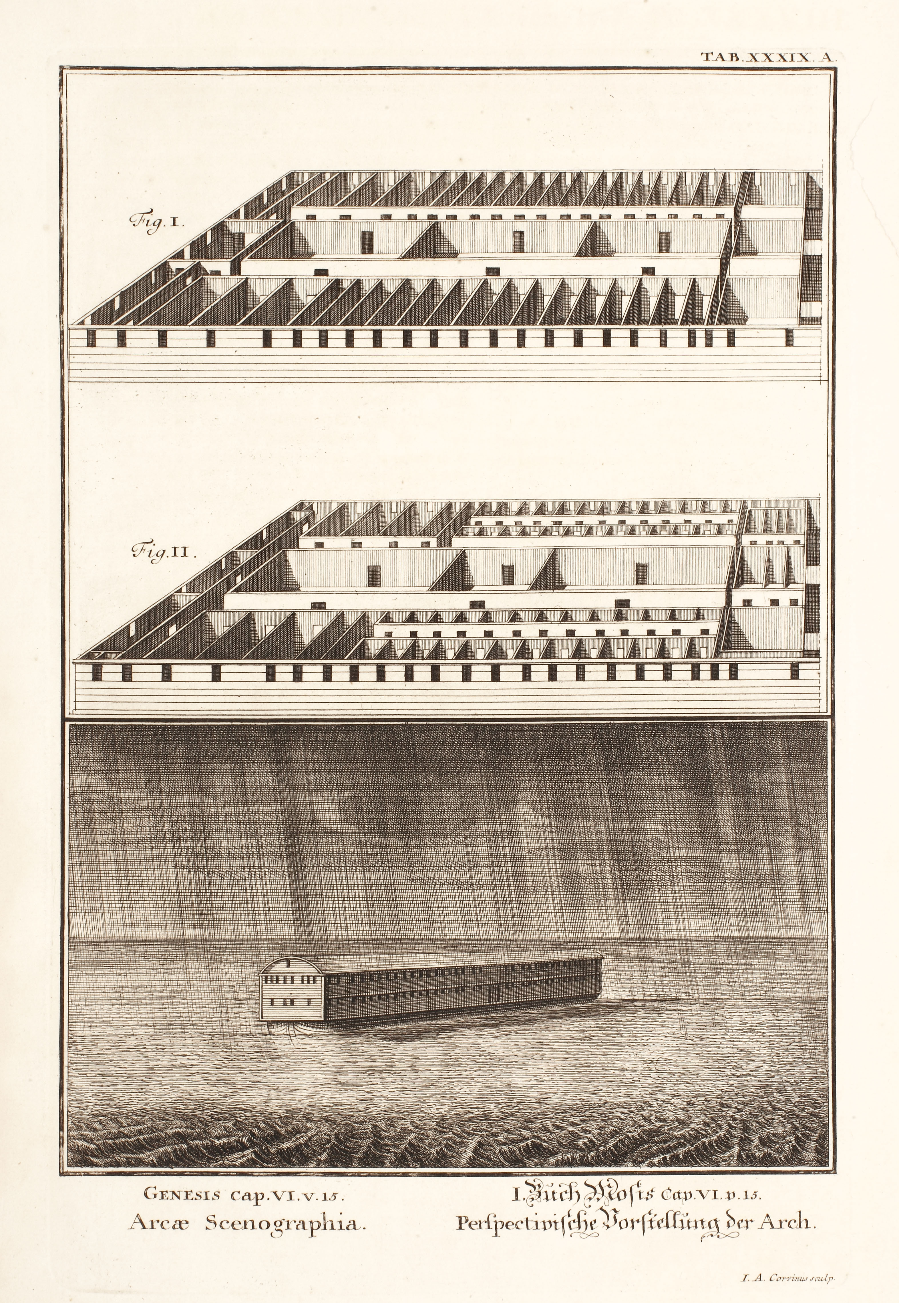 185. ”Arca lui Noe”, gravură din ”Physica Sacra”, Johann Jakob Scheuchzer, 1731