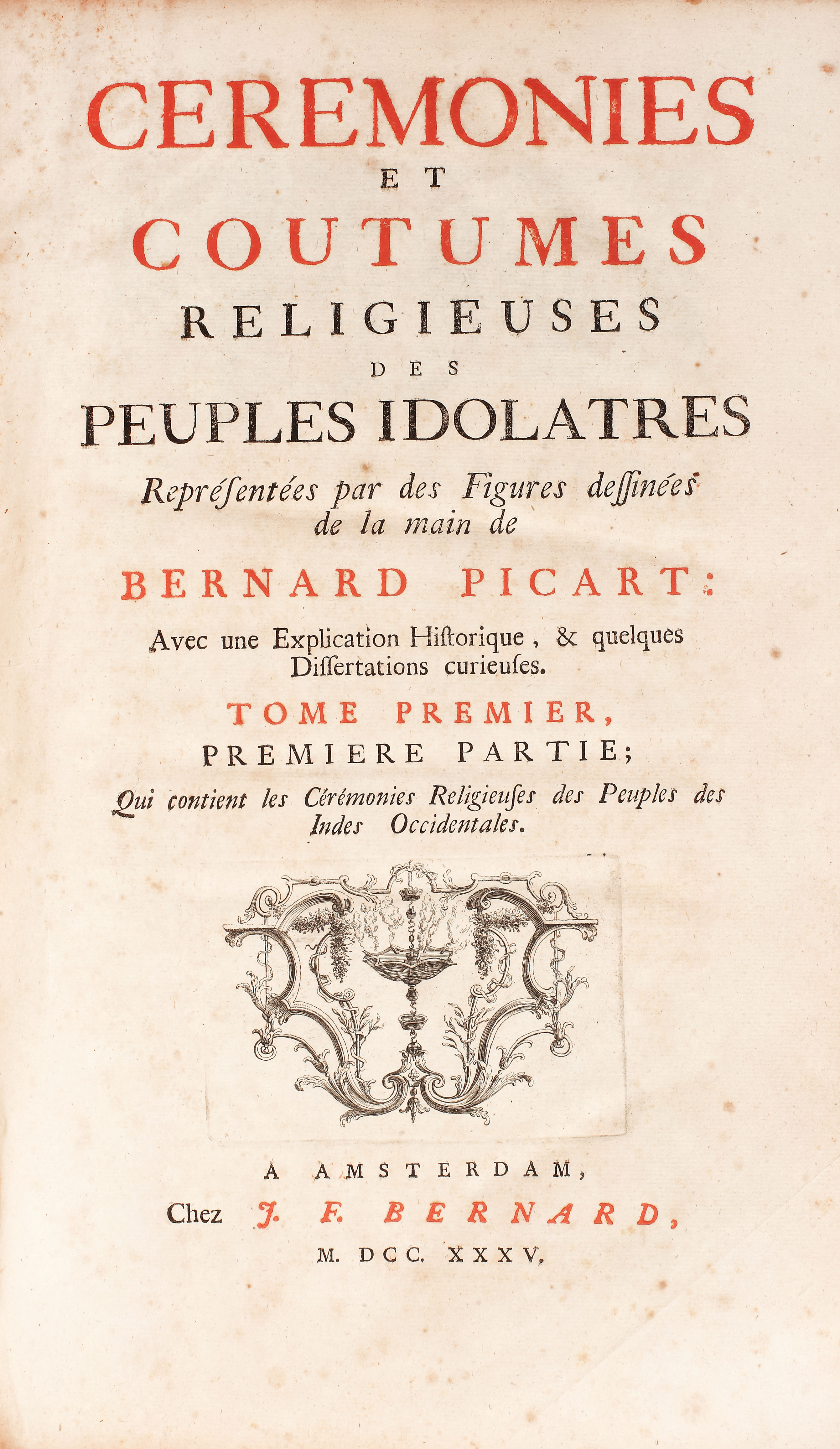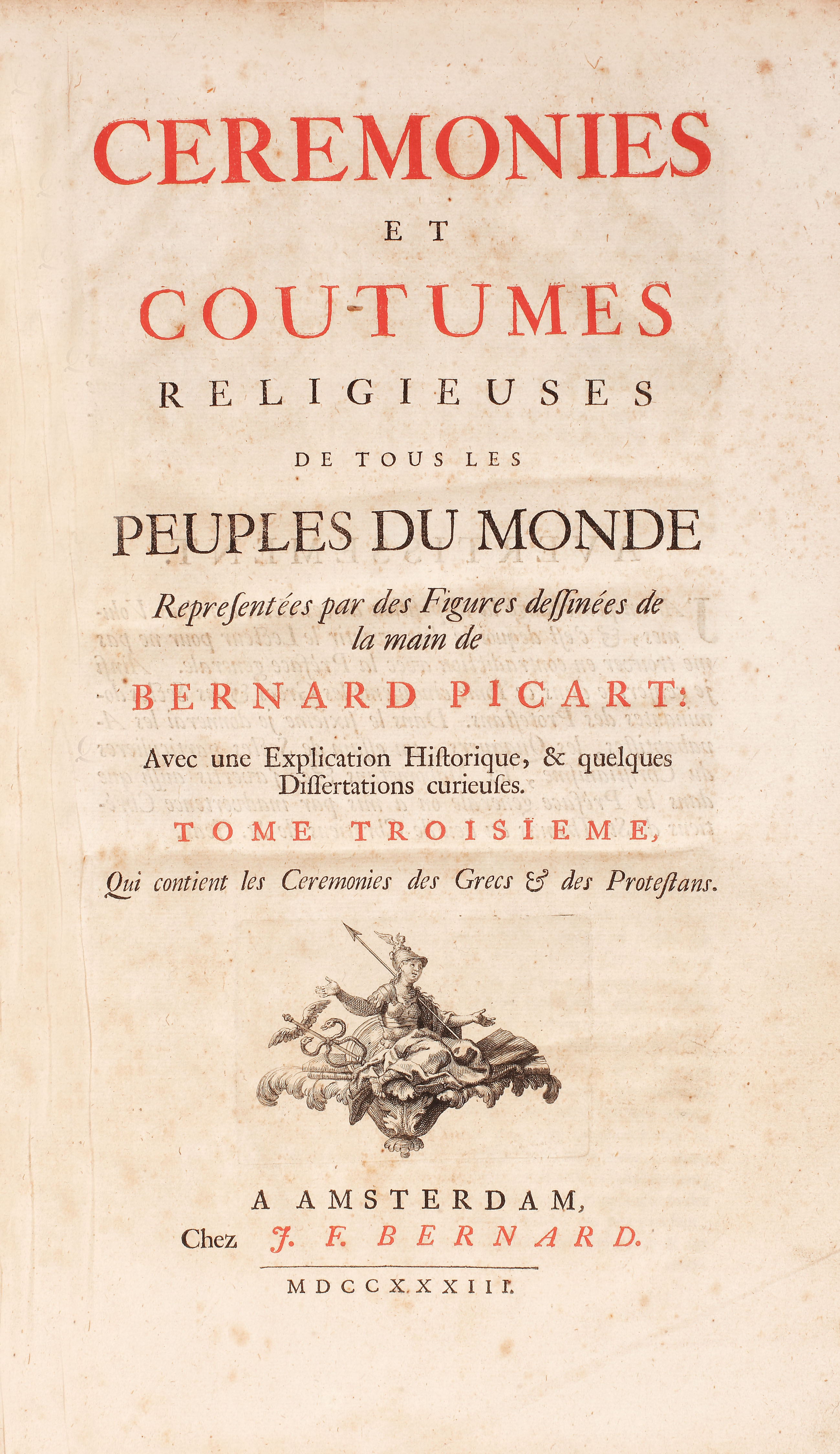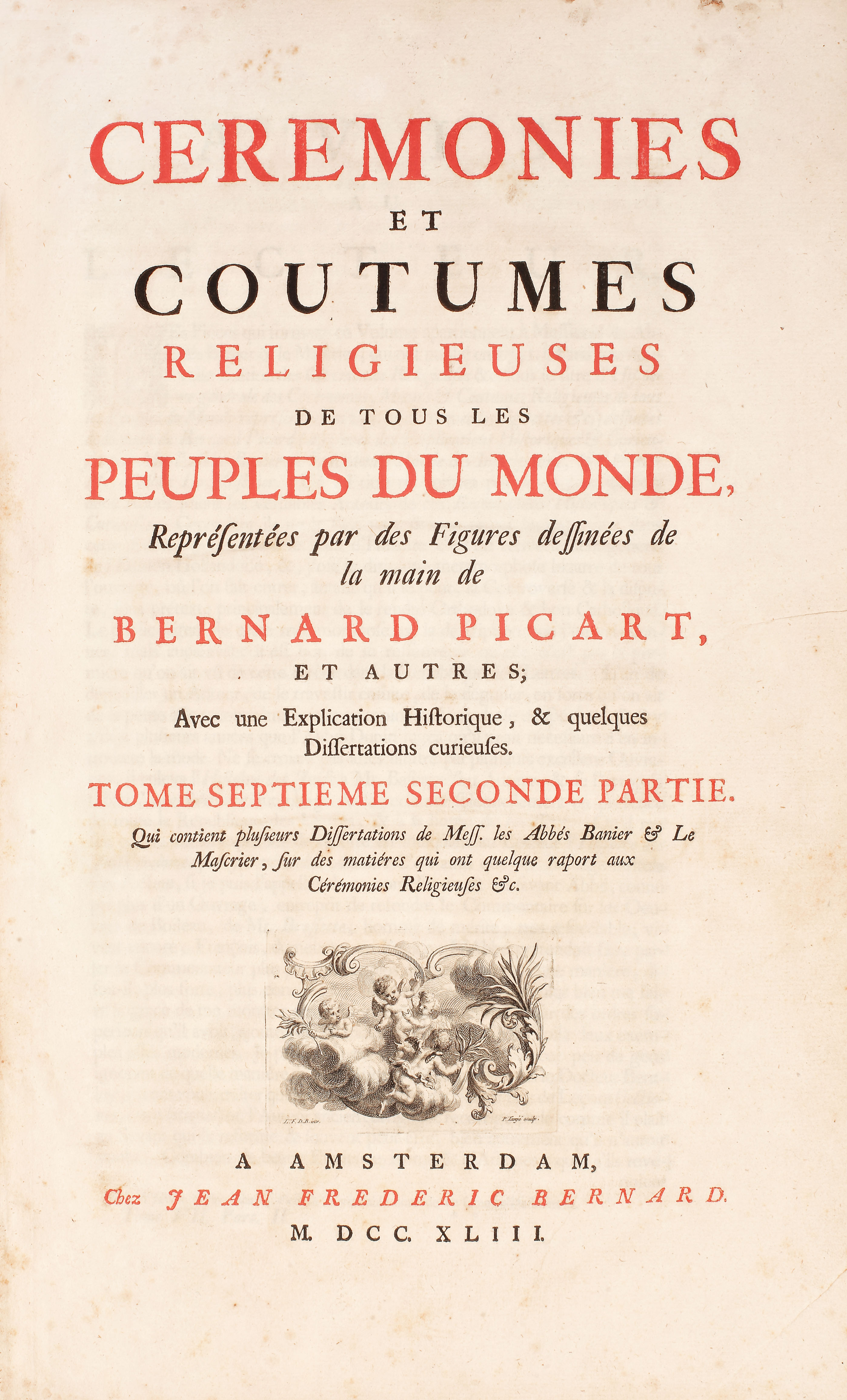 Monumentala lucrare "Ceremonies et coutumes religieuses de tous les peuples du monde...", în 11 volume, despre care scriitorul britanic Jonathan Israel scria că este „un efort imens pentru a înregistra ritualurile și credințele religioase ale lumii, în toată diversitatea lor, cât mai obiectiv și autentic posibil”, este ilustrată cu gravuri în plină pagină şi pliate de vestitul gravor francez Bernard Picart. Volumele conţin scrieri de R. Simon, J. Abbadie şi alţii, abordând în detaliu aspecte definitorii ale religiilor lumii: ceremoniile religioase ale evreilor, creştinilor, mahomedanilor, indienilor, chinezilor, japonezilor, perşilor, africanilor, precum şi numeroase paralele între religiile vechi şi moderne.