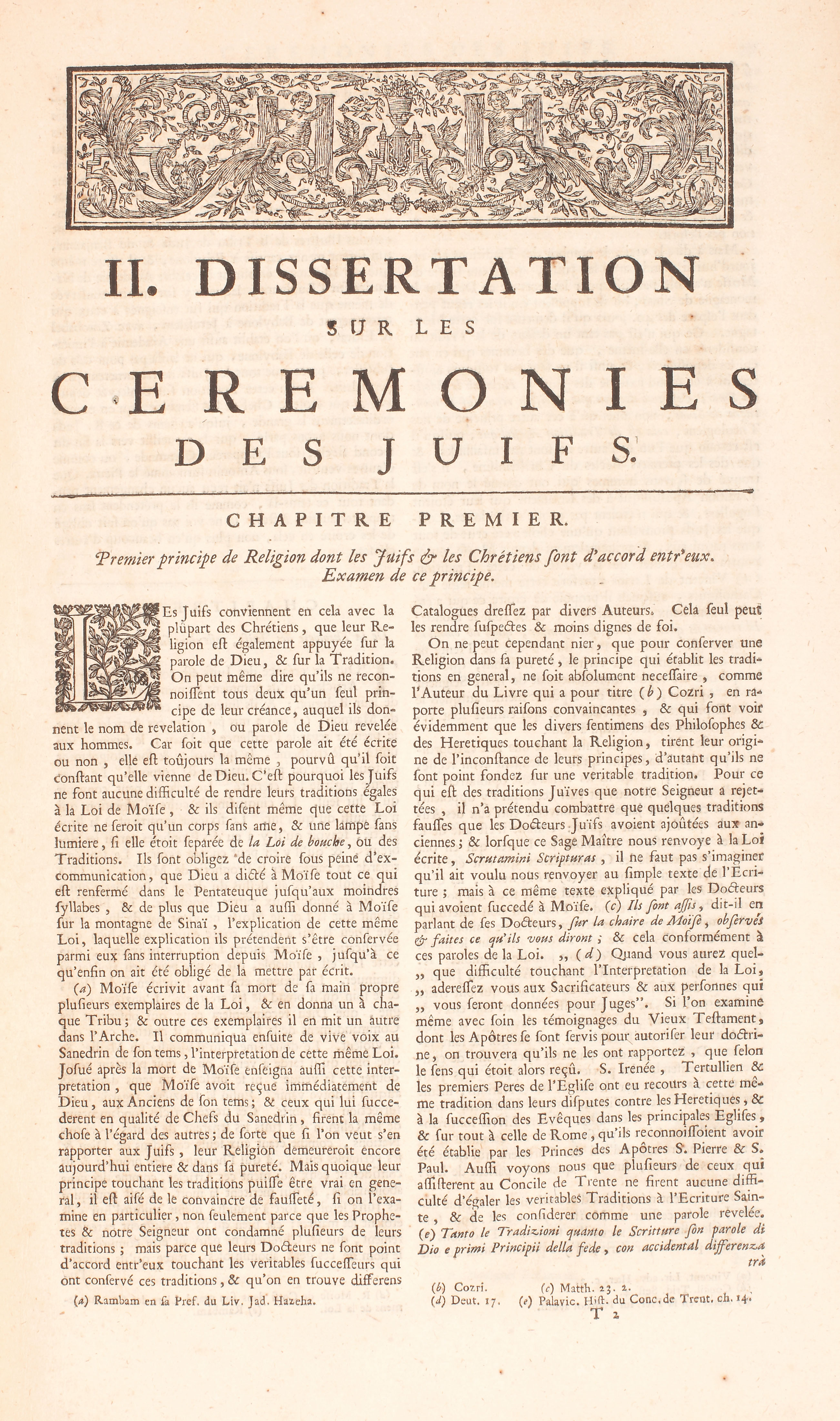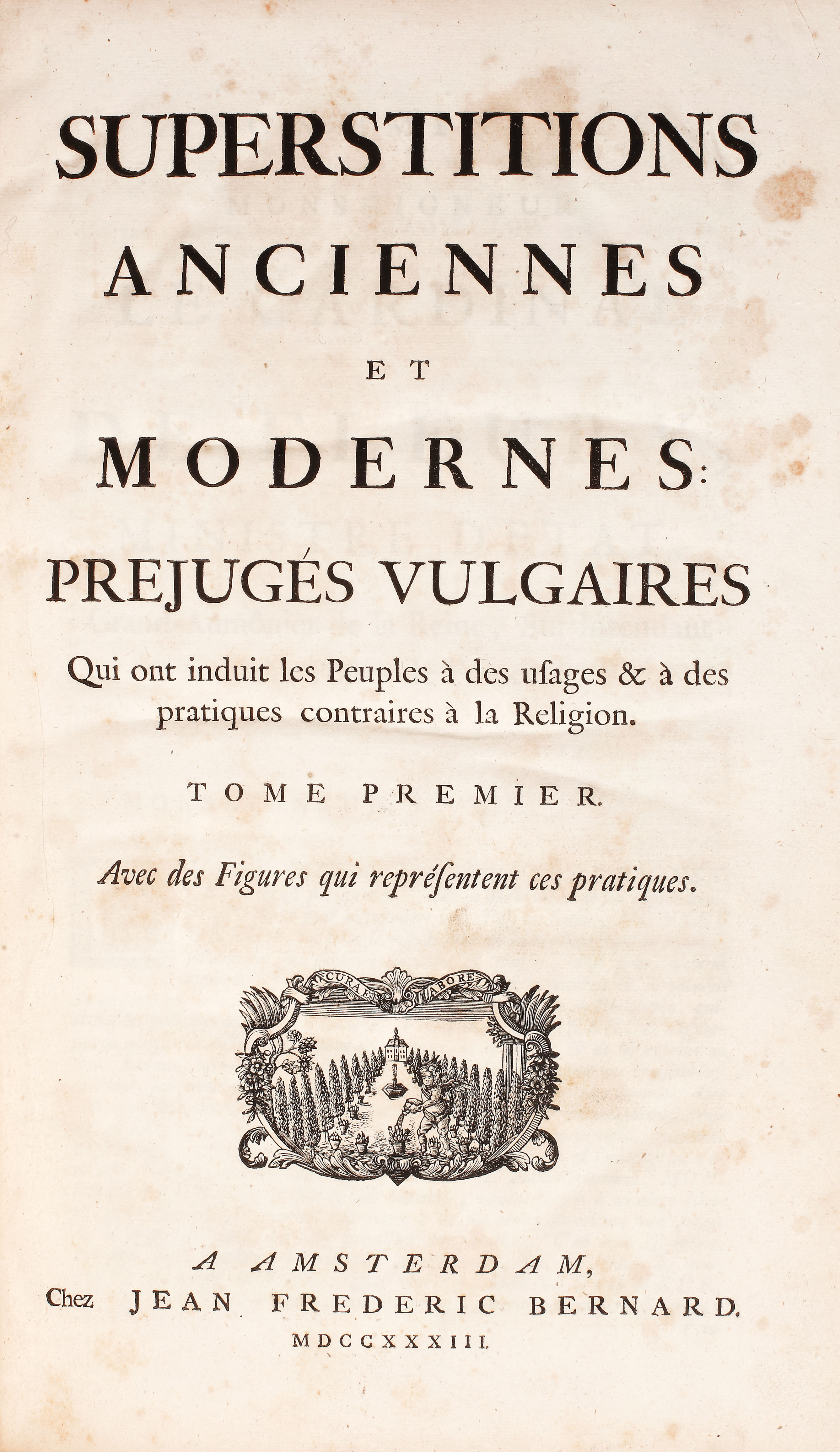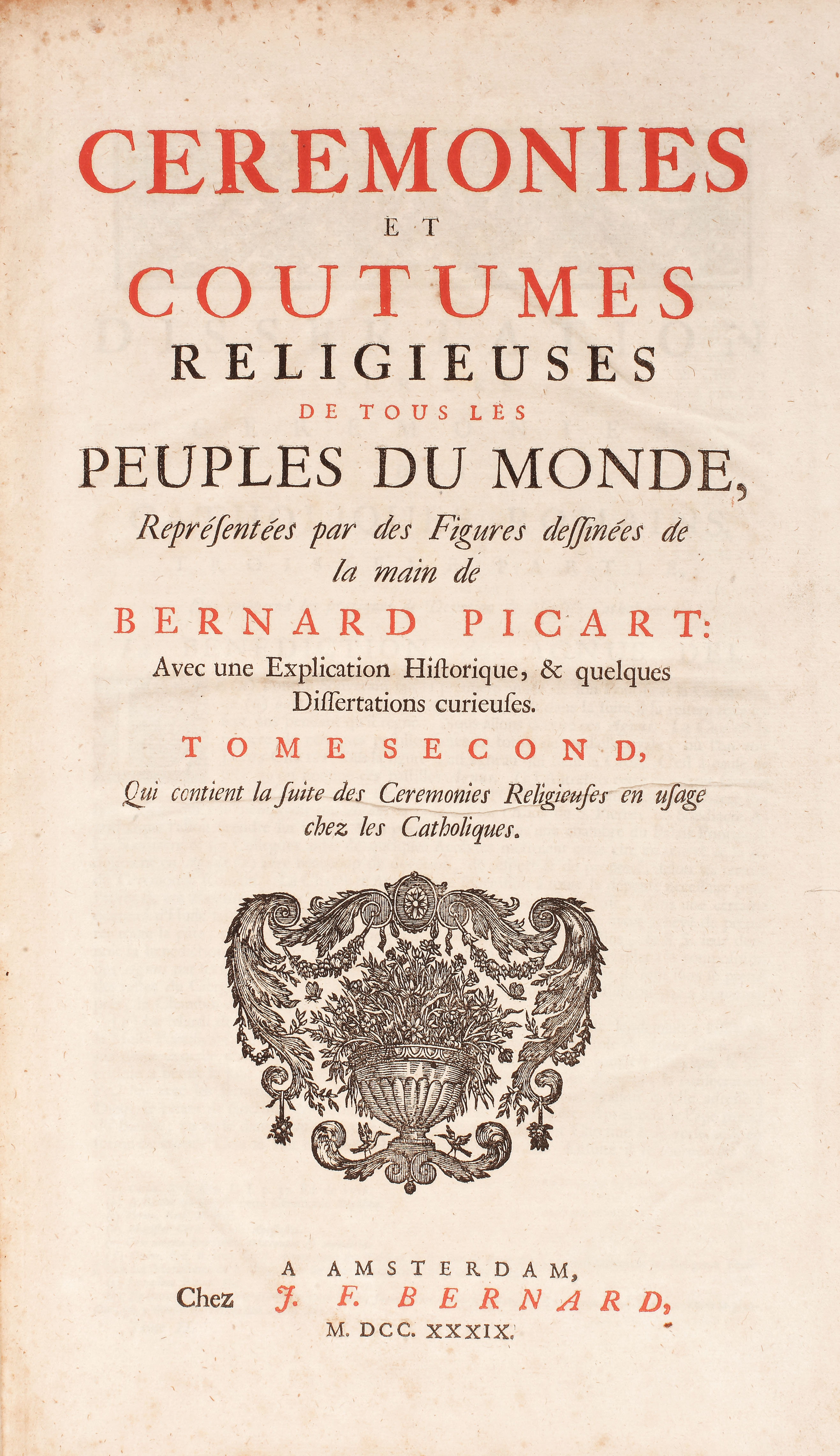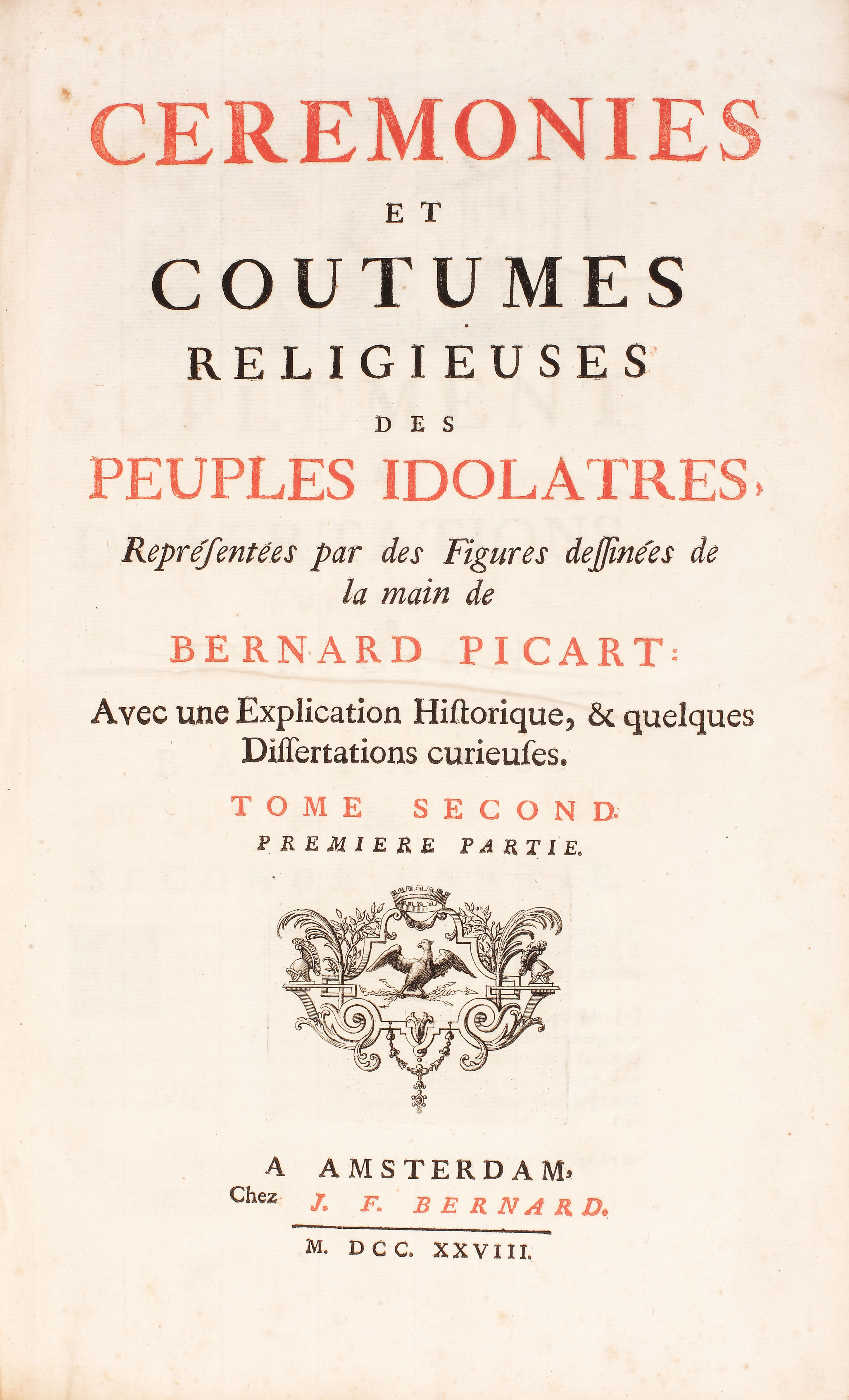 Monumentala lucrare "Ceremonies et coutumes religieuses de tous les peuples du monde...", în 11 volume, despre care scriitorul britanic Jonathan Israel scria că este „un efort imens pentru a înregistra ritualurile și credințele religioase ale lumii, în toată diversitatea lor, cât mai obiectiv și autentic posibil”, este ilustrată cu gravuri în plină pagină şi pliate de vestitul gravor francez Bernard Picart. Volumele conţin scrieri de R. Simon, J. Abbadie şi alţii, abordând în detaliu aspecte definitorii ale religiilor lumii: ceremoniile religioase ale evreilor, creştinilor, mahomedanilor, indienilor, chinezilor, japonezilor, perşilor, africanilor, precum şi numeroase paralele între religiile vechi şi moderne.