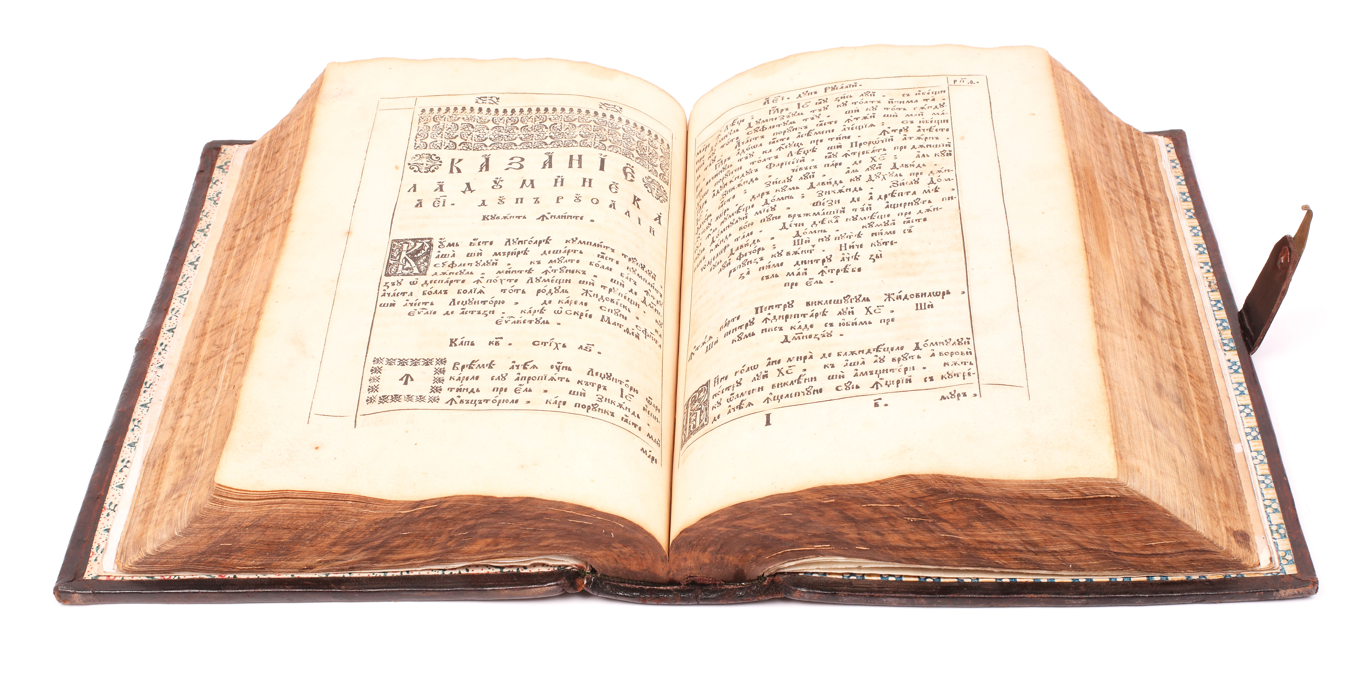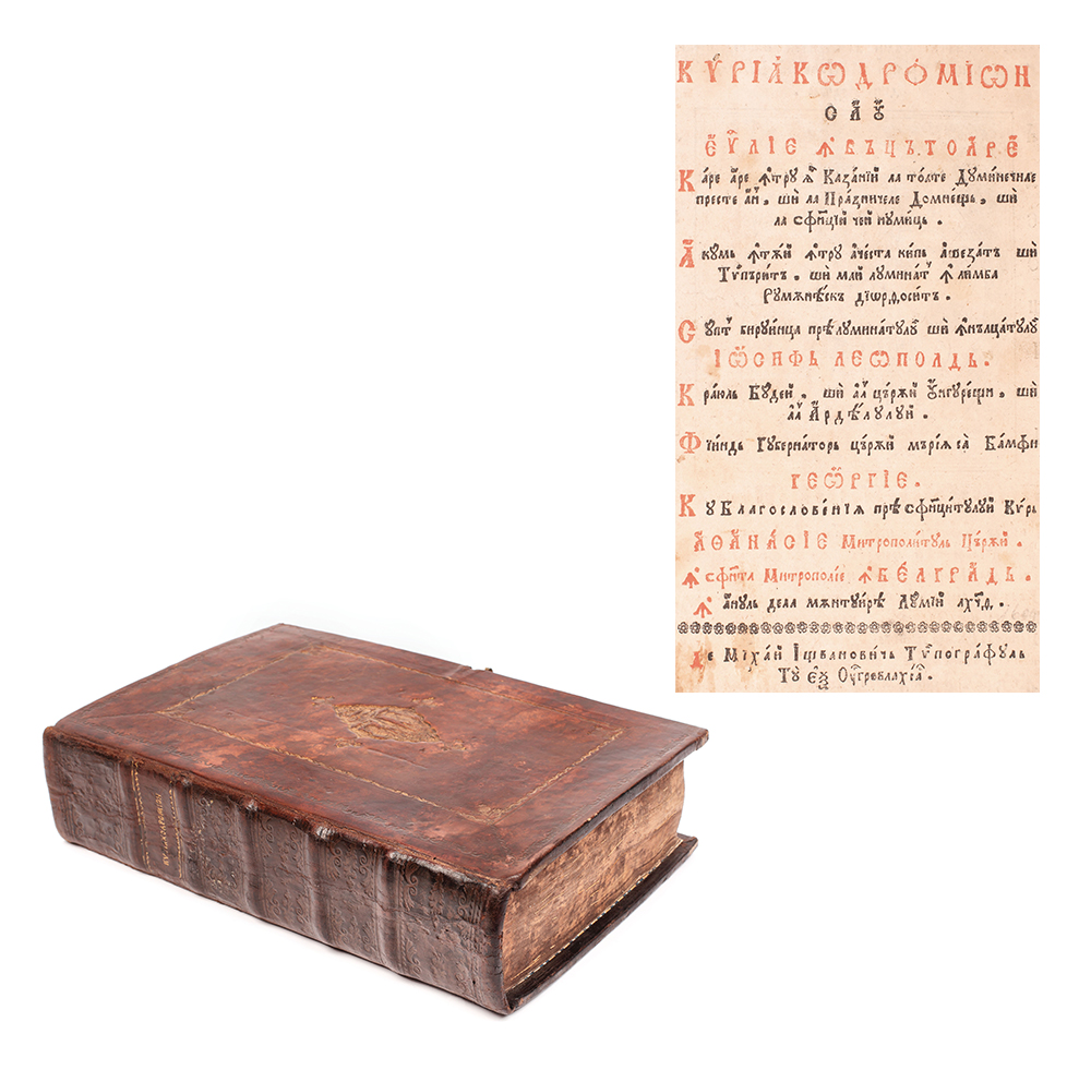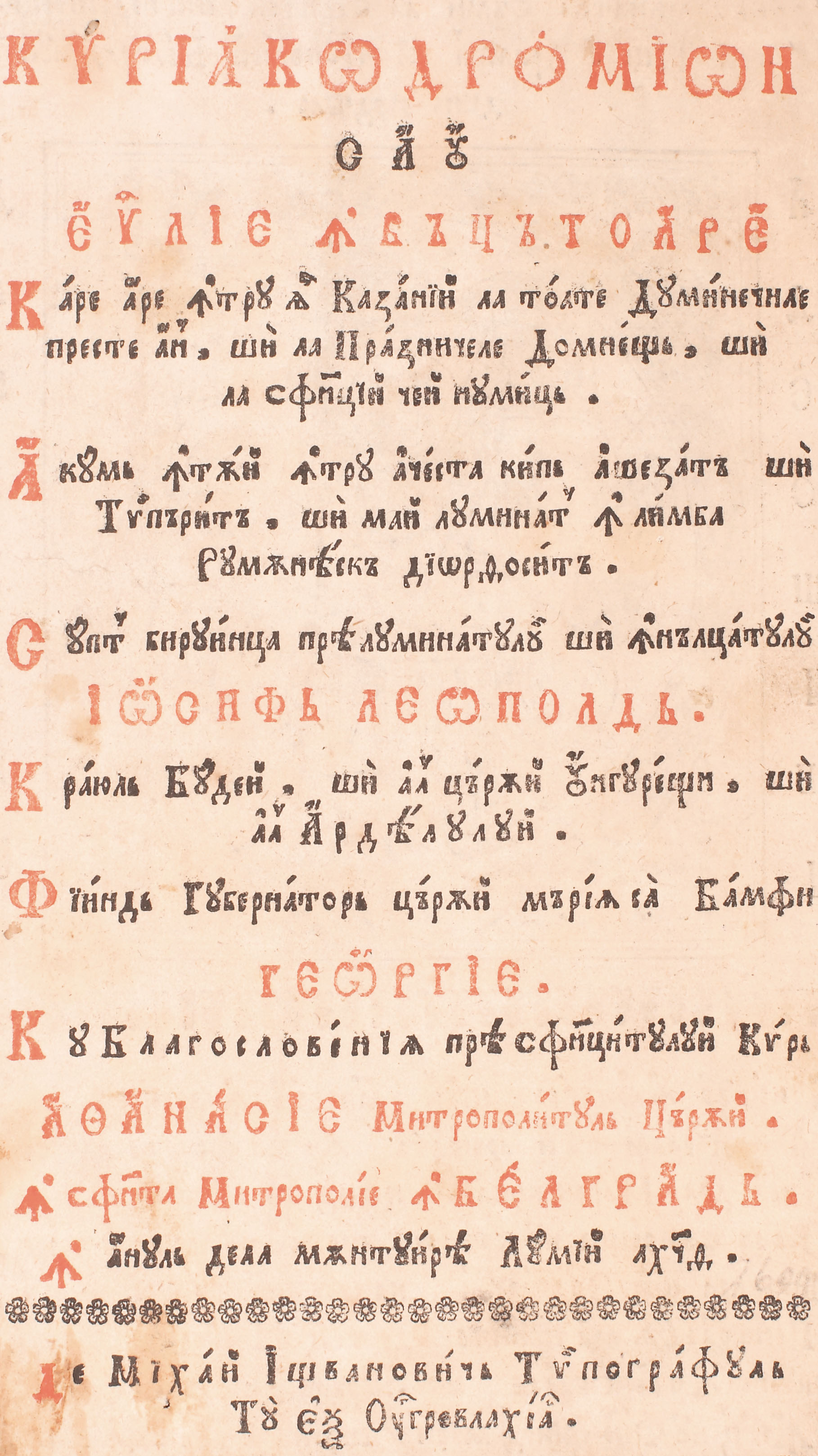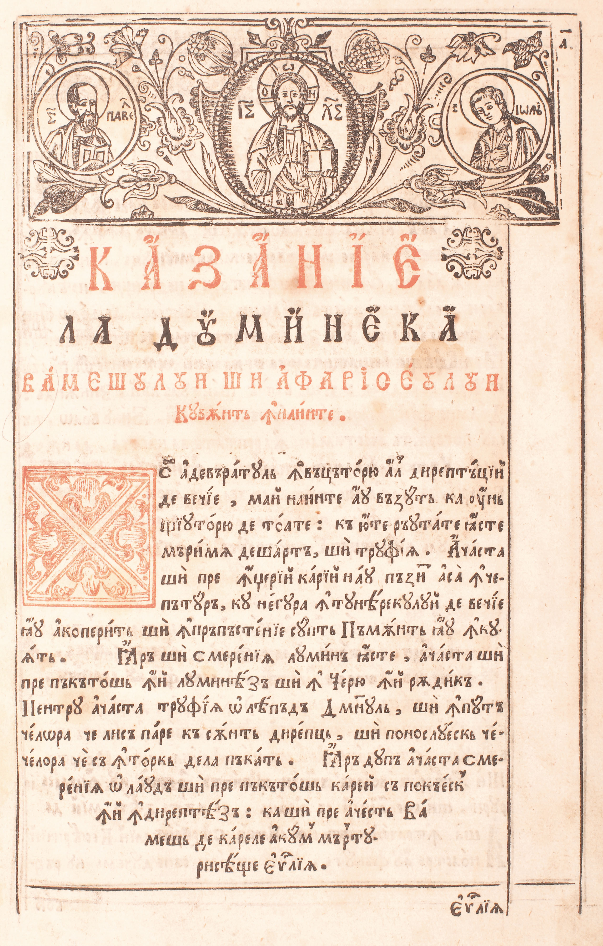 Romanian in Cyrillic script; printed in black and red; complete copy, (3) + 415 pages
