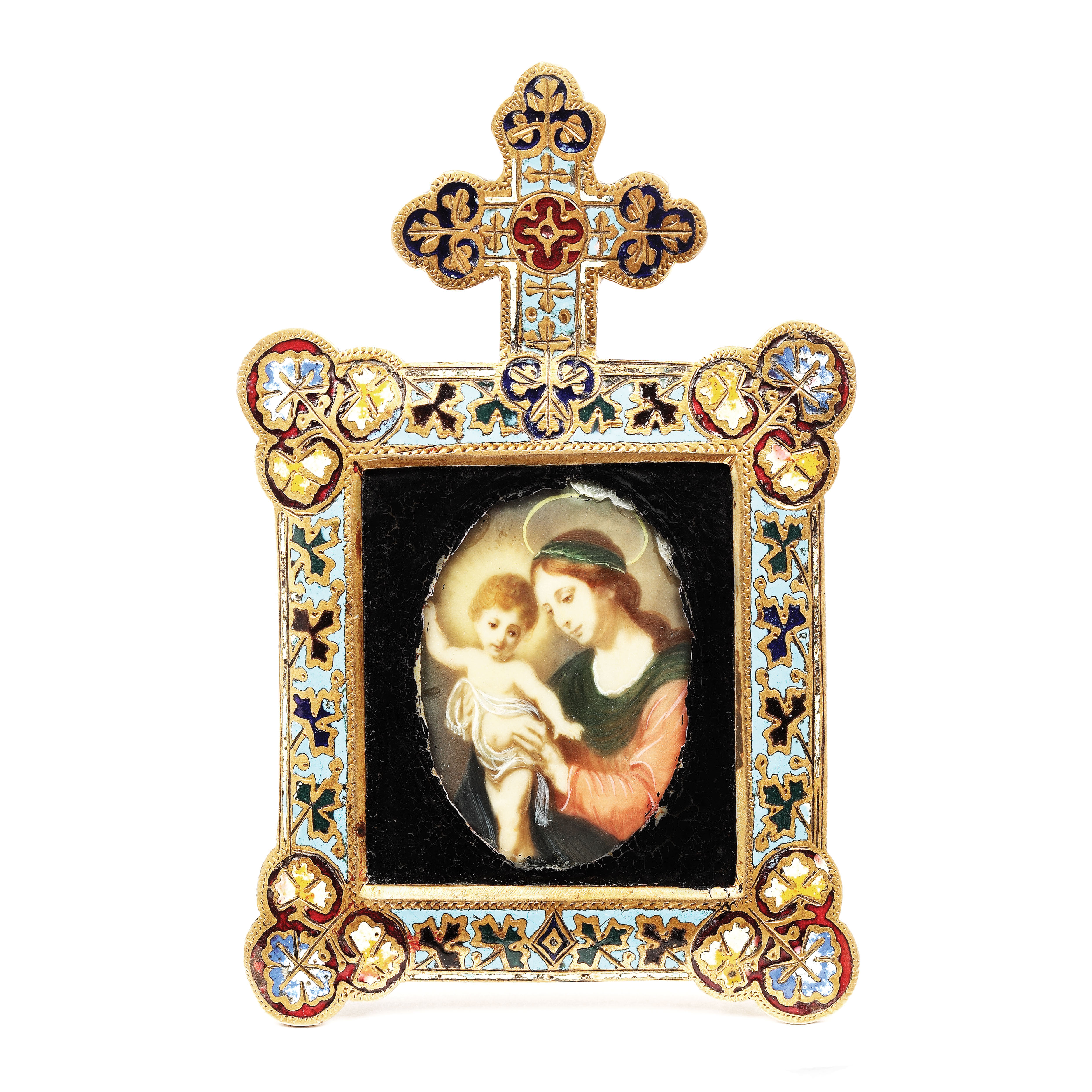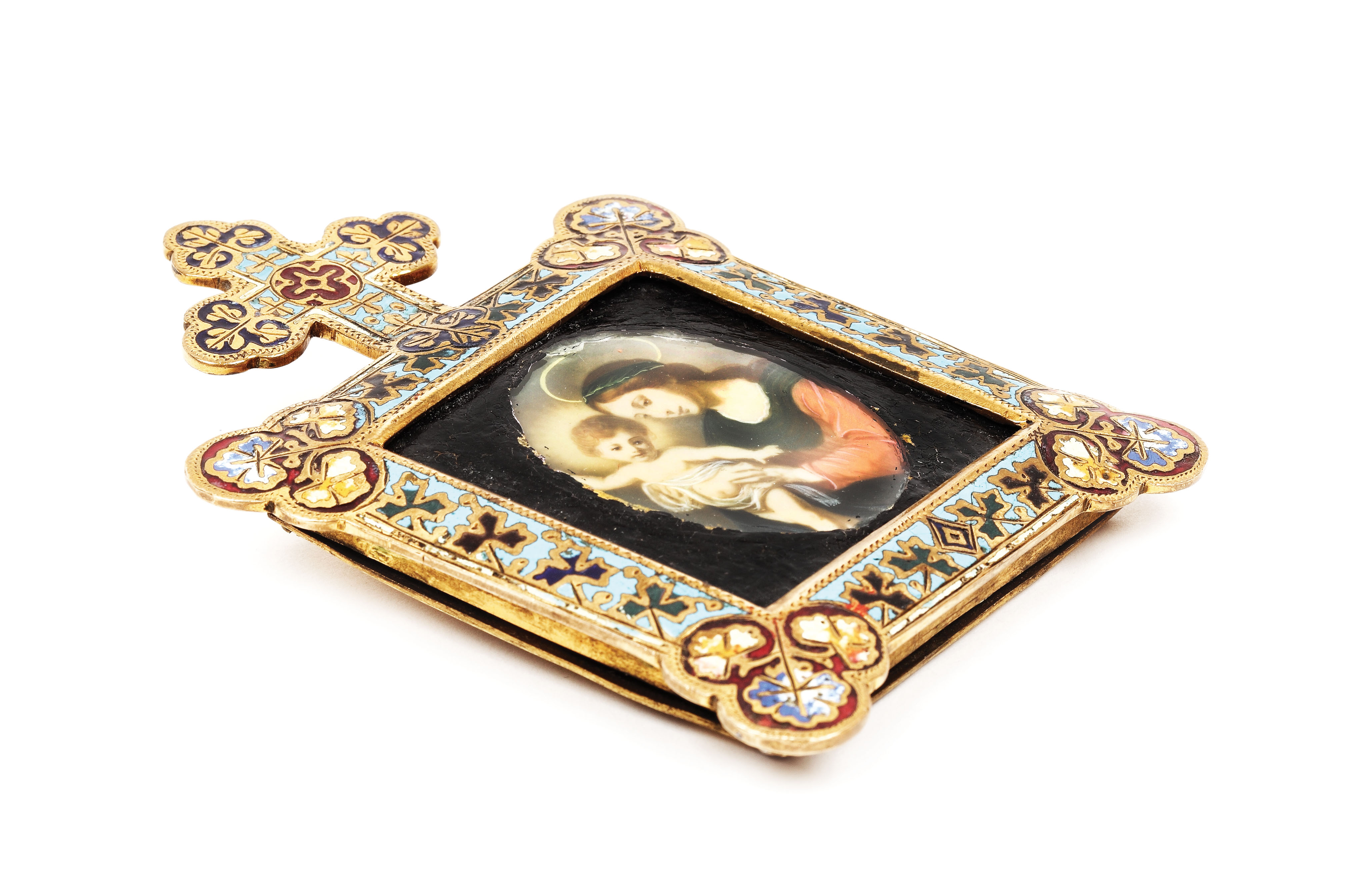174. Cruce engolpion, decorată cu email și cu medalion "Fecioara Maria cu Pruncul", atelier rusesc, sec. XIX