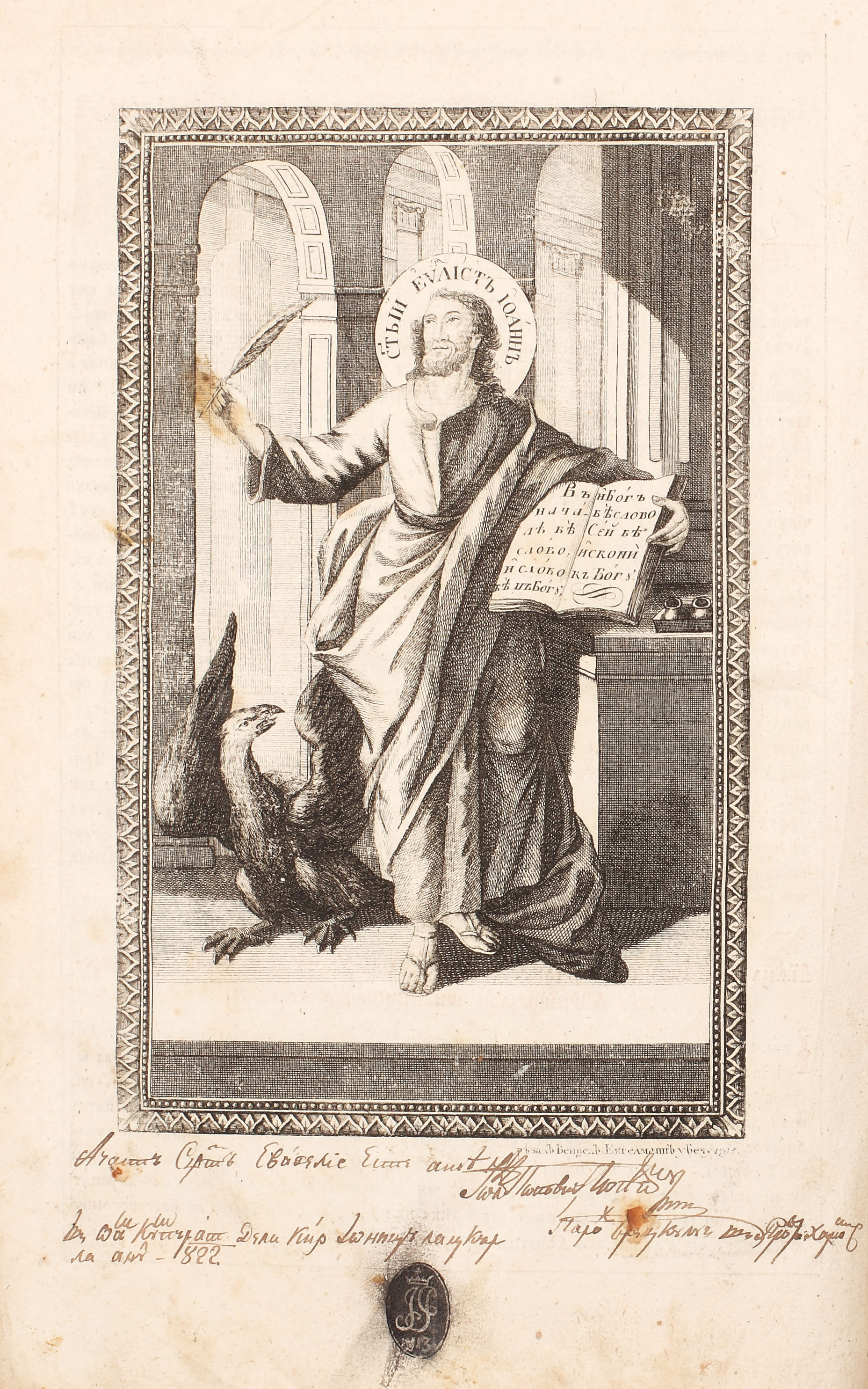 Mențiuni de colecție: 1. Ioan Laţcur, Focşani, 1812-1813; 2. note şi pecetea în negru de fum „IP” a lui Ioan Popovici Popescu, preot în Breţcu şi protopop în ţinutul Trei Scaune, Şercaia, 1813, 1821.