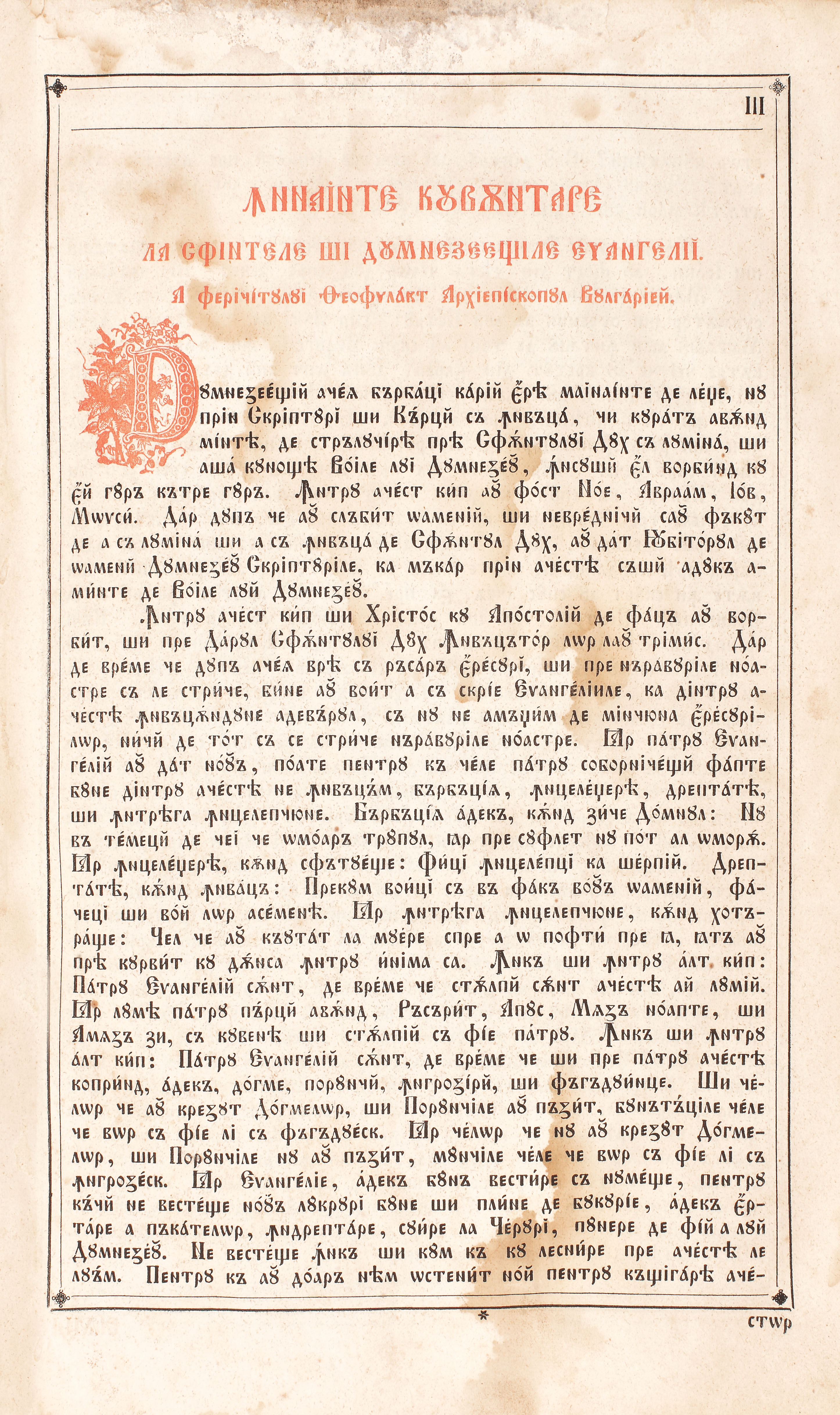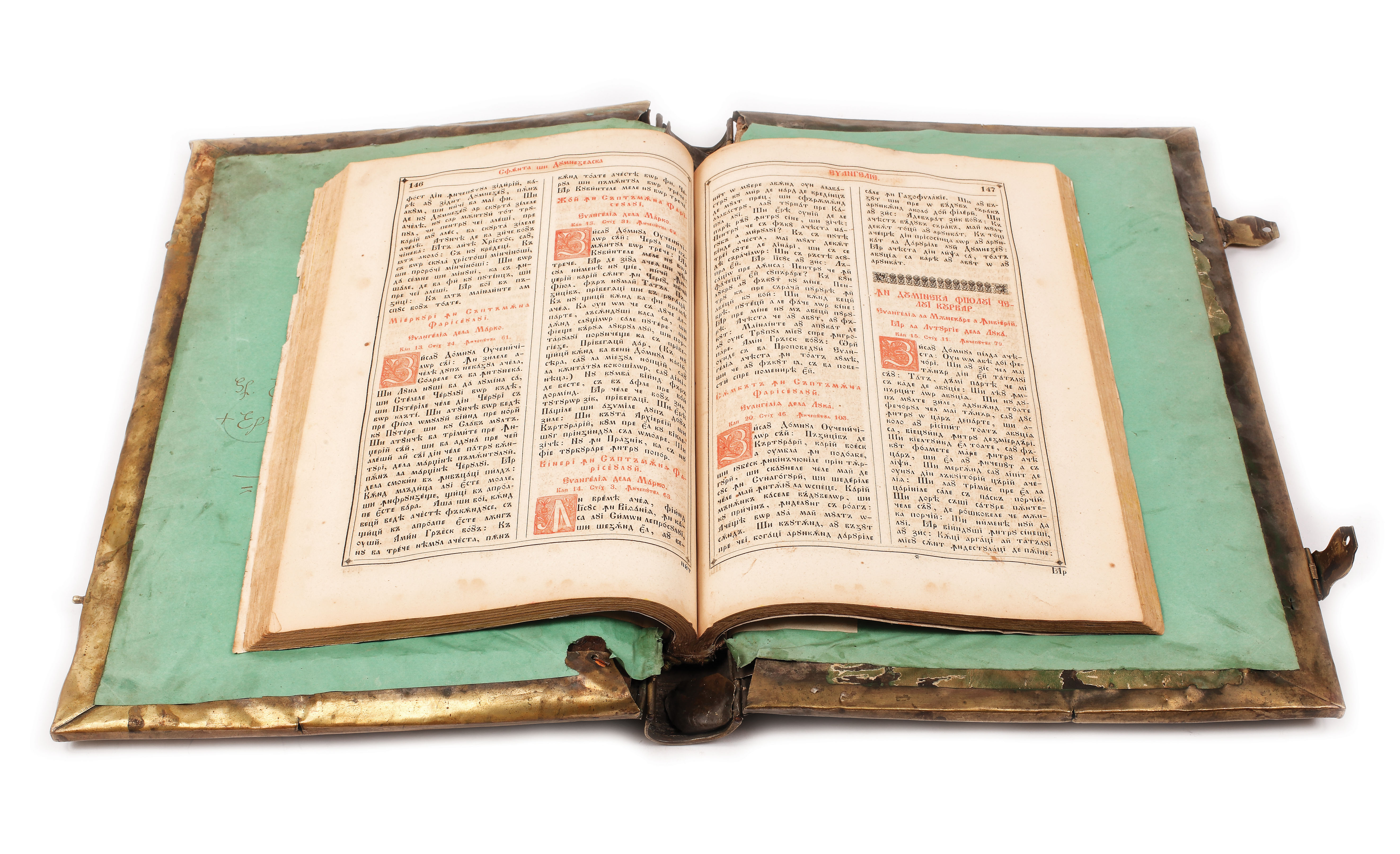 Romanian in Cyrillic script; printed in red and black; 268 pages + 2 handwritten pages added