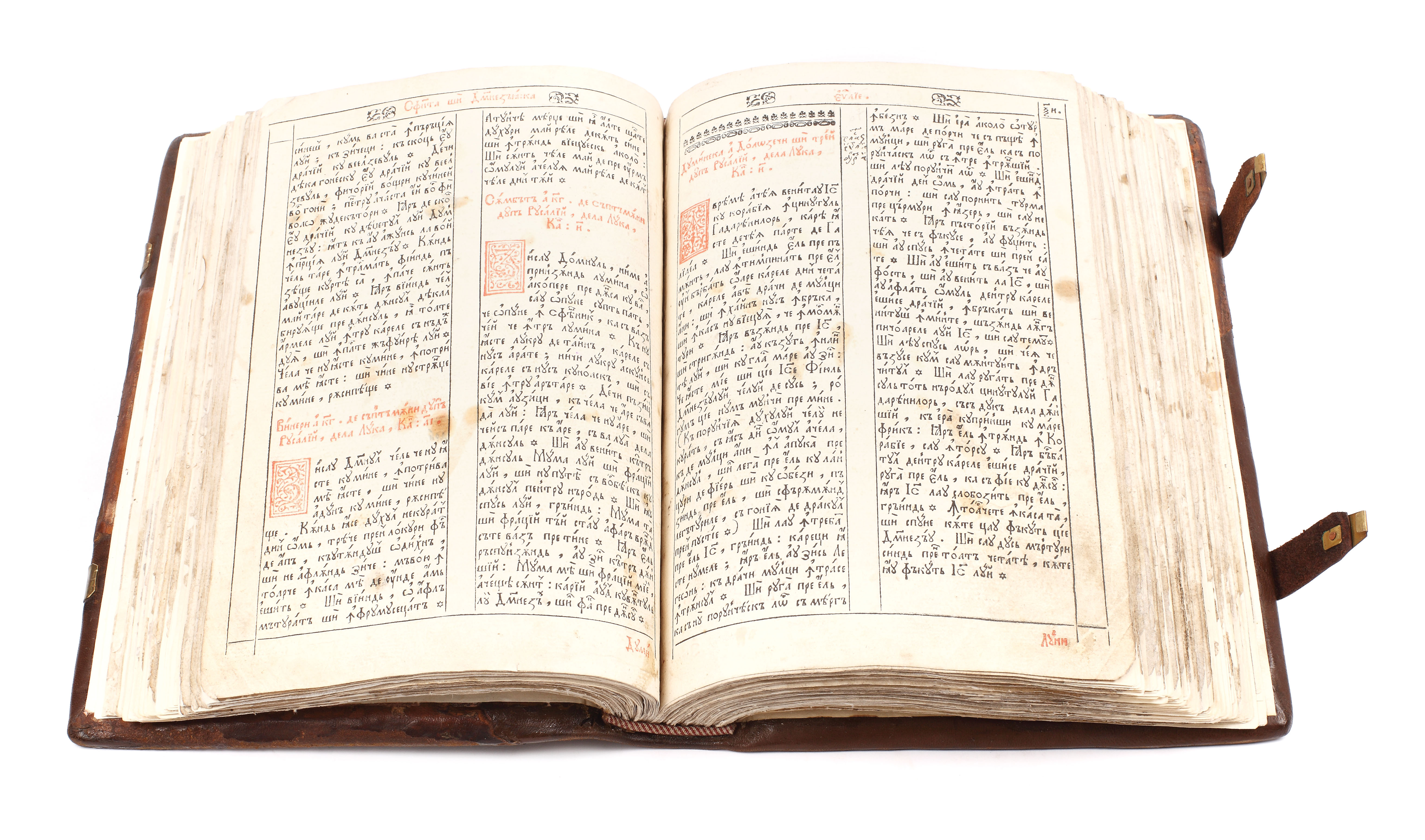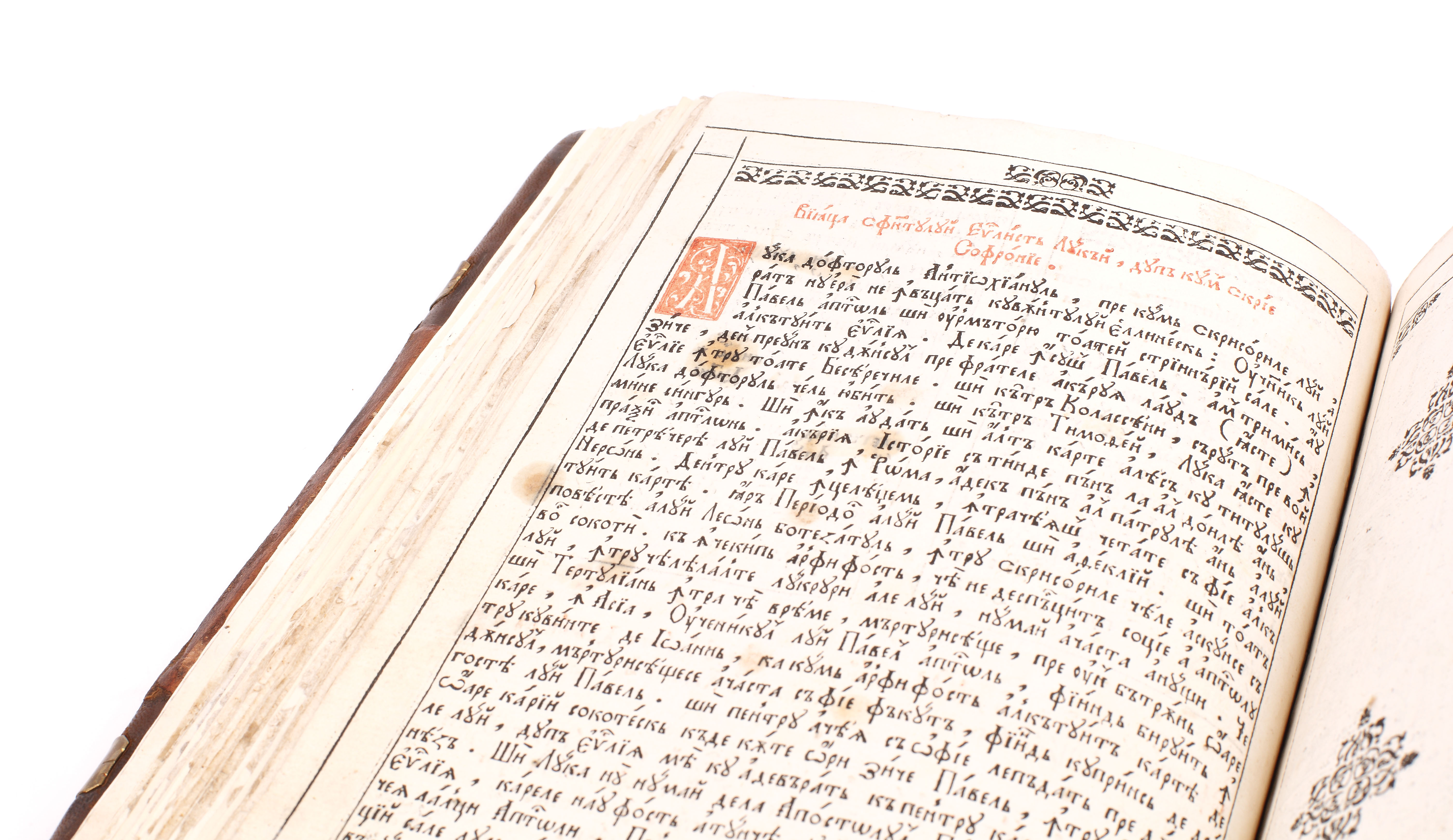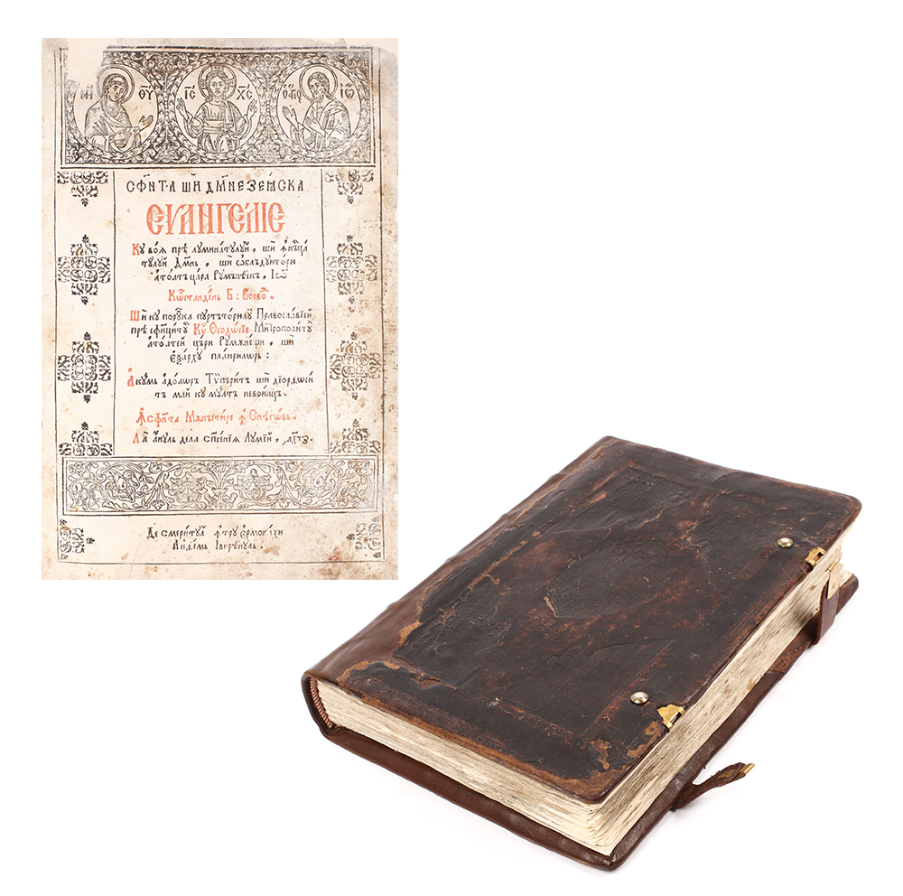 85C. ”Evanghelia” lui Antim Ivireanul (prima sa Evanghelie în limba română), din vremea lui Constantin Brâncoveanu, Snagov, 1697
