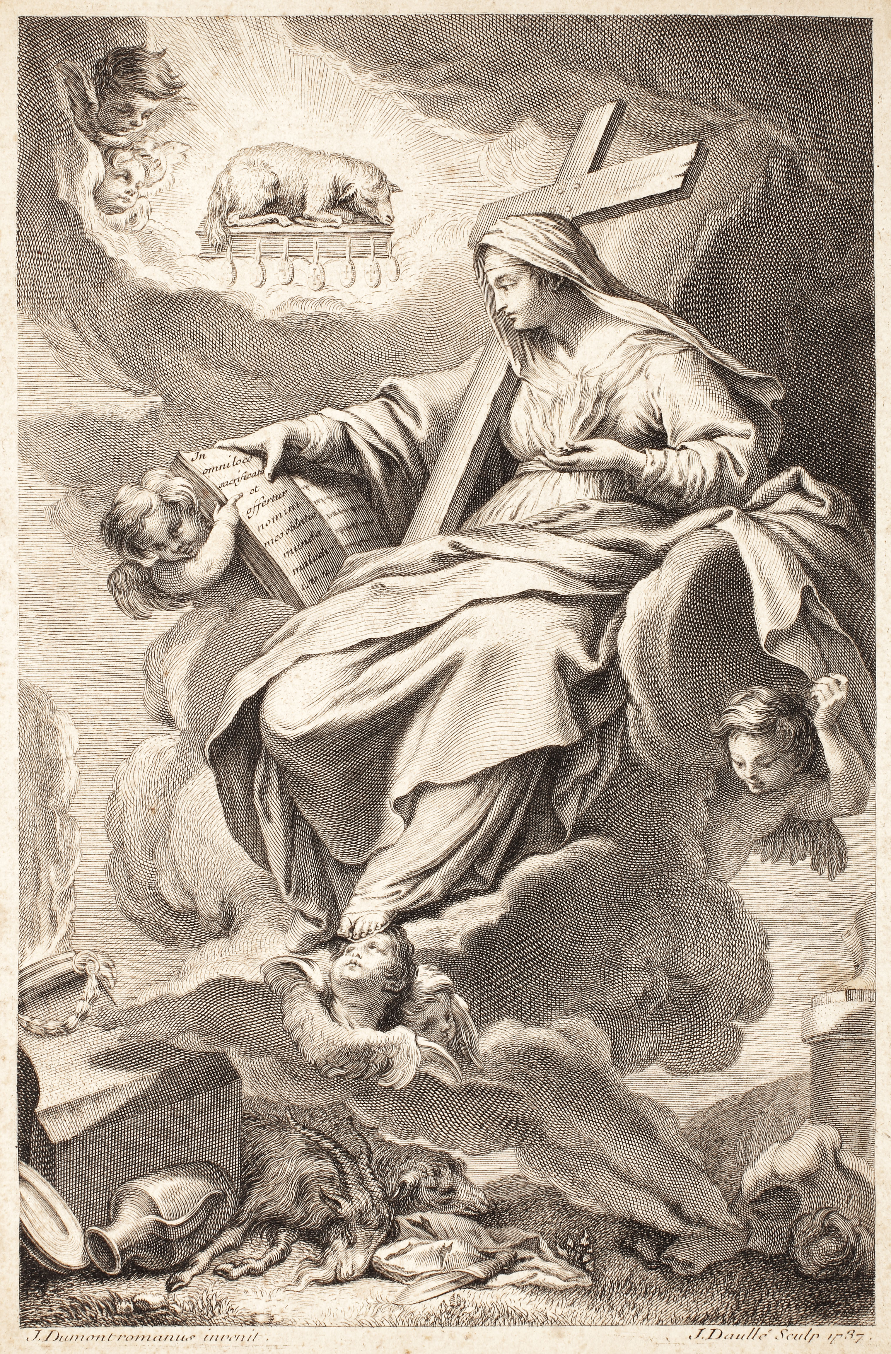 184. ”Fecioara Maria purtând Crucea”, gravură după Jacques Dumont [1737]