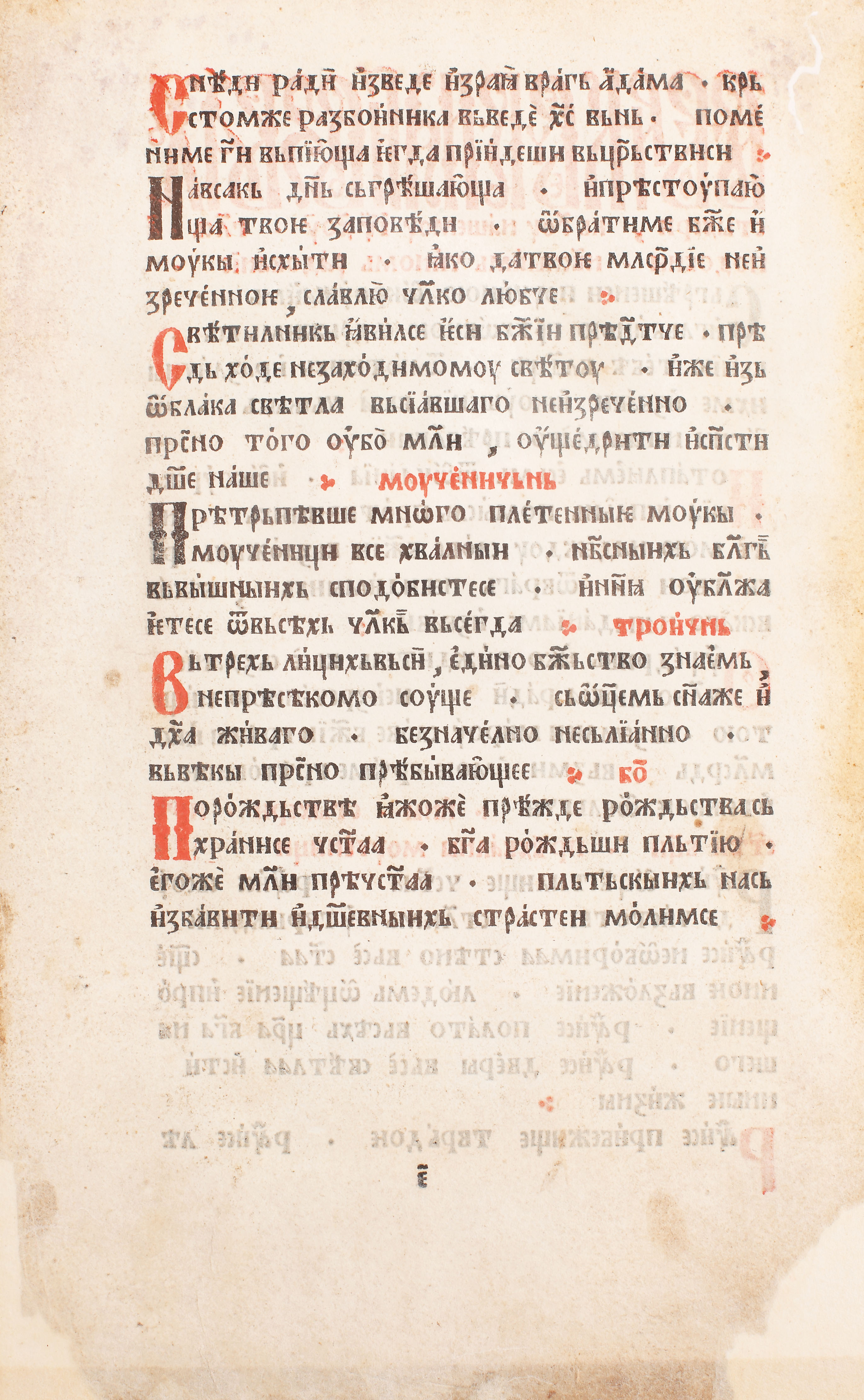 69C. Filă de incunabul, din "Primul Octoih" ("Oktoih Prvoglasnik"), al ieromonahului Macarie, prima carte tipărită de Macarie și prima carte în limba slavonă de sud din Europa, Cetinje, 1494