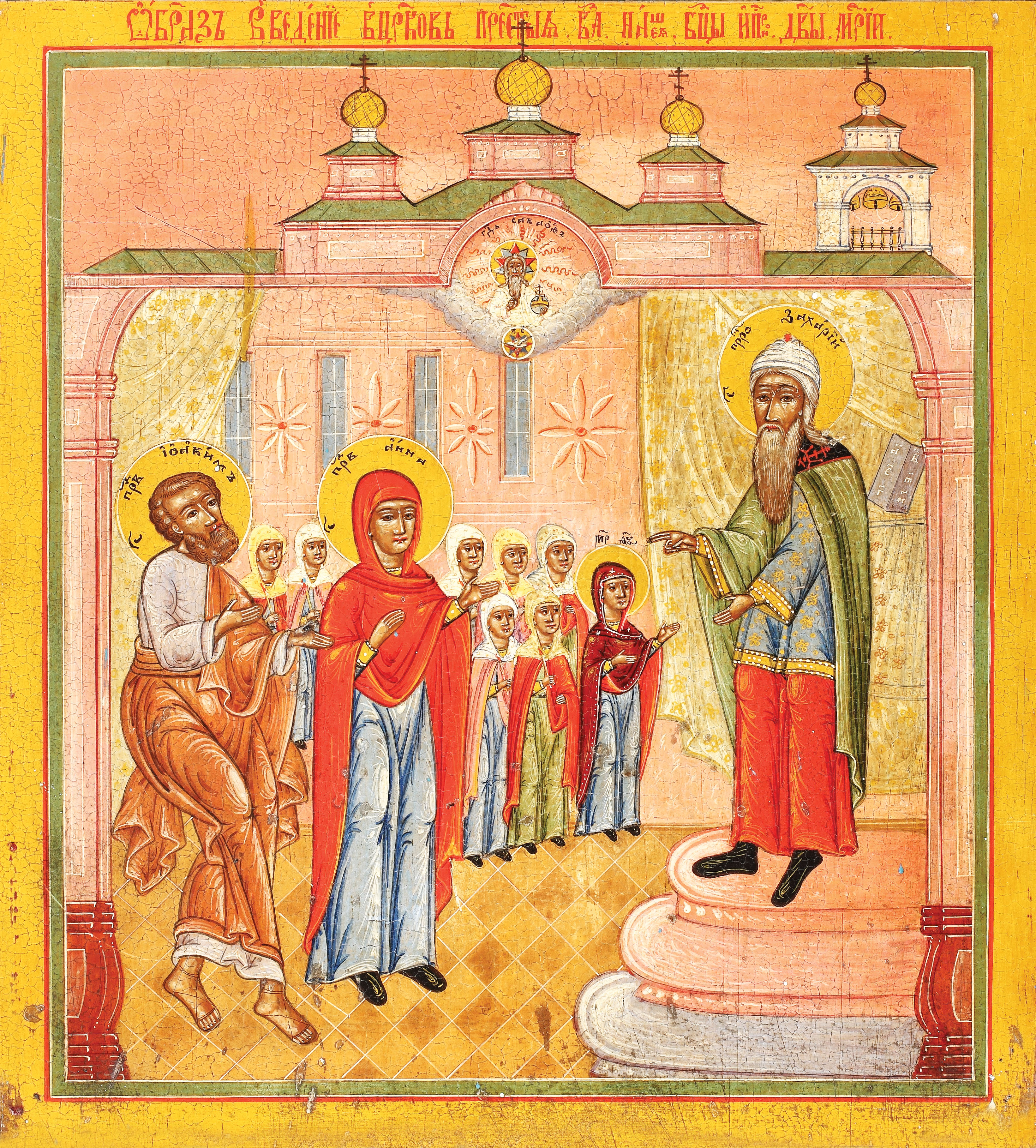 59. Icoană pe lemn, "Intrarea în Biserică a Maicii Domnului", scoală rusească, sec. XIX