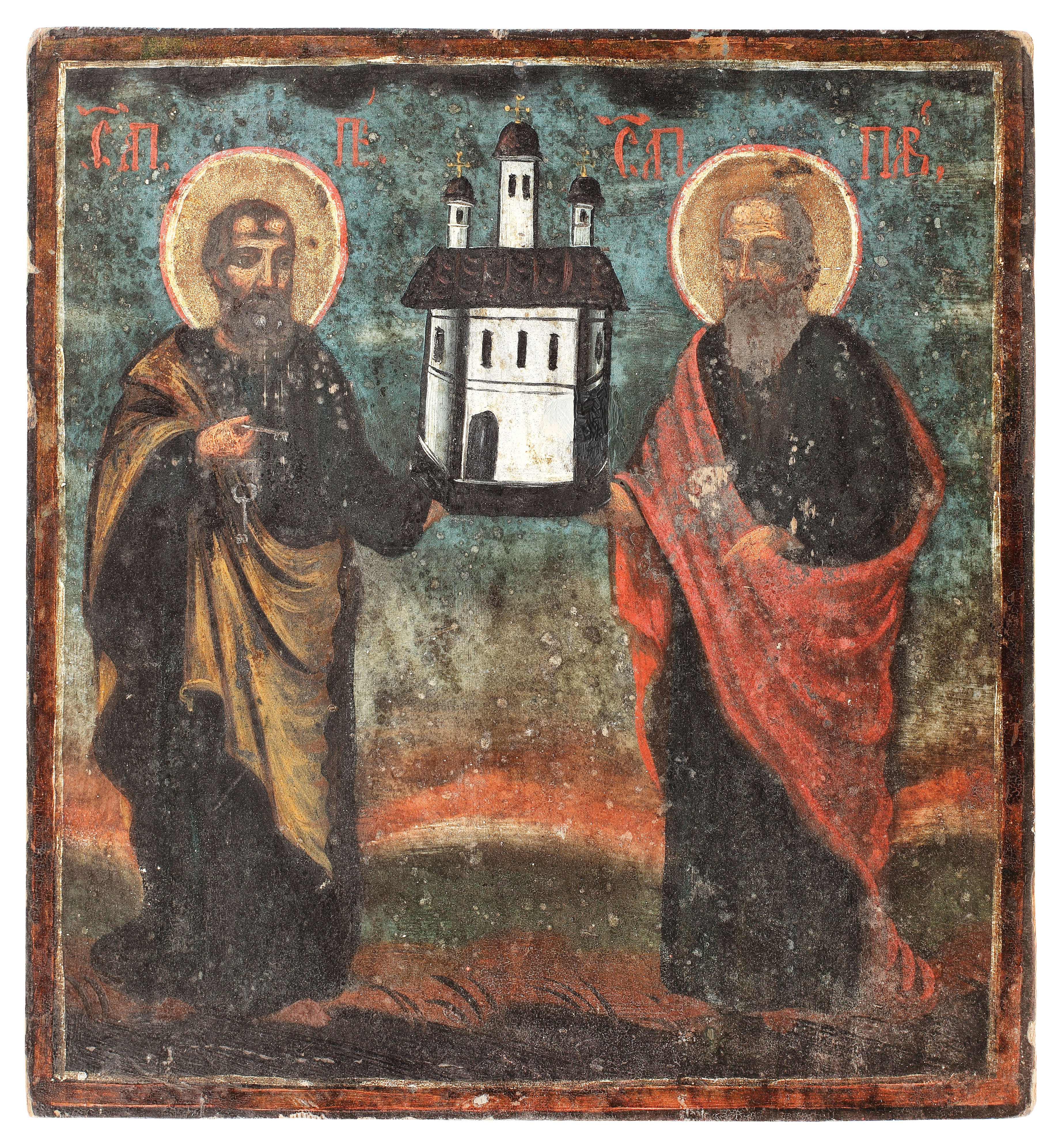 68. Icoană pe lemn, "Sfinţii Petru şi Pavel", sec. XIX