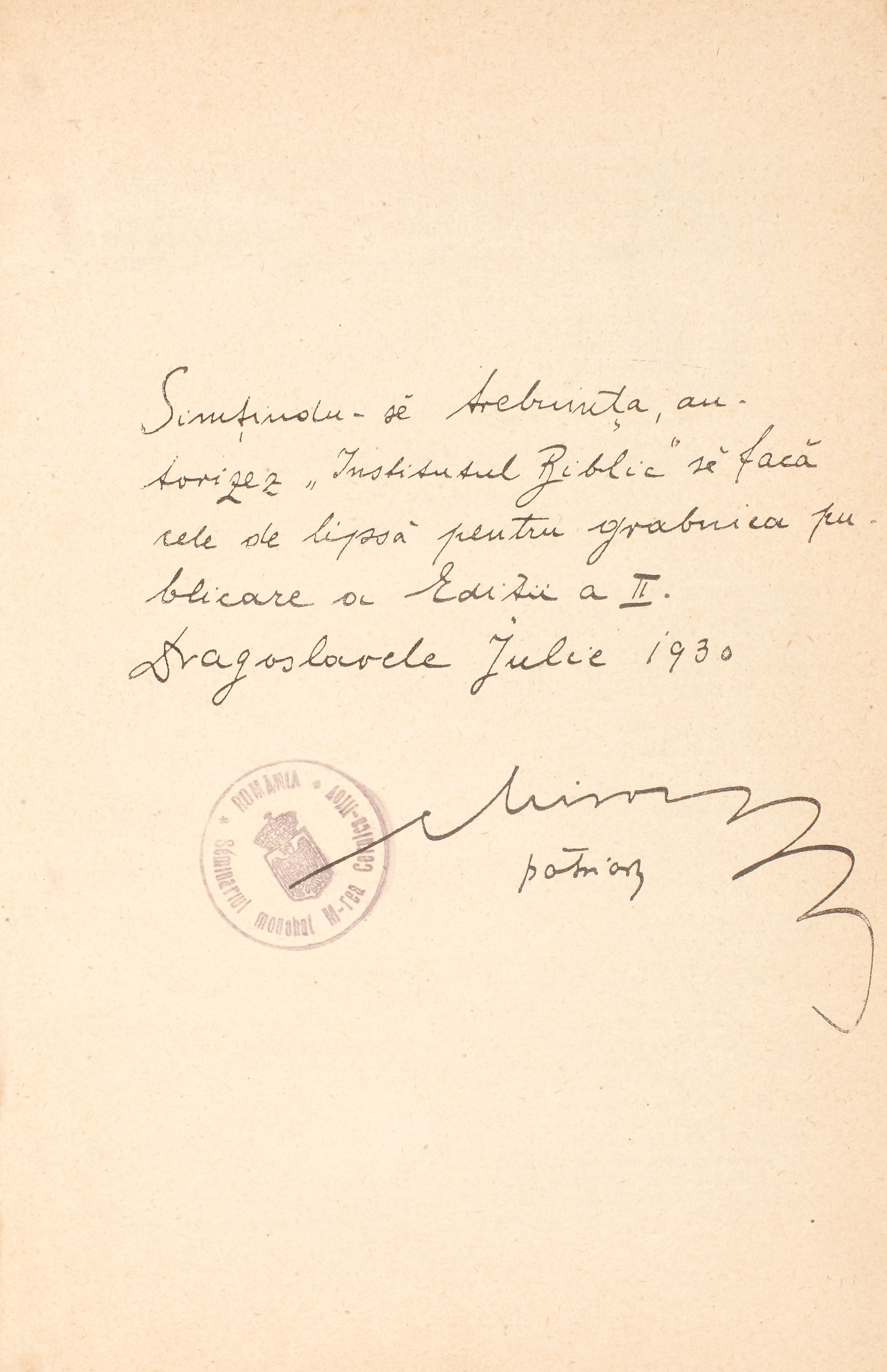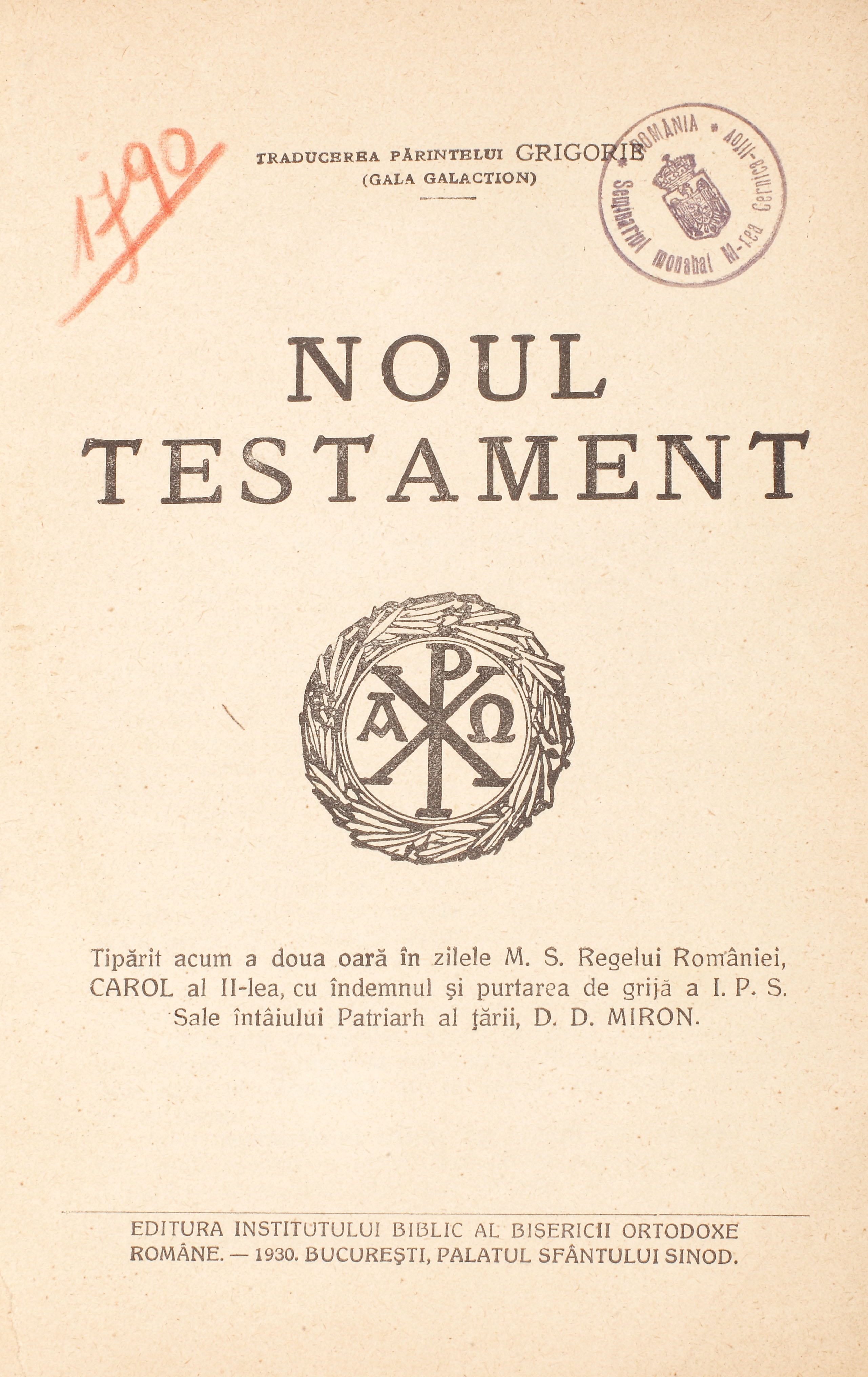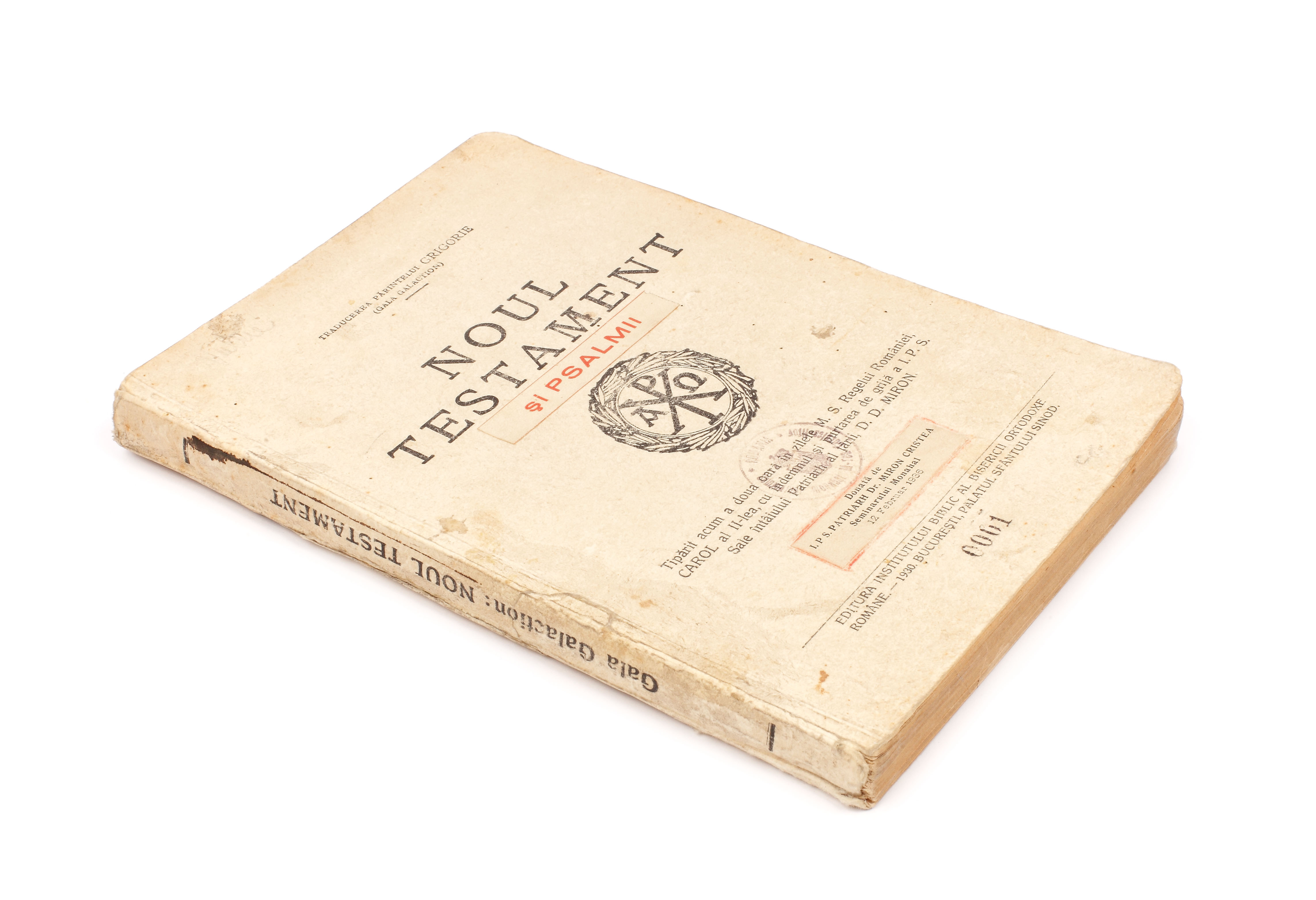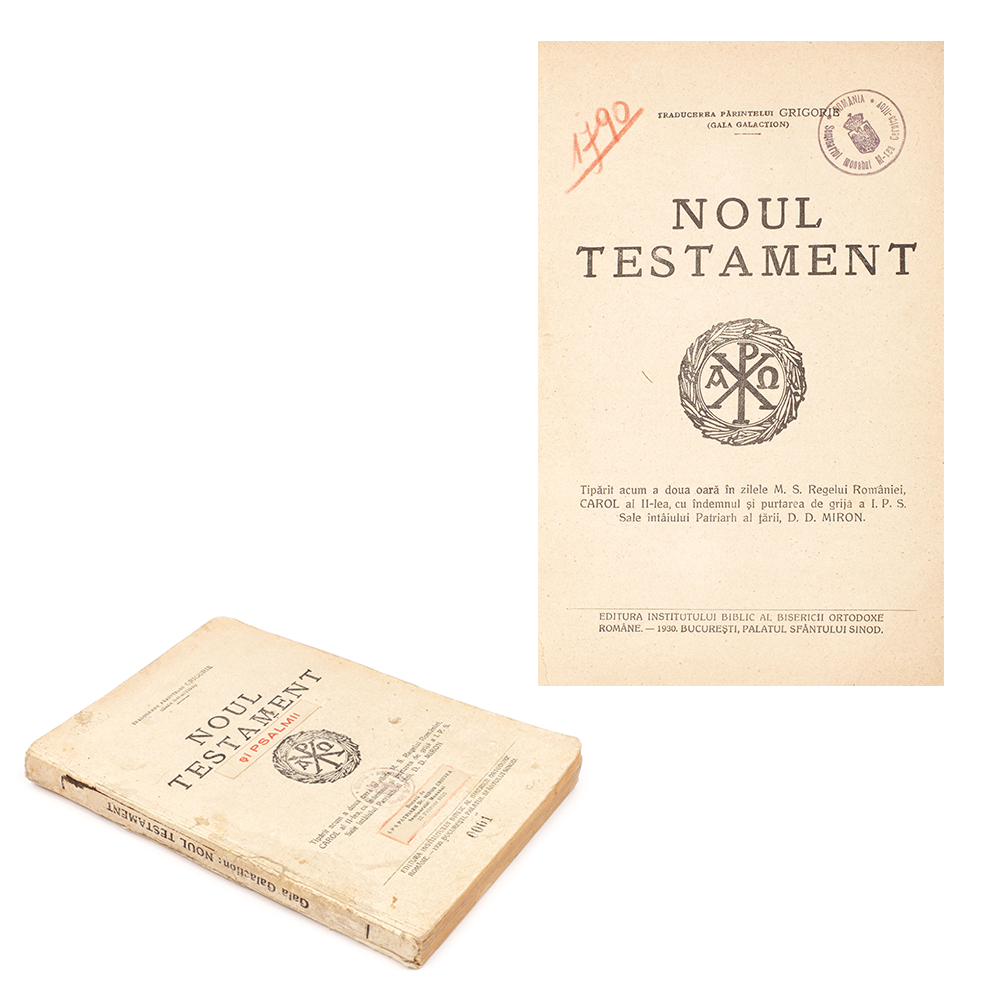 141. "Noul Testament şi Psalmii", traducere de Gala Galaction, 1930, a aparţinut patriarhului Miron Cristea (ex. nr. 0001)