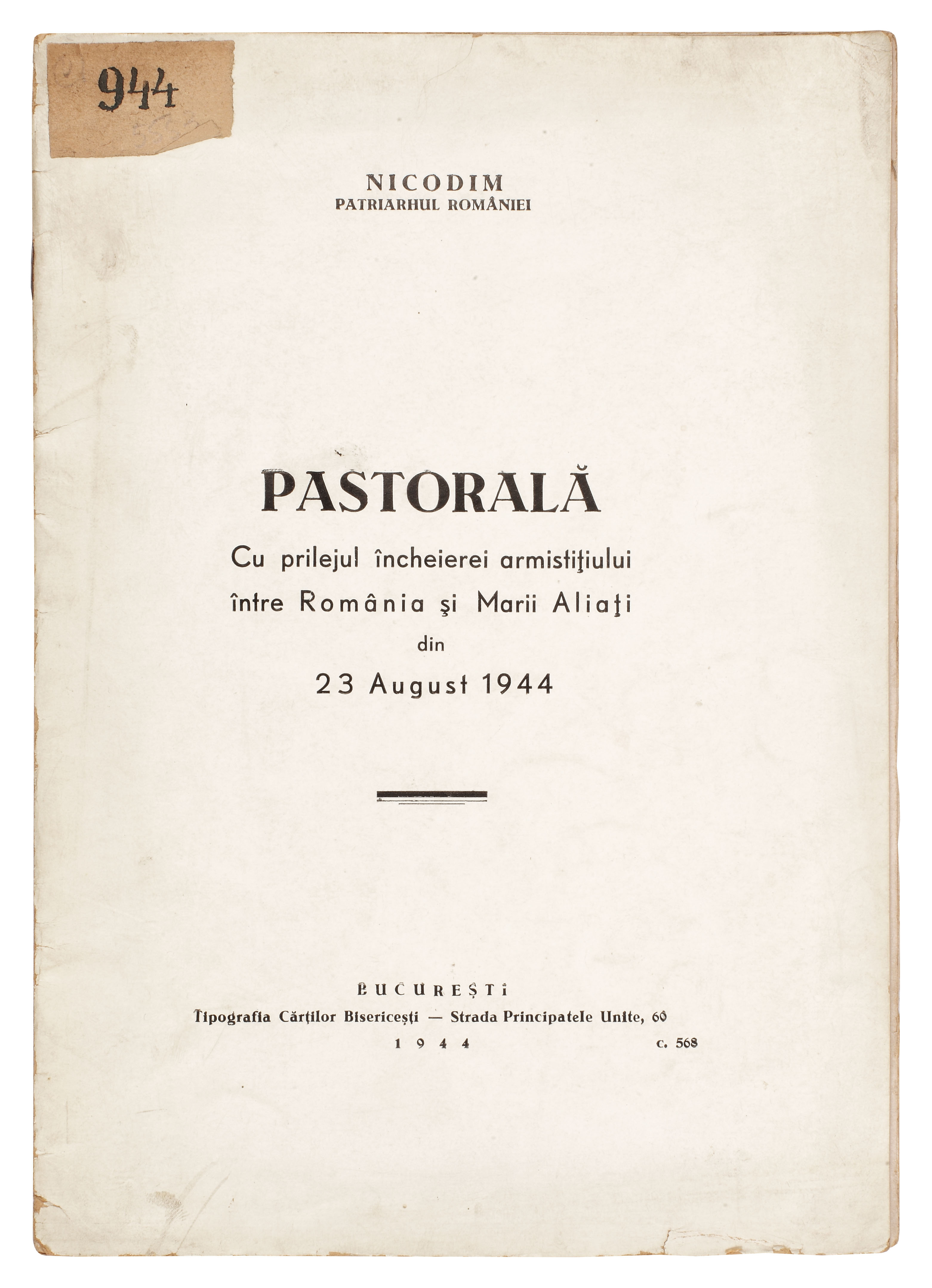 199. Pastorală rostită de Patriarhul Nicodim Munteanu cu prilejul încheierii armistiţiului între Romania şi Marii Aliaţi, 23 august 1944