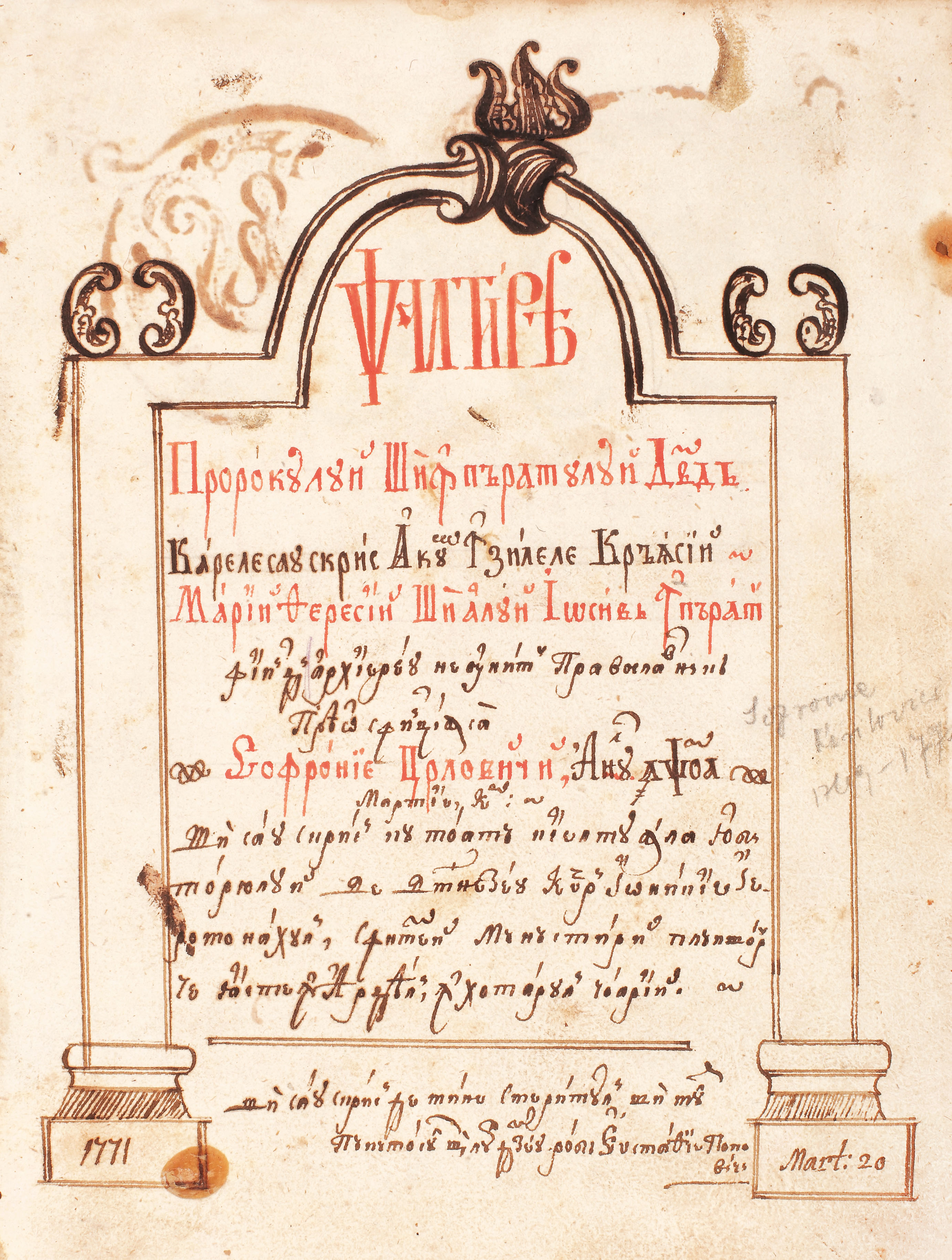 109C. "Psaltirea" lui Nicolae Rațiu de la Cioara (preotul duhovnic al lui Horea și Cloșca), 1771