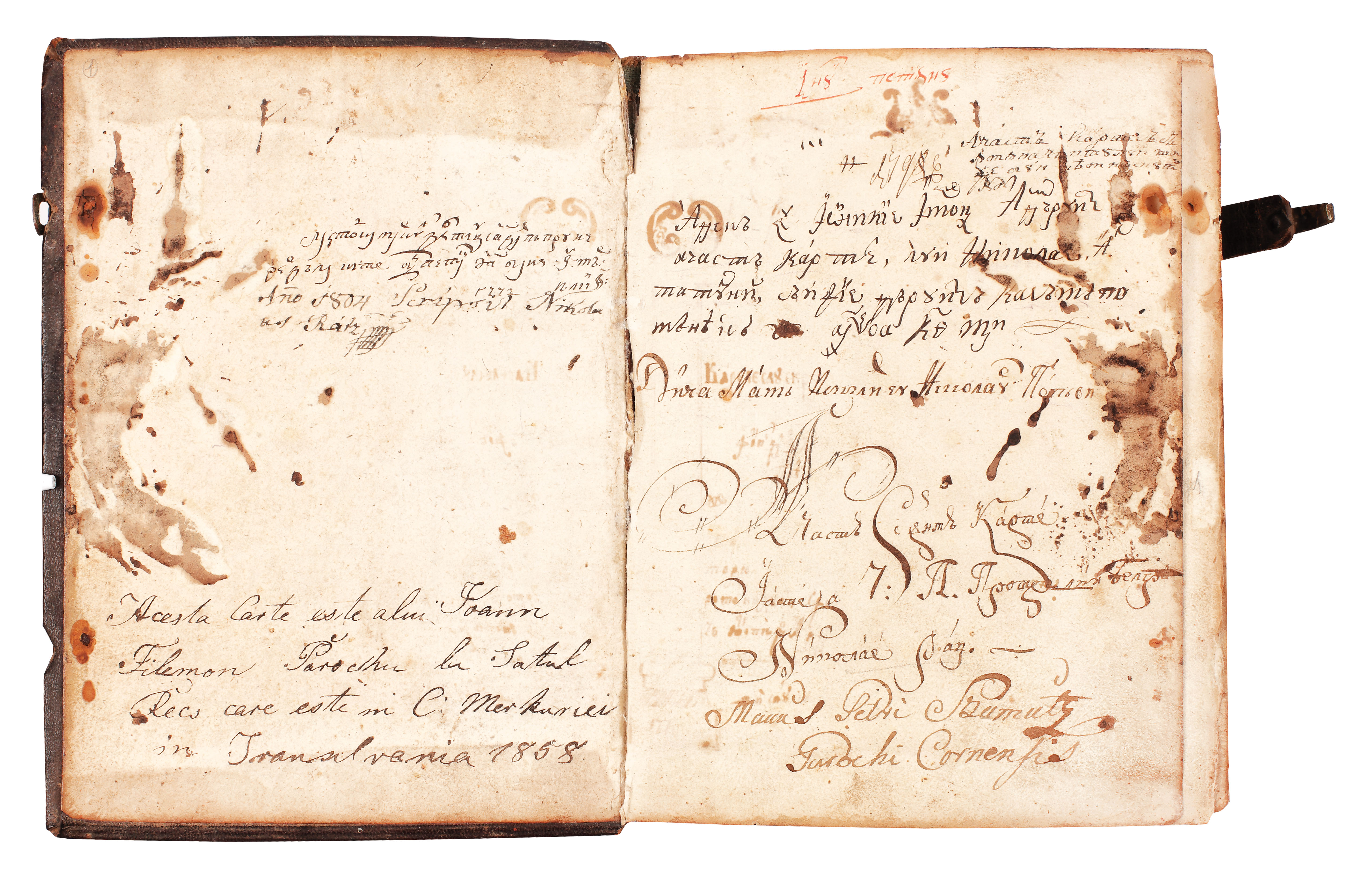 Colecții: 1. Nicolae Raţiu, protopop de Bălgrad; 2. Nicolae al Tatulni; 3. preotul Petru Simuț de la Cornea; 4. Ioan Filimon, sat Recs, Transilvania, 1858; 5. prof. Ion Iliescu, Timişoara, 2017.