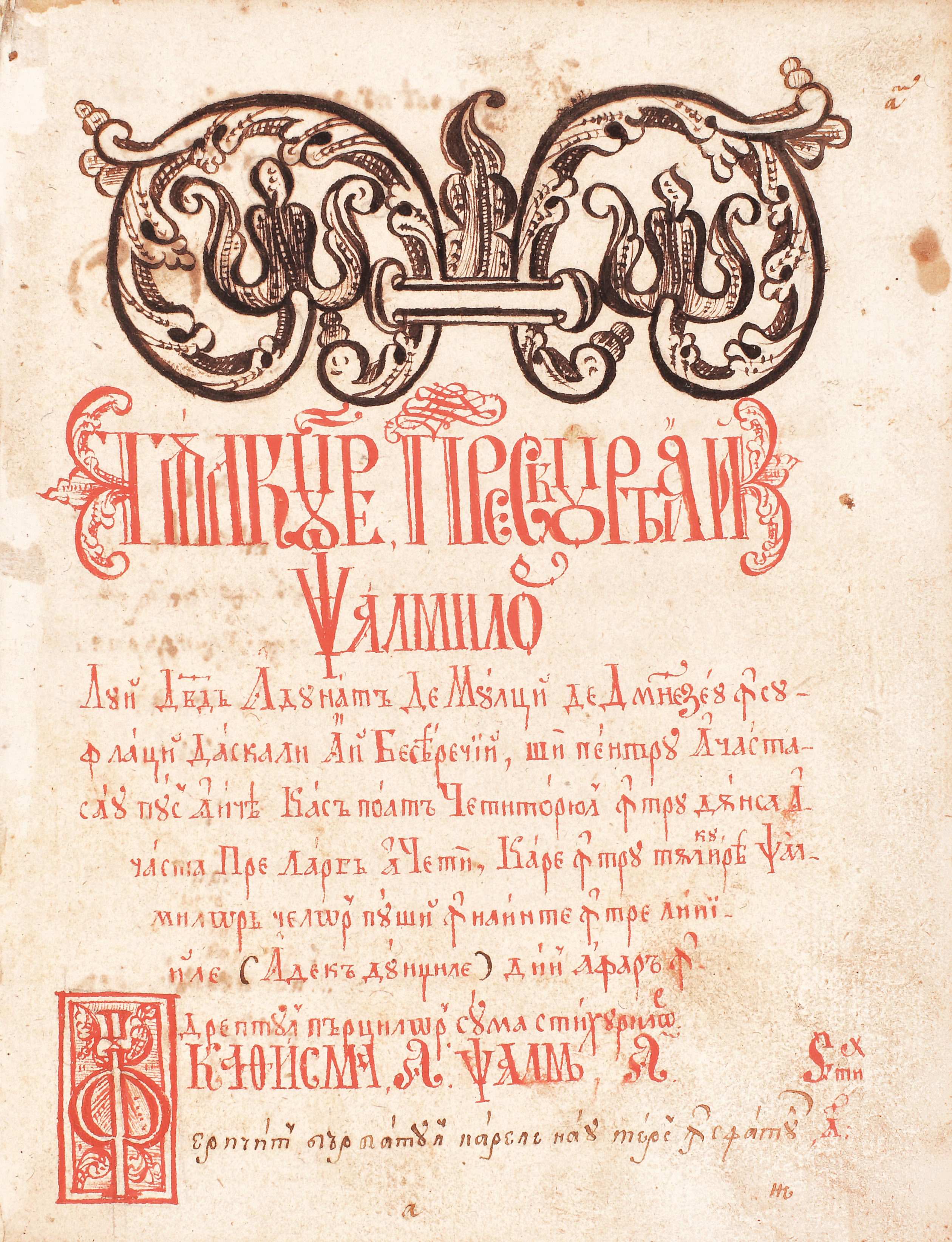 copiști monahii Eustatie Popovici din Ţara Moţilor şi Nicolae Raţiu de la Cioara (Alba Iulia); comanditar: Ieromonahul Ioanichie