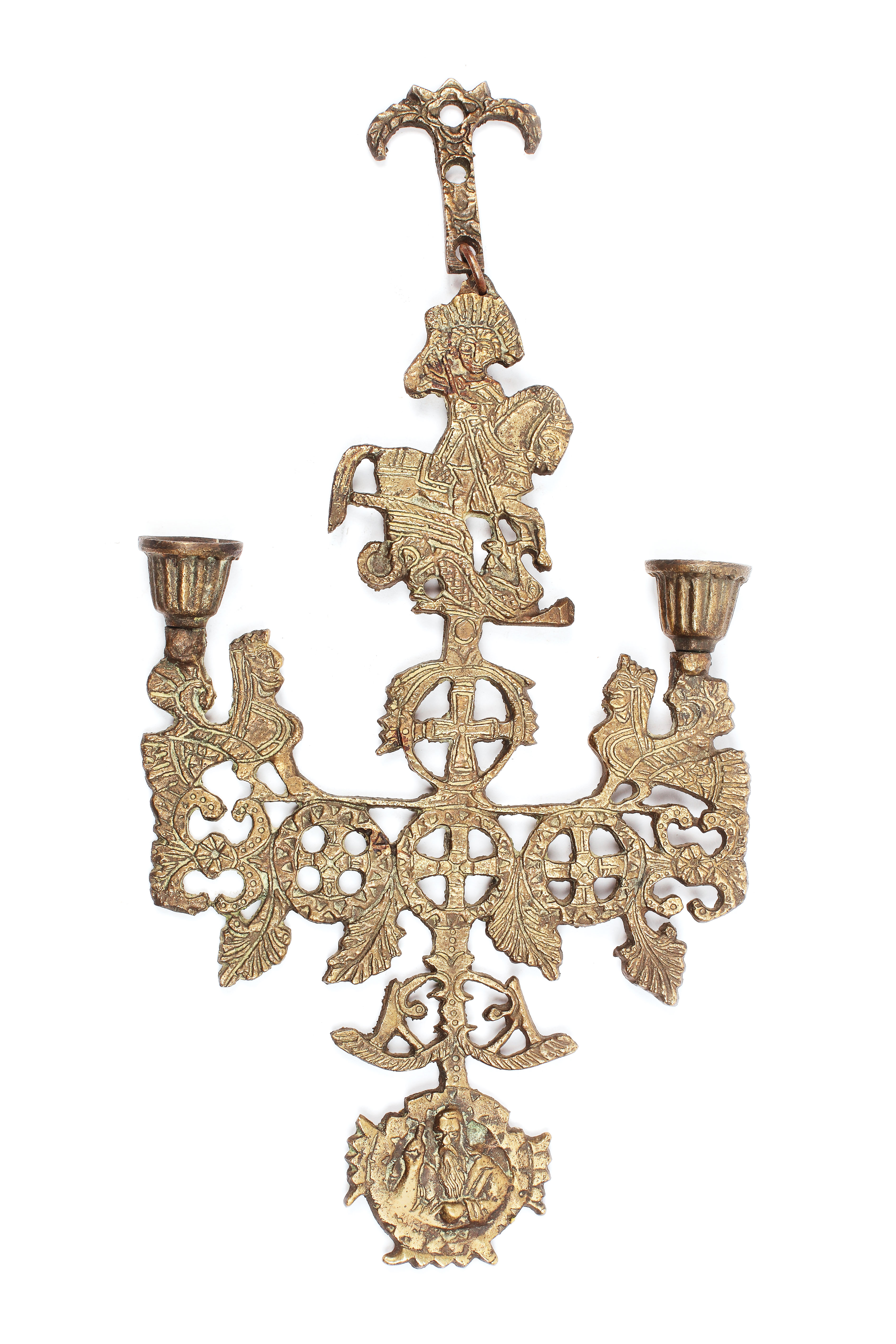 170. Suport de lumânări din alamă, reprezentându-l pe ”Sfântul Gheorghe ucigând balaurul”