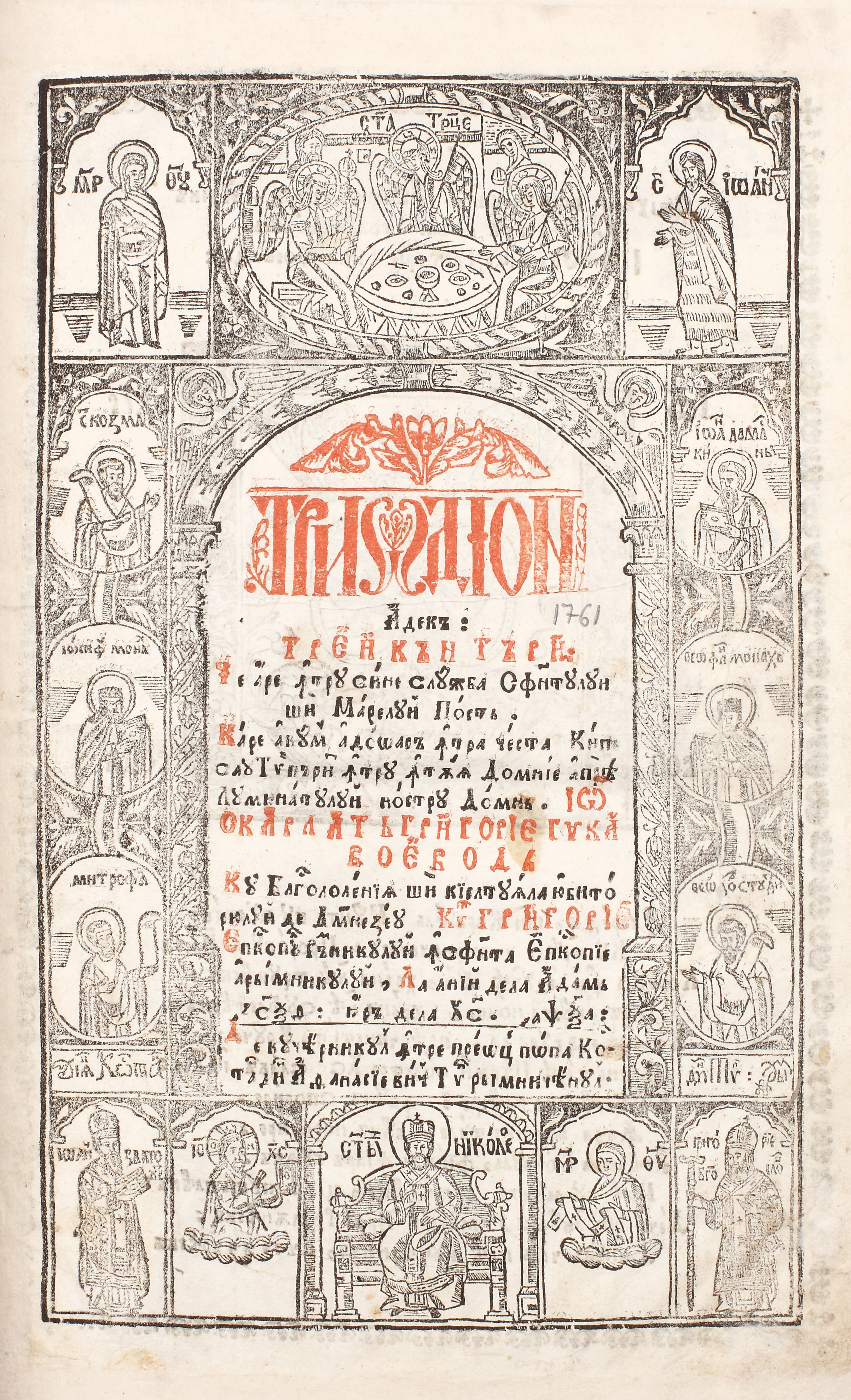 104C. ”Triodionul” din vremea domnitorului Scarlat Grigorie Ghica, Râmnic, 1761
