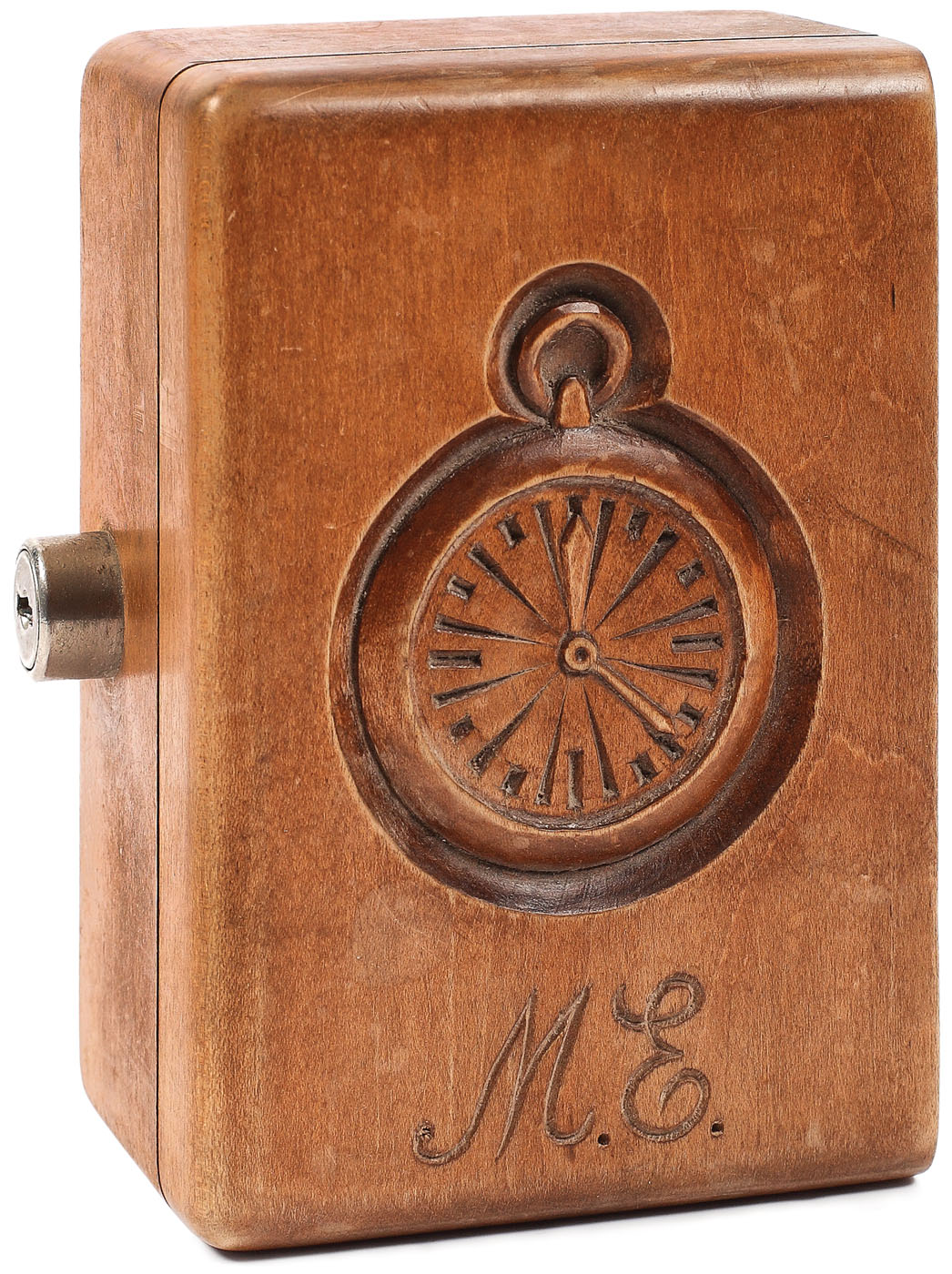 Ceas de buzunar ce a aparţinut poetului Mihai Eminescu, cu dedicaţie din partea junimiştilor: "Maestrului slovei", datat 1876. Mecanism cu armare manuală având 15 rubine, serie carcasă 12902. Ceasul este gravat pe capacul din spate cu iniţialele poetului, "M. E.", încadrate de motive florale. Acesta vine însoţit de cutie şi cheie pentru întoarcere. Piesă unicat ce a aparţinut celui mai important poet român, oferită cadou poetului din partea membrilor societăţii "Junimea", în anul 1876. În anul 1876, Eminescu era director al Bibliotecii Centrale din Iaşi, profesor suplinitor, revizor şcolar pentru judeţele Iaşi şi Vaslui, redactor la ziarul "Curierul de Iaşi", continuând totodată să publice în revista "Convorbiri Literare". Piesa de faţă a fost expusă în cadrul expoziţiei, "Eminescu în arhive și biblioteci particulare", în Rotonda MNLR (Muzeul Naţional al Literaturii Române) în anul 2012.