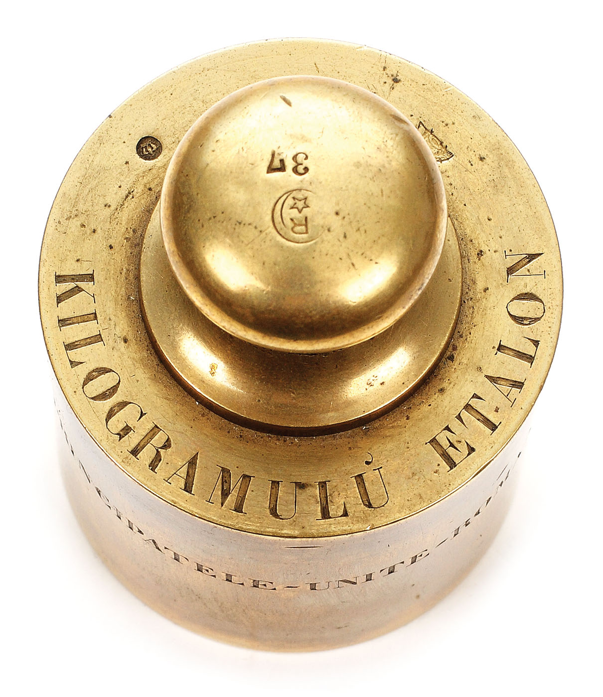199. Greutate etalon pentru un kilogram, inscripționată "Principatele Unite Române", piesă rară de colecţie, cca. 1880-1890