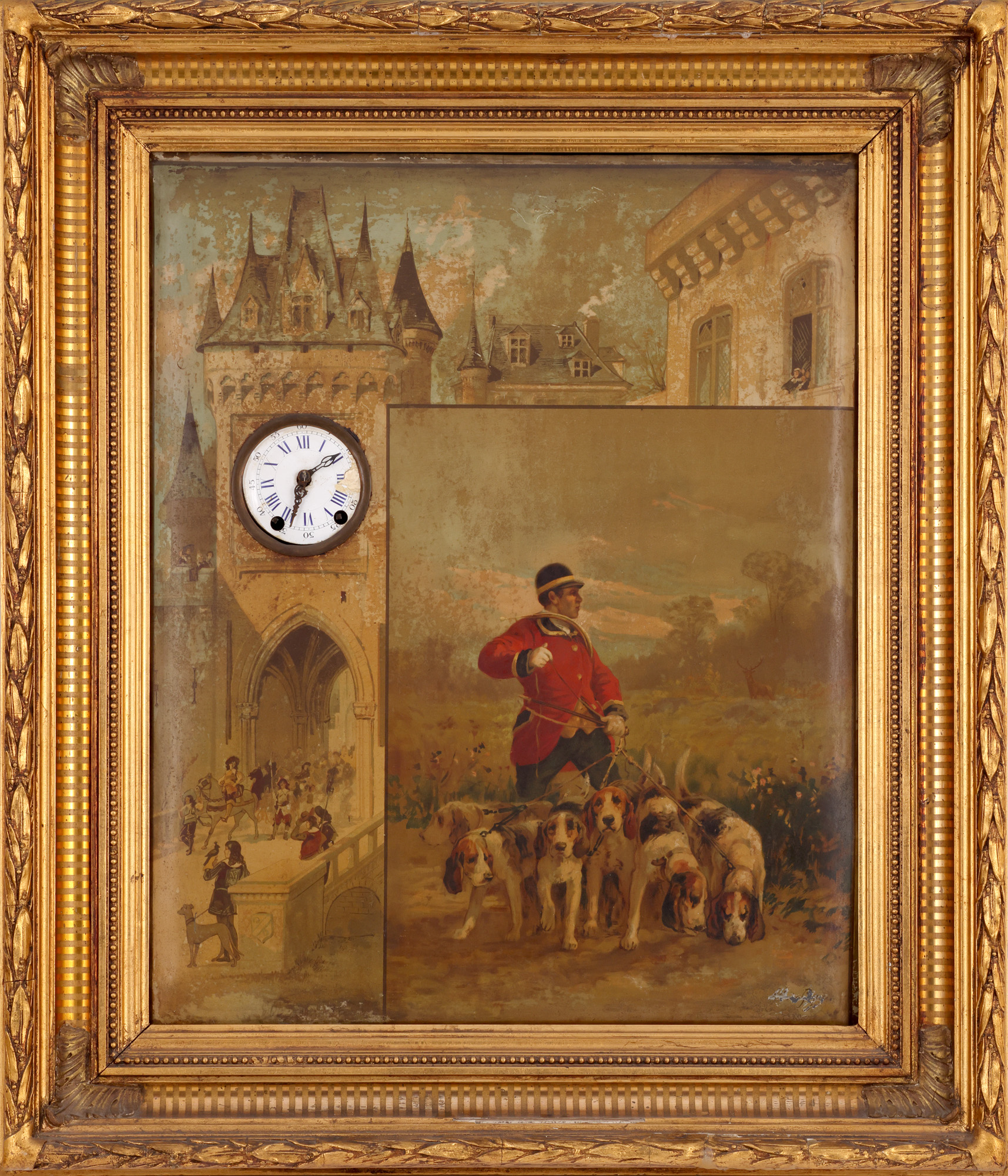 51. Ceas pictural în stil Biedermeier (cu mecanism muzical încorporat), sfârșitul sec. XIX