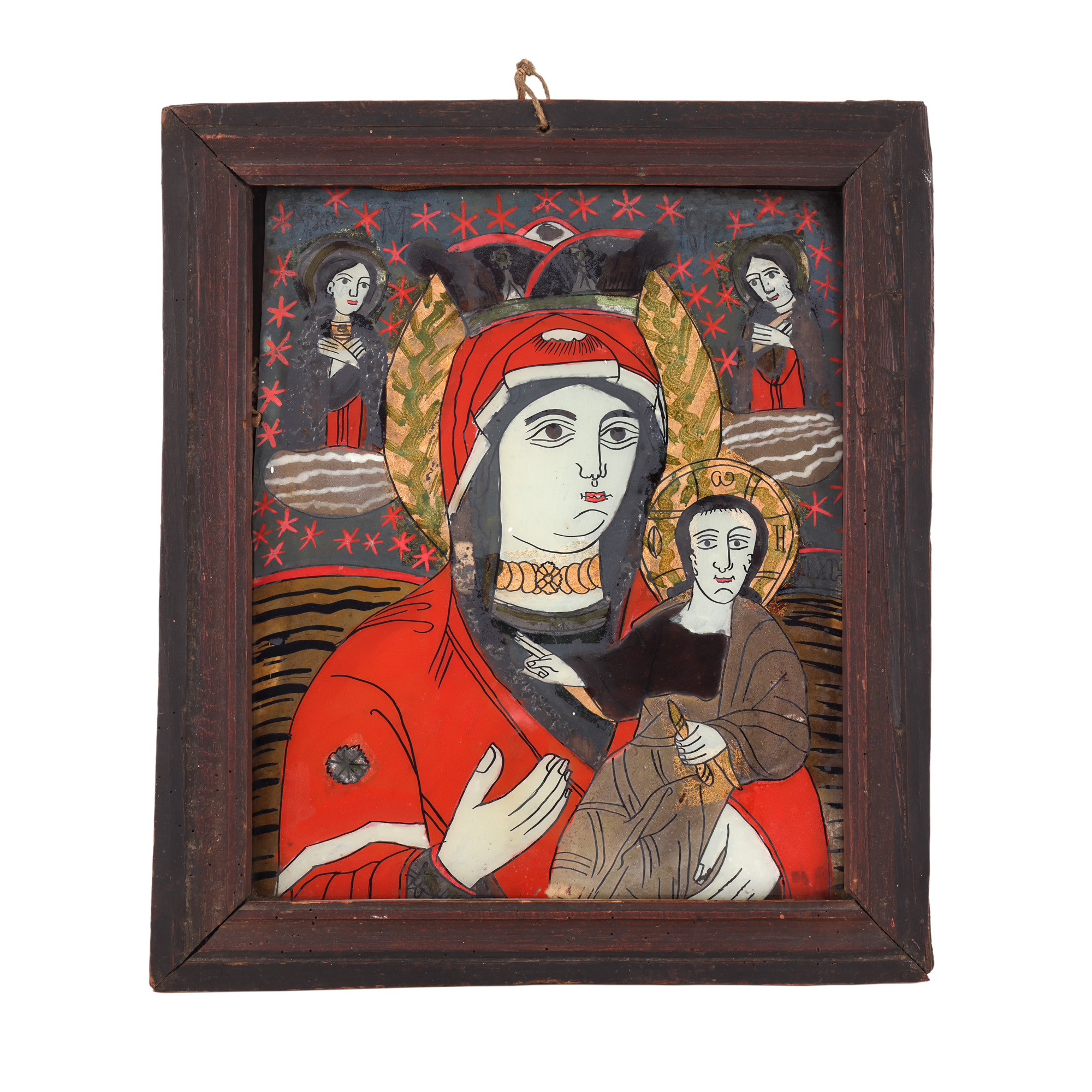 40. Icoană pe glajă, ”Maica Domnului cu Pruncul (Hodighitria)", atelier din Făgăraş‐Rupea, mijlocul sec. XIX