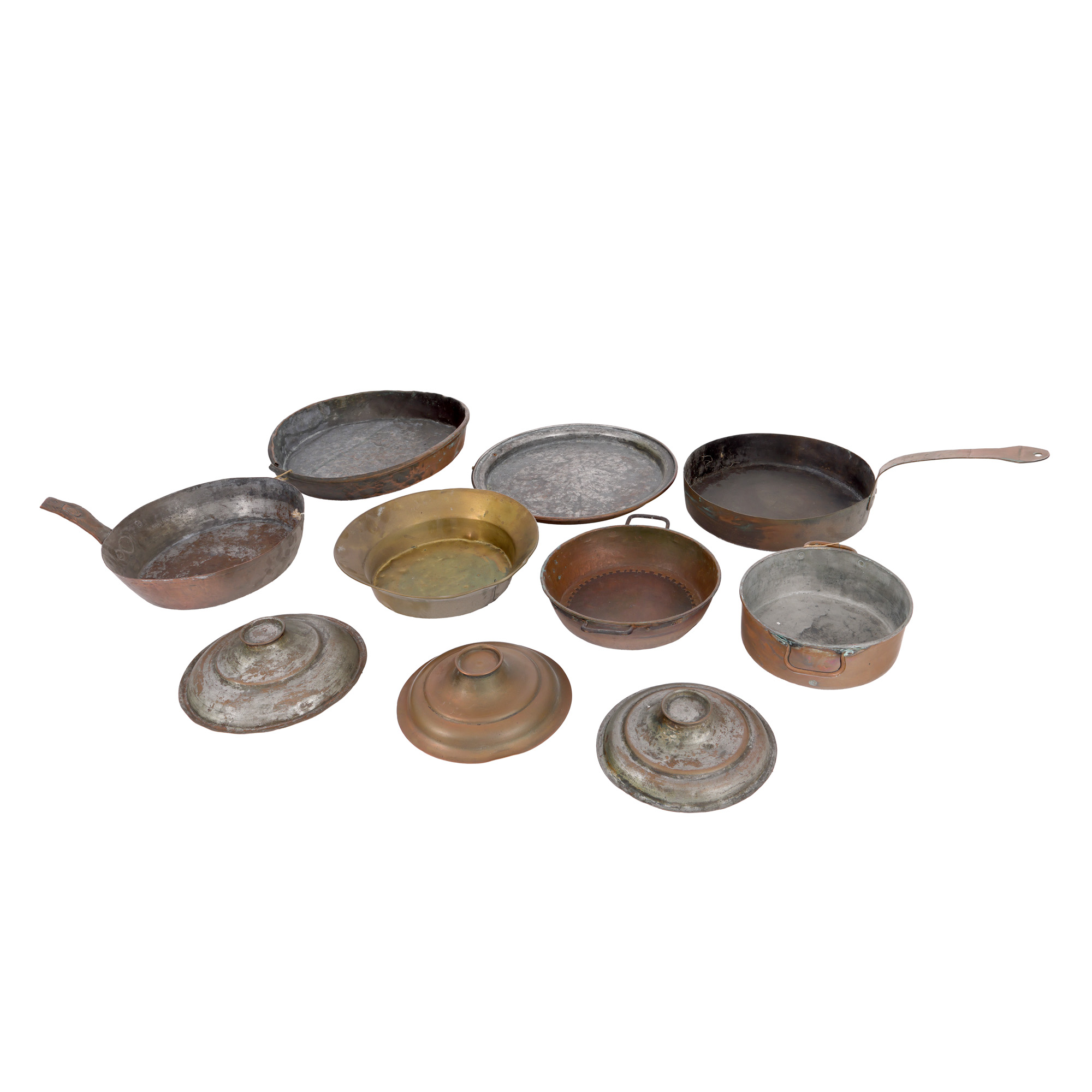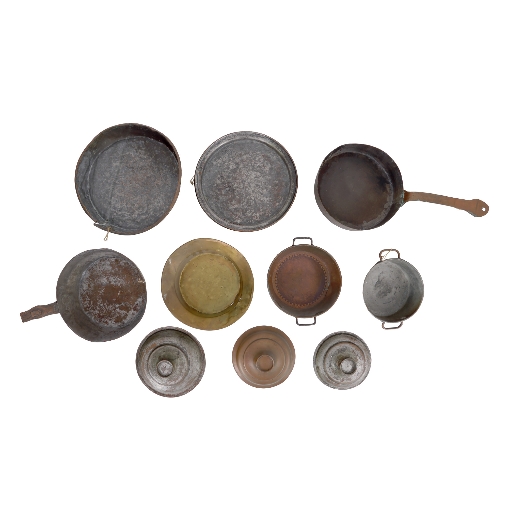 93. Lot format din 10 recipiente din cupru cositorit și alamă, pentru gătit, sfârșitul sec. XIX