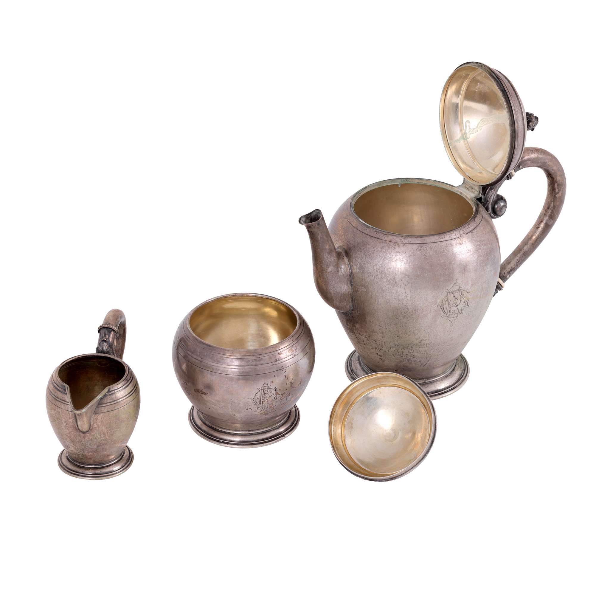 100. Set Breidenstein & Renaud Frankfurt din argint, format din ceainic, letieră și zaharniță