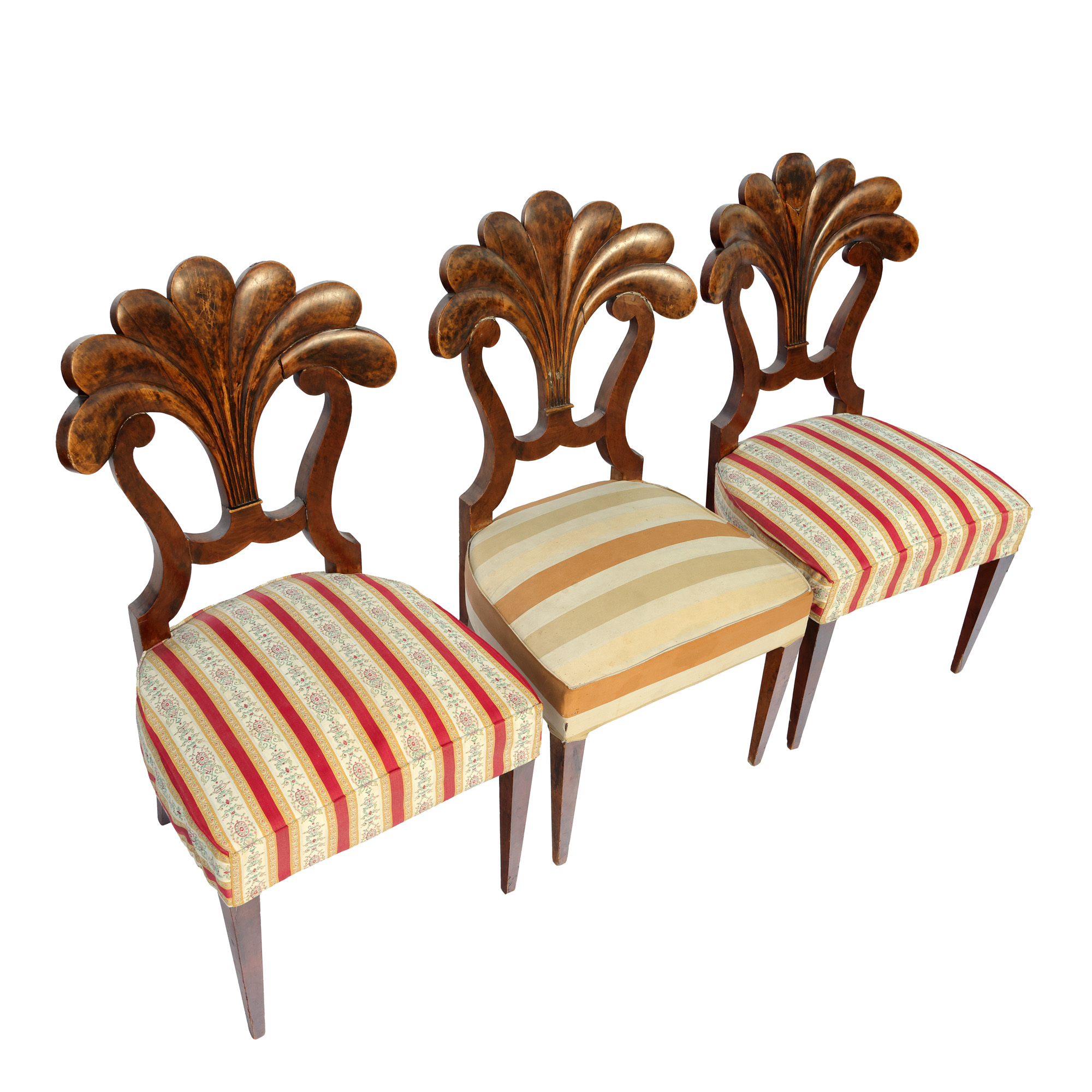 59. Set de trei scaune Biedermeier, din lemn de nuc, cca. 1850