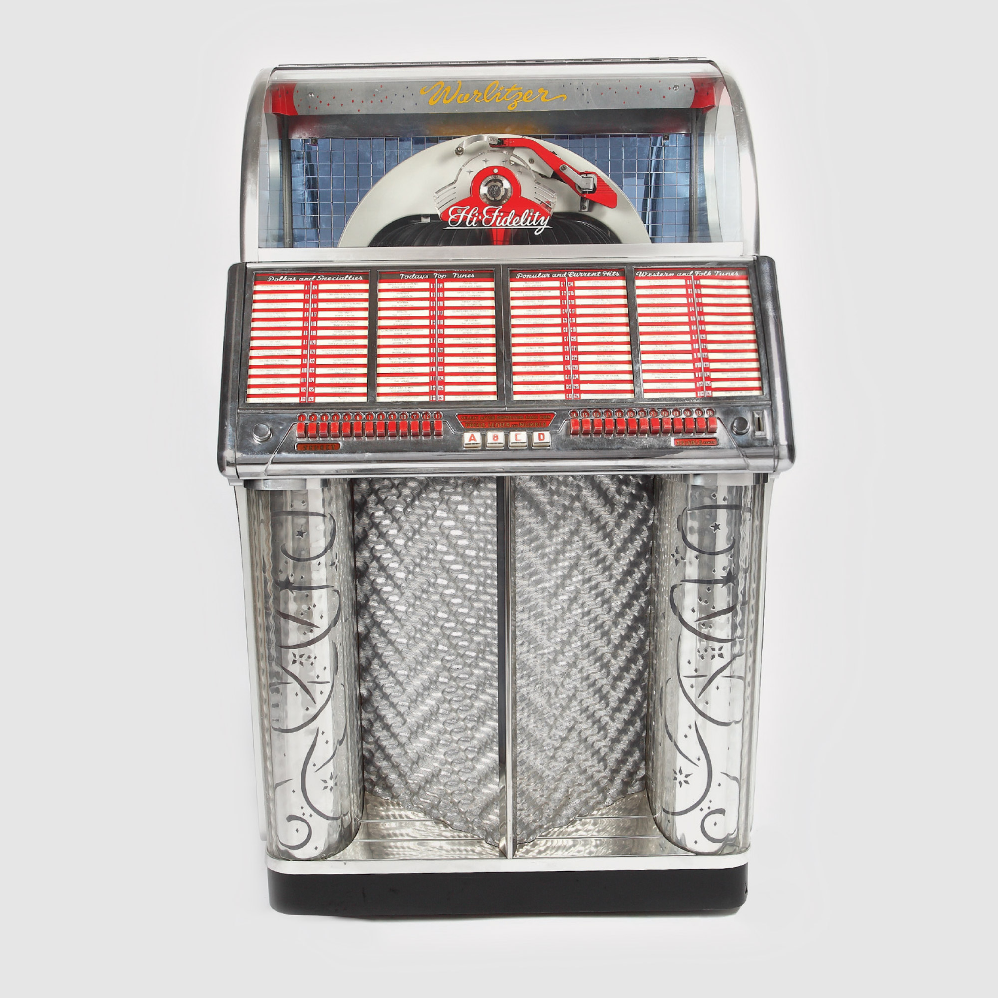 Compania Wurlitzer a reușit să-și construiască o îndelungată istorie care începe cu momentul deschiderii primei instituții de profil în 1853, în Statele Unite ale Americii, la Cincinnati. Germanul naturalizat american Franz Rudolph Wurlitzer aducea în noua patrie tradiția confecționării instrumentelor muzicale dar găsea, în același timp, noi mijloace tehnice de expresie. Compania s-a dezvoltat iar după cel de al Doilea Război Mondial începea producția de aparate automate de tip Jukebox care vor deveni repede populare. Seria destinată soldaților americani angajați în războiul din Coreea (1950-1953) care au primit astfel de instalații utilizate în spatele frontului în momentele de răgaz, a sporit prestigiul companiei care se extinde și în Europa. În paralel, compania a dezvoltat și ansambluri de orgă destinate mai ales instituțiilor religioase sau celor concertistice. Exemplarul de față utilizează discuri pe vinil în număr de 52 și are încorporat propriul sistem de amplificare a sunetului. Designul inovativ atrage atenția iar materialele noi utilizate, precum masele plastice, reduceau costurile de producție. Piesa reprezintă o atracție simpatică pentru colecționari.