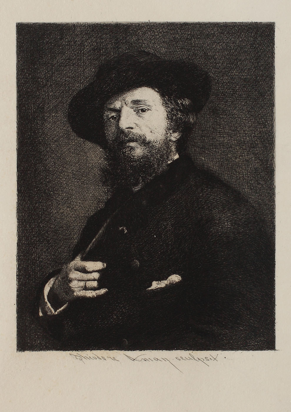 semnat, gravat, central jos, sub cadru, "Théodore Aman sculpsit"