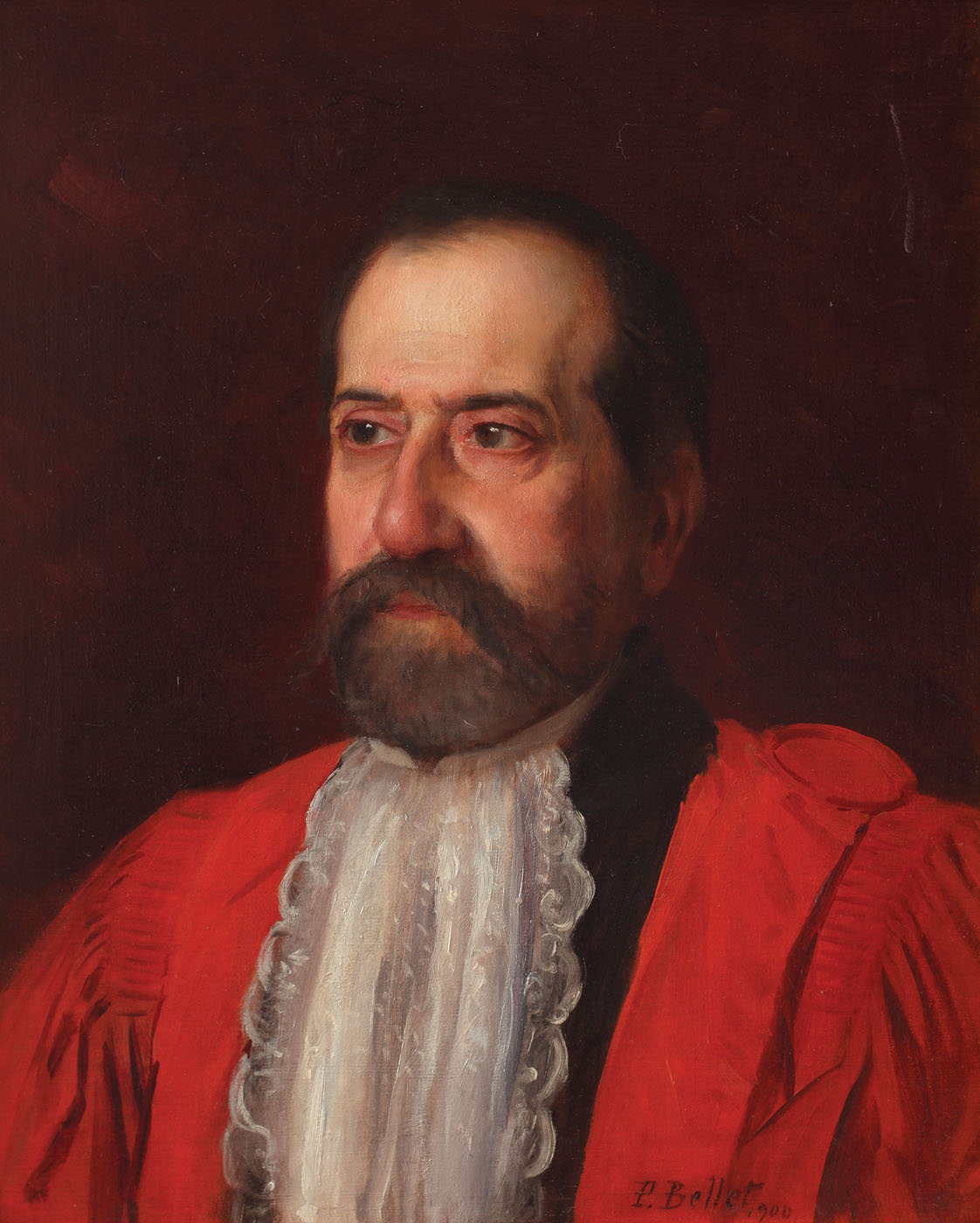 semnat și datat dreapta jos, cu negru, "P. Bellet, 1900"