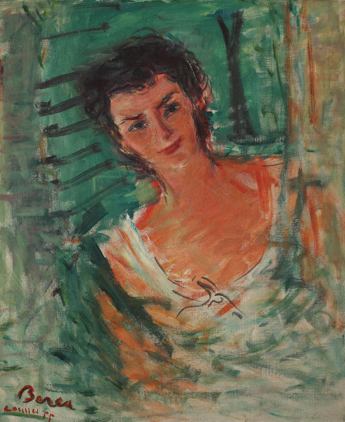 semnat, datat și localizat stânga jos, cu roșu, "Berea, Cannes, (19)55"