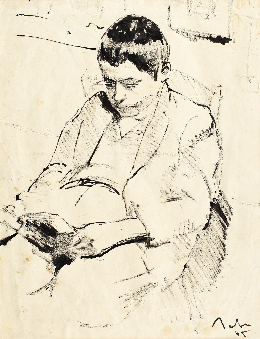 semnat și datat dreapta jos, cu negru, "Baba, (19)45"