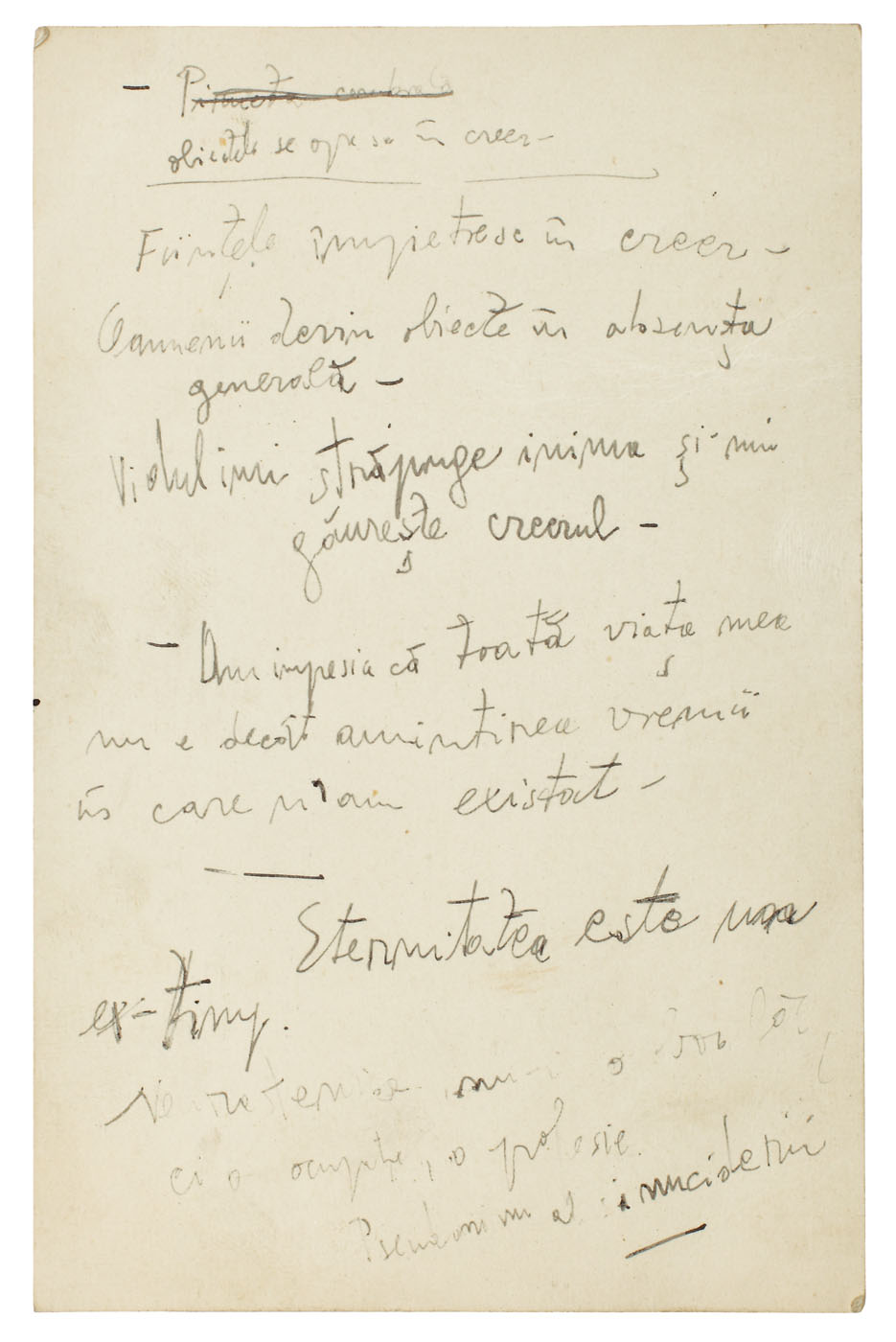 48. Manuscris Emil Cioran (pe carte poștală netrimisă), română, dezbătând problema existenţei (1 filă)