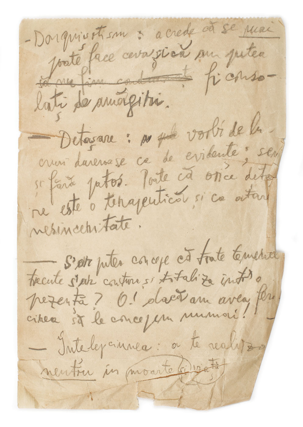 38. Manuscris Emil Cioran, română, despre donquijotism, detașare și înțelepciune (1 filă)