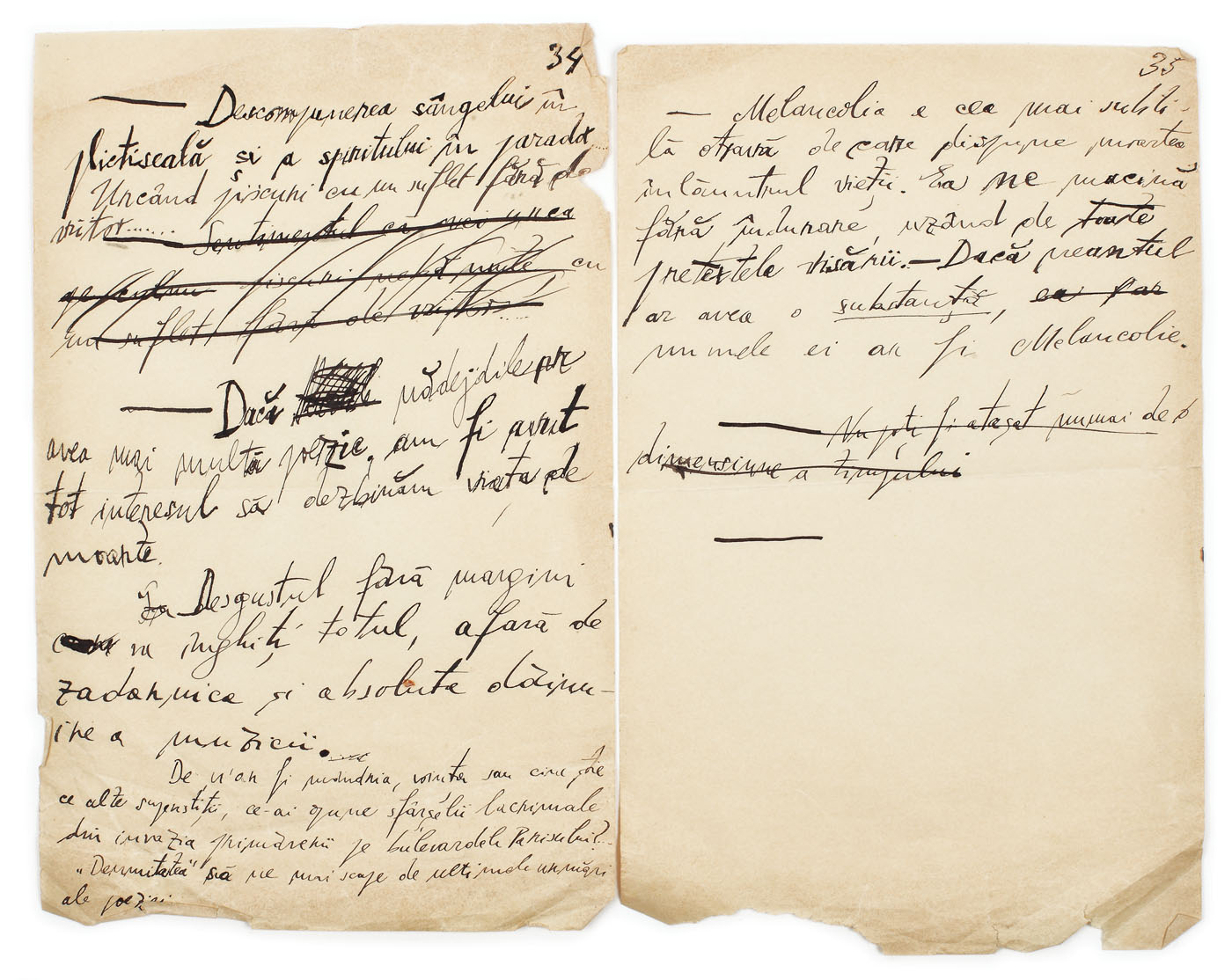 46. Manuscris Emil Cioran, română, despre melancolie (2 file)