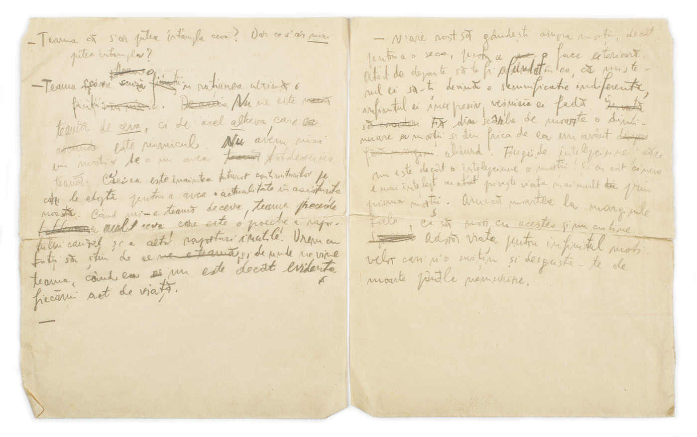 43. Manuscris Emil Cioran, română, despre teama de moarte (2 file)