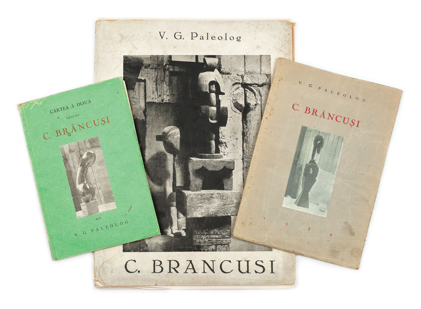 70. Monografia completă a lui Constantin Brâncuşi, de V. G. Paleolog, cartea întâi poartă dedicaţia şi semnatura olografă a autorului