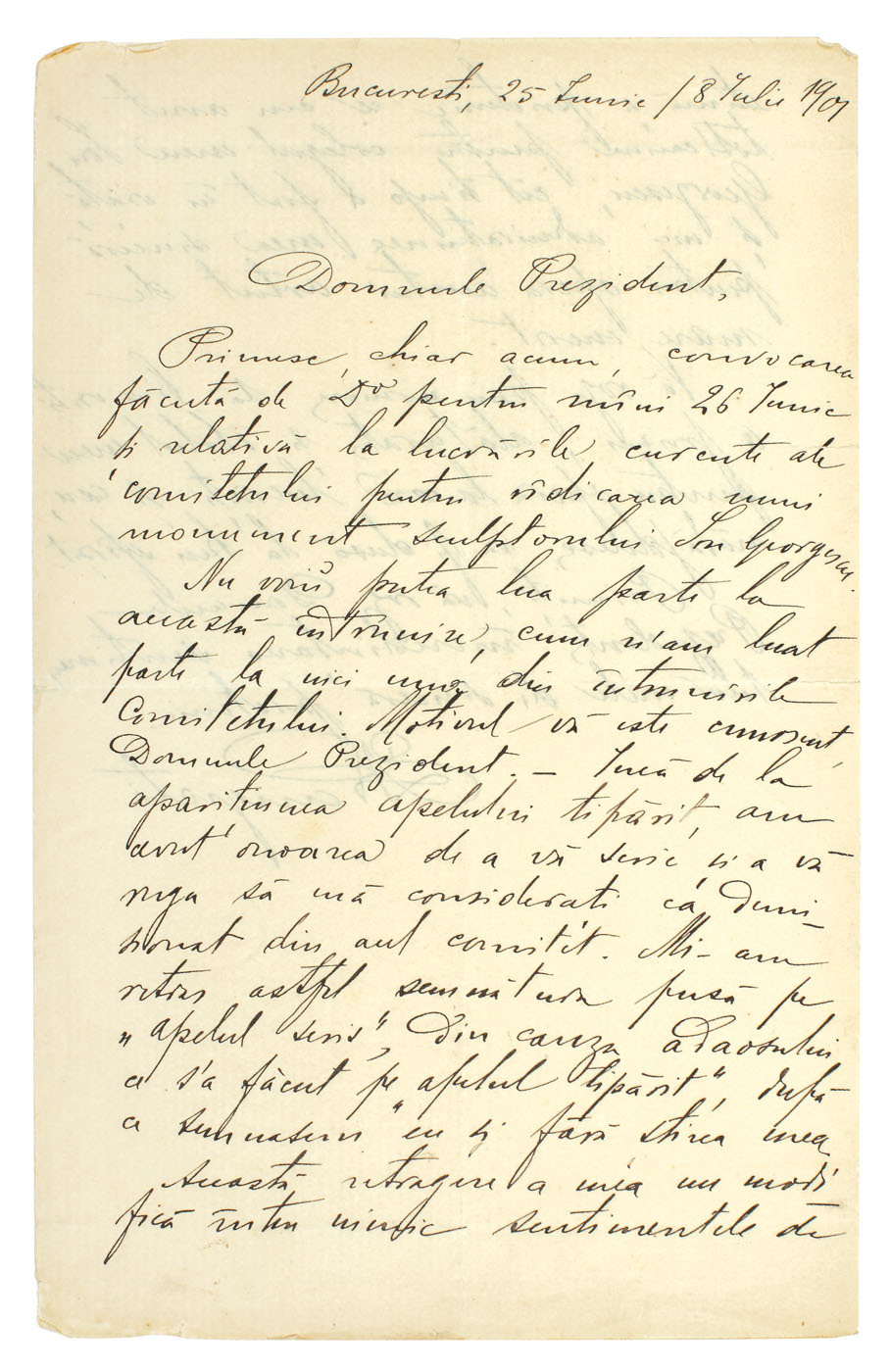 58. Scrisoare trimisă de inginerul Ermil Pangrati, viitorul prim director al Școlii Superioare de Arhitectură către Preşedintele Comisiei Monumentelor, 25 iunie 1901