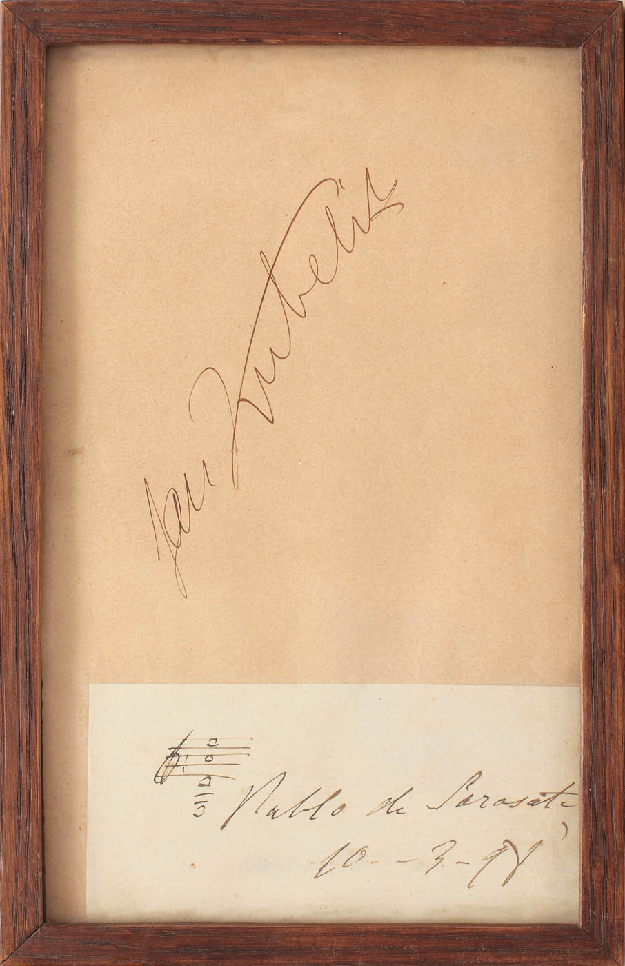 Cehul Jan Kubelik (1880-11940) şi spaniolul Pablo de Sarasate (1844-1908), ambii compozitori şi violonişti, îi dăruiau lui George Enescu aceste două autografe ca suvenir al întâlnirilor lor. Cele două piese au făcut parte din colecţia Enescu.