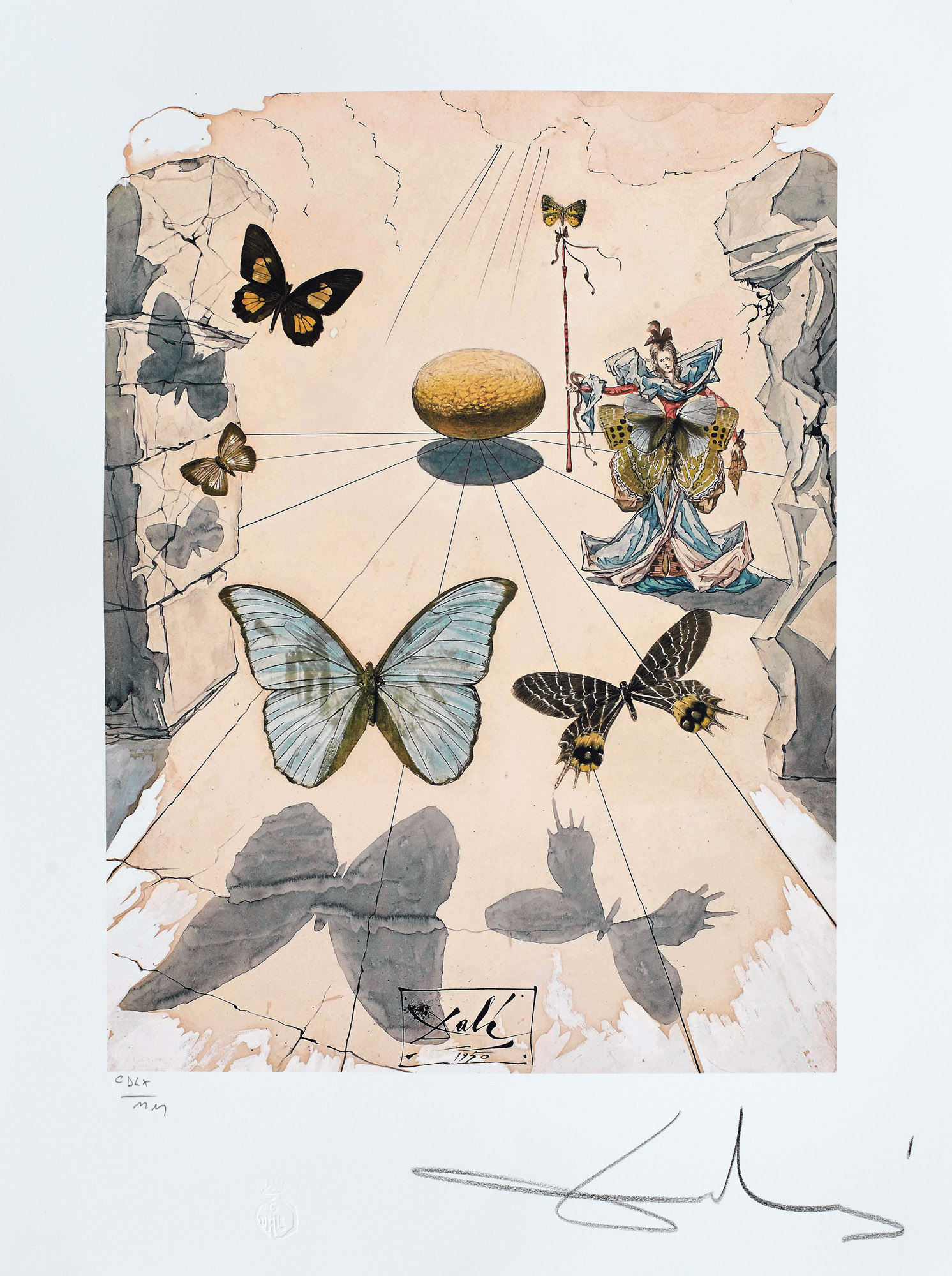 semnat dreapta jos, sub cadru, în creion, ”Dali”; numerotat stânga jos, sub cadru, în creion, ”CDLX/MM”; stânga jos, ștampila editurii, "G. Dali"; semnat și datat central jos, în placă, "Dali, 1950"