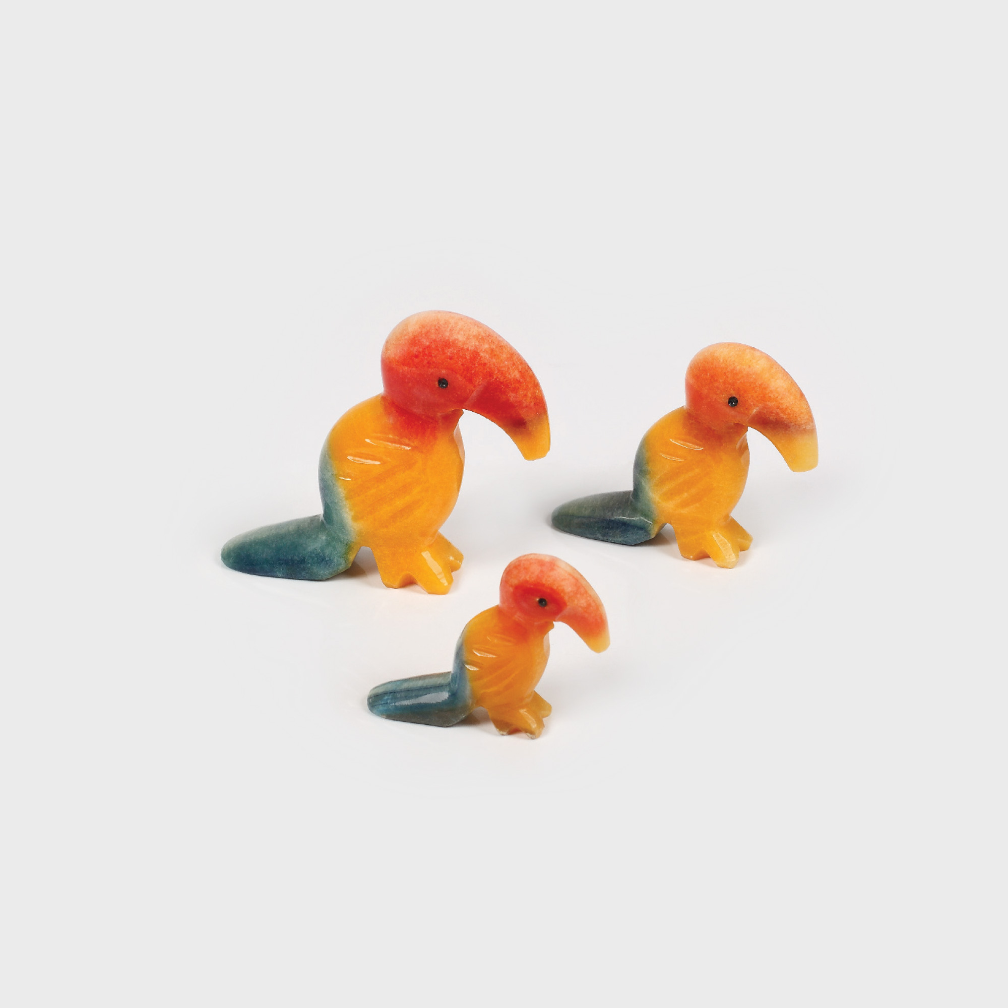 141. Lot format din 3 tucani decorativi, din colecția George Macovescu, primit de la ministrul de externe al Mexicului, Santiago García