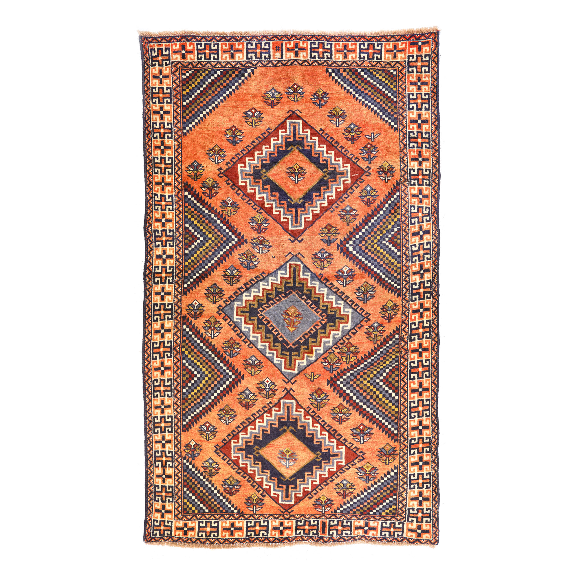 193. Covor Khorasan din lână, decorat cu motive florale stilizate și trei medalioane, Iran, sfârșitul sec. XX
