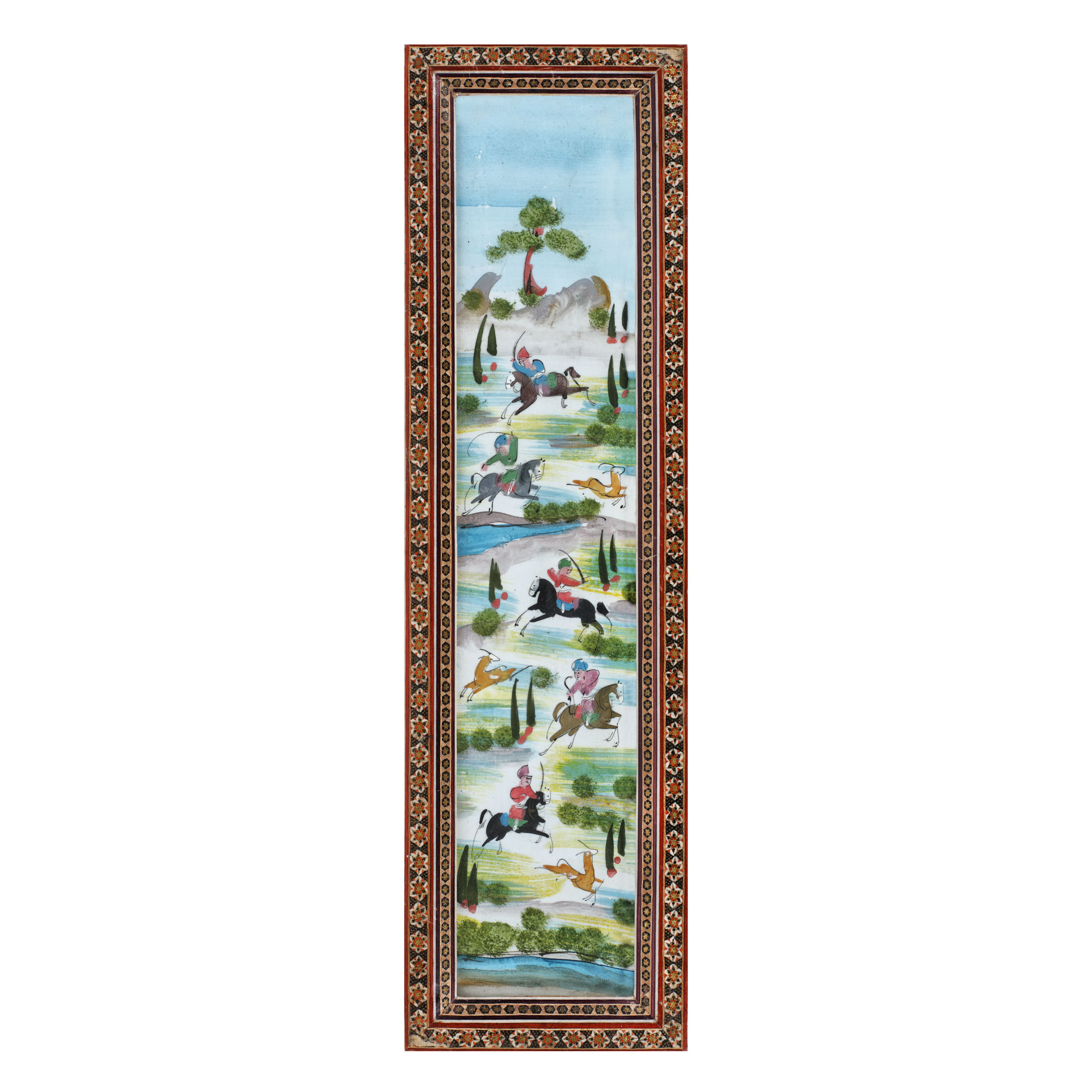 204. Miniatură din fildeș, reprezentând o scenă de vânătoare regală, Iran. începutul sec. XX