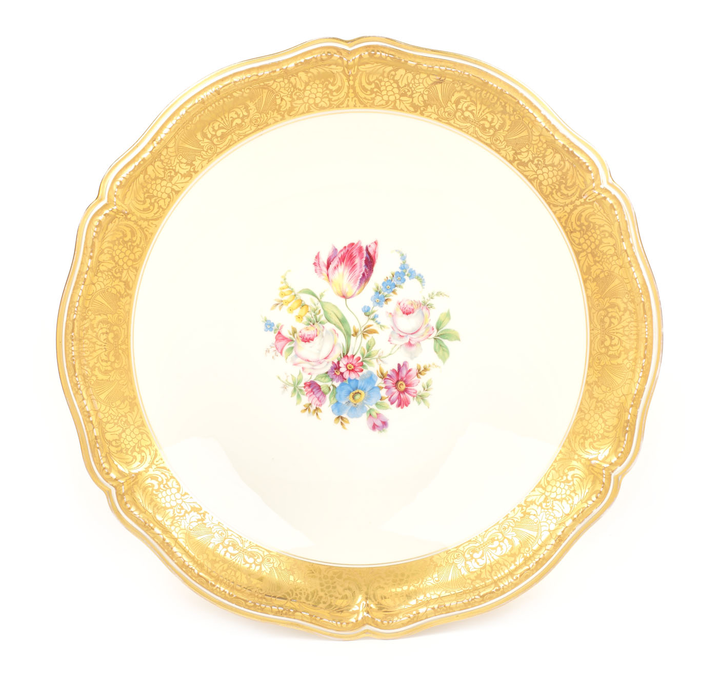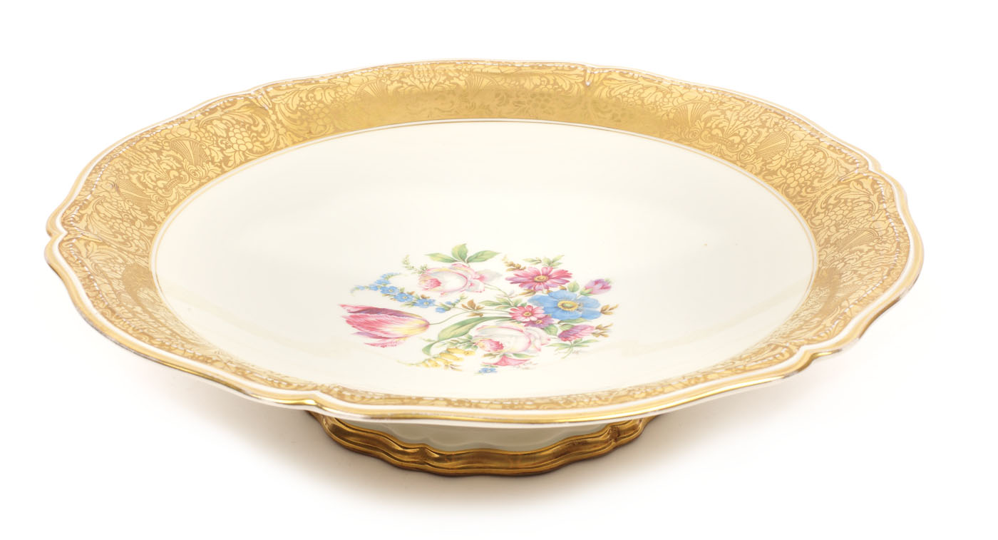 57. Centru de masă din porțelan Rosenthal, din seria Chippendale, cu decor floral, cca. 1900, provine din colecţia Dimitrie I. Ghica
