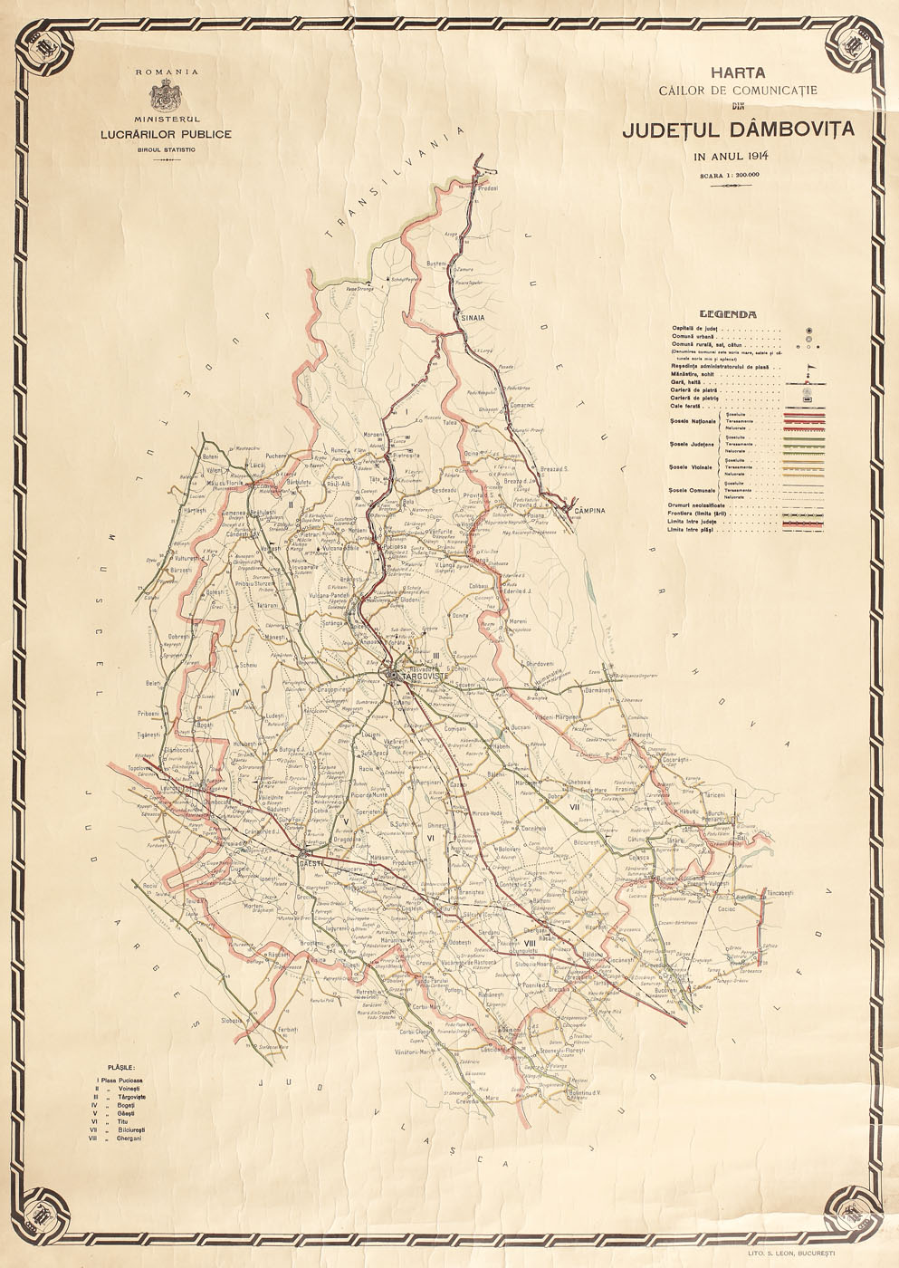 75. Harta căilor de comunicație din județul Dâmbovița în anul 1914, de S. Leon, București, provine din colecţia Dimitrie I. Ghica