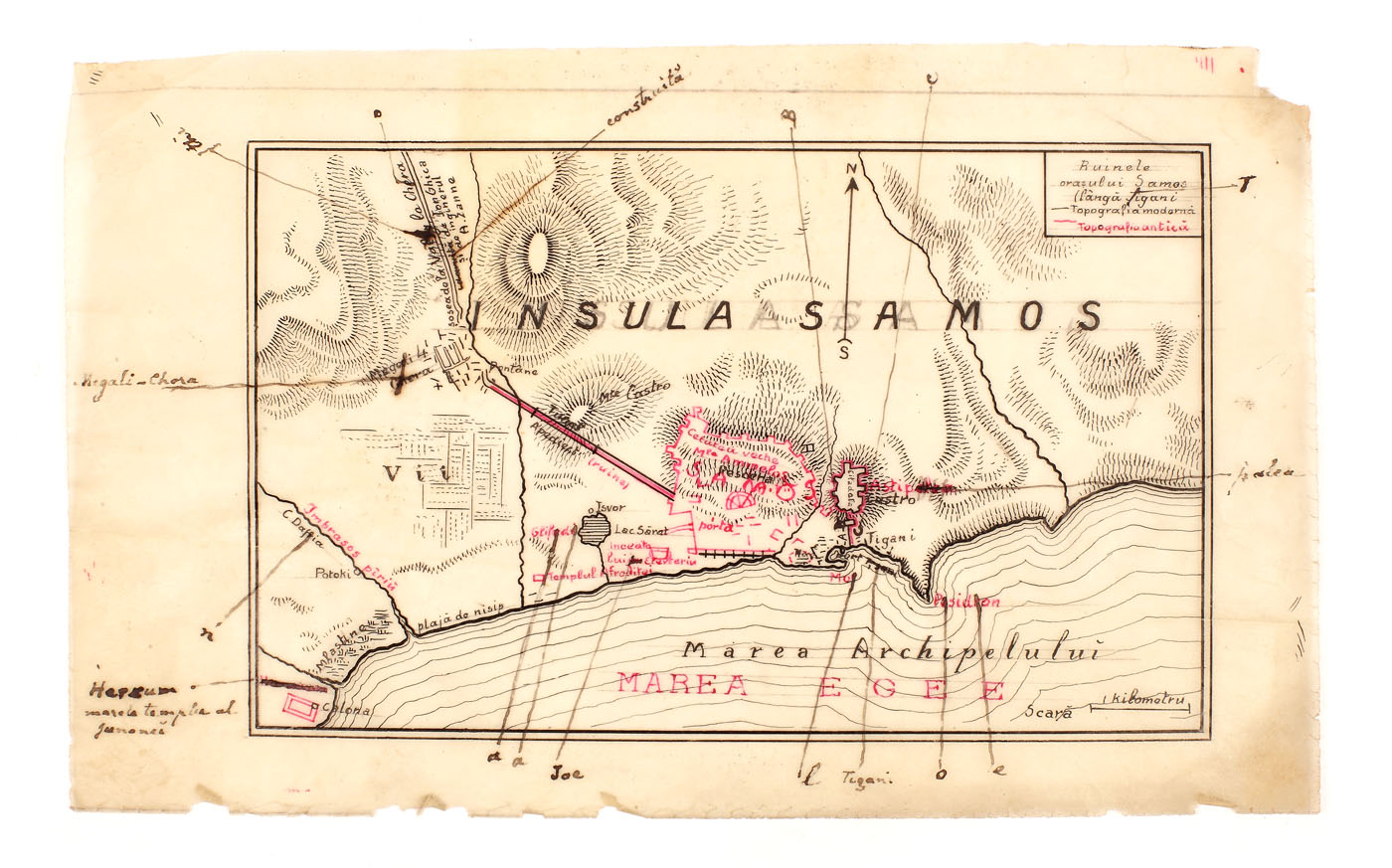 74. Harta insulei Samos, realizată de Dimitrie I. Ghica, în timpul traducerii "Istoriilor" lui Herodot, provine din colecţia Dimitrie I. Ghica