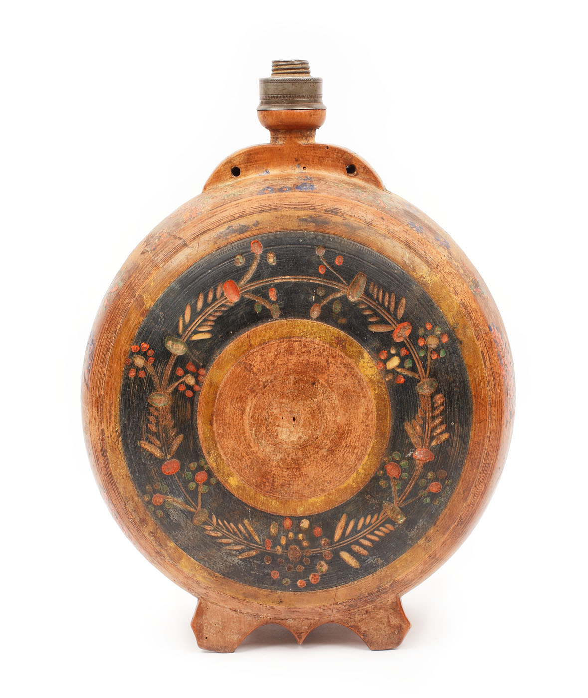 63. Ploscă de nuntă din lemn cu motive florale, Transilvania, sfârșit sec. XIX, provine din colecţia ing. Ion D. Ghica