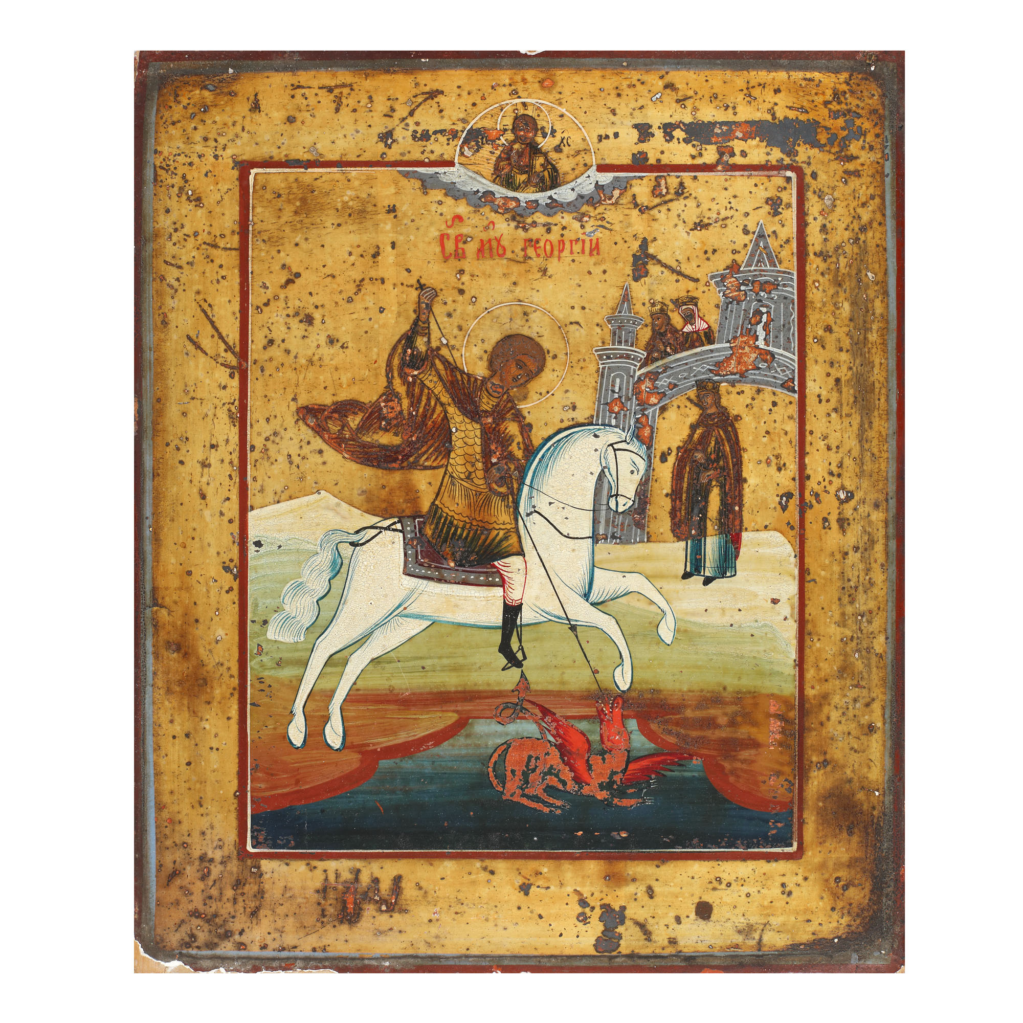 55. Icoană pe lemn, ”Sfântul Gheorghe”, școală rusească, a doua jumătate a sec. XIX